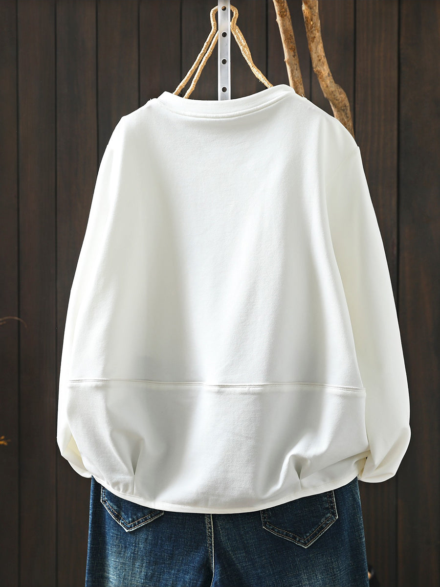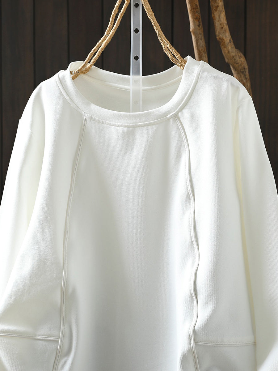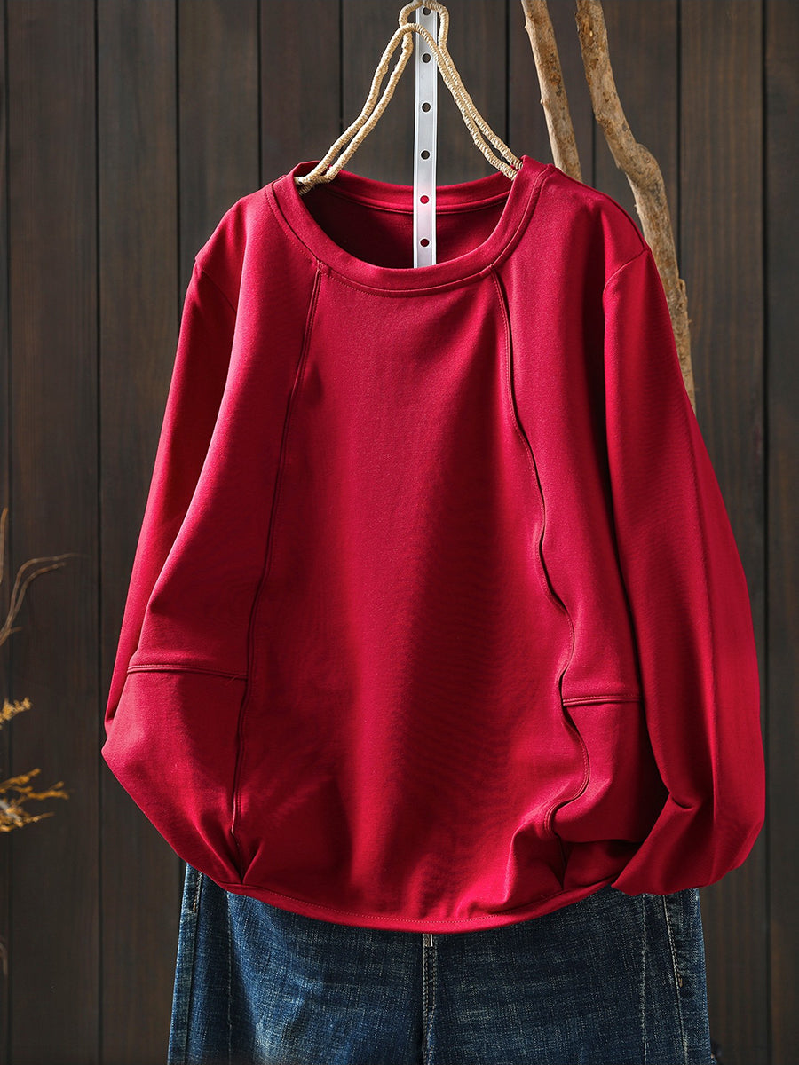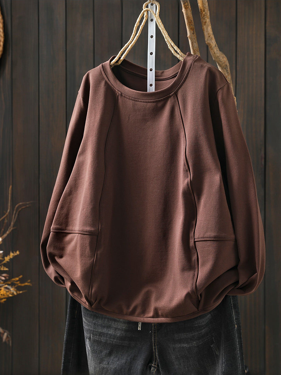 بلوزة نسائية كاجوال ربيعية بلون موحد بياقة دائرية
