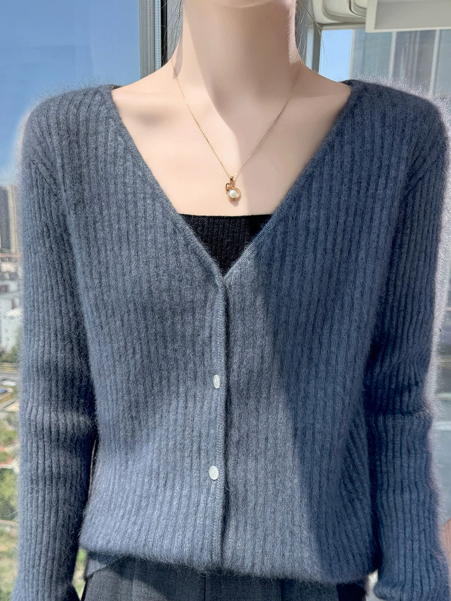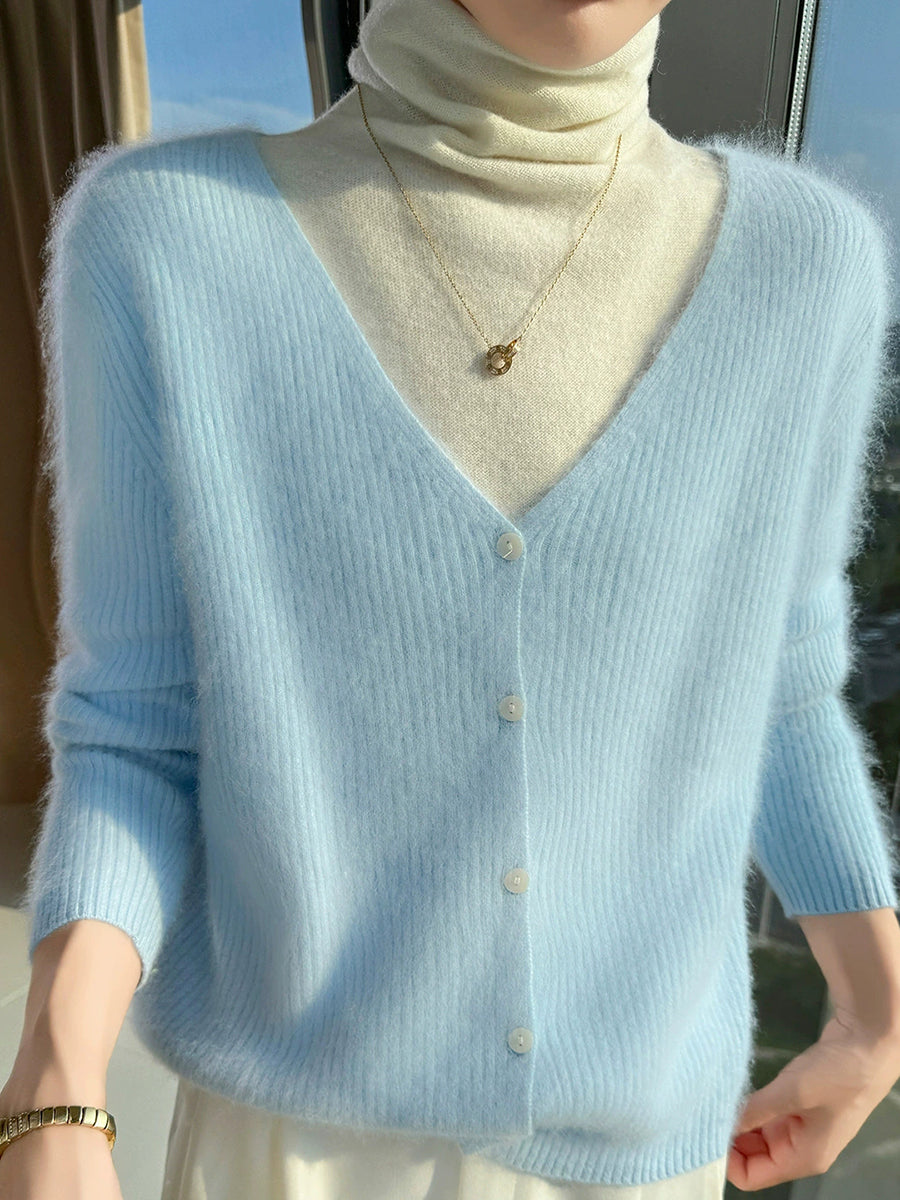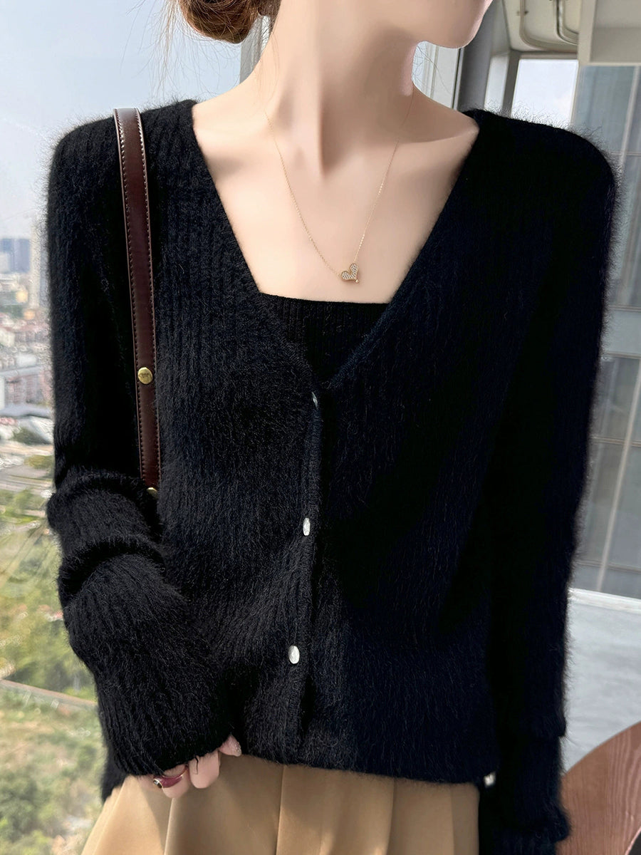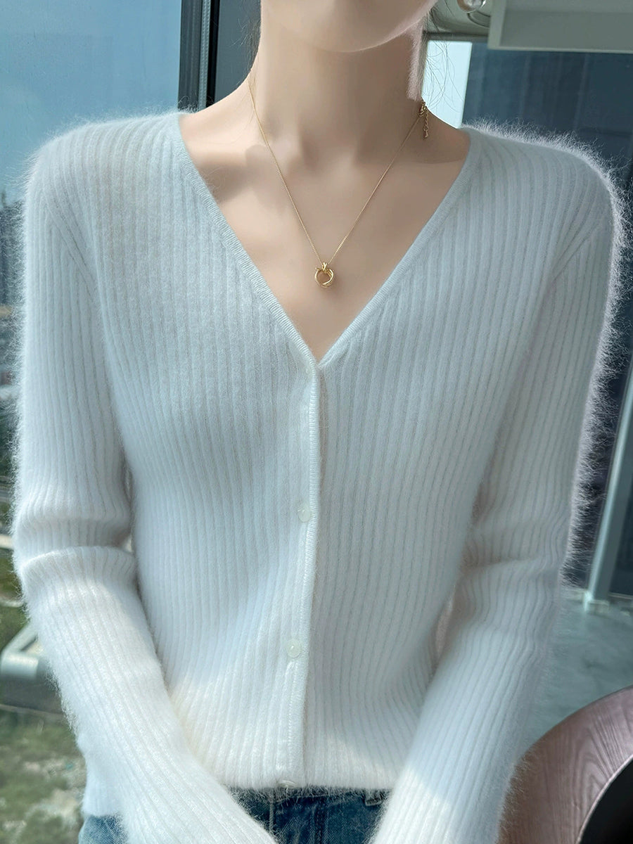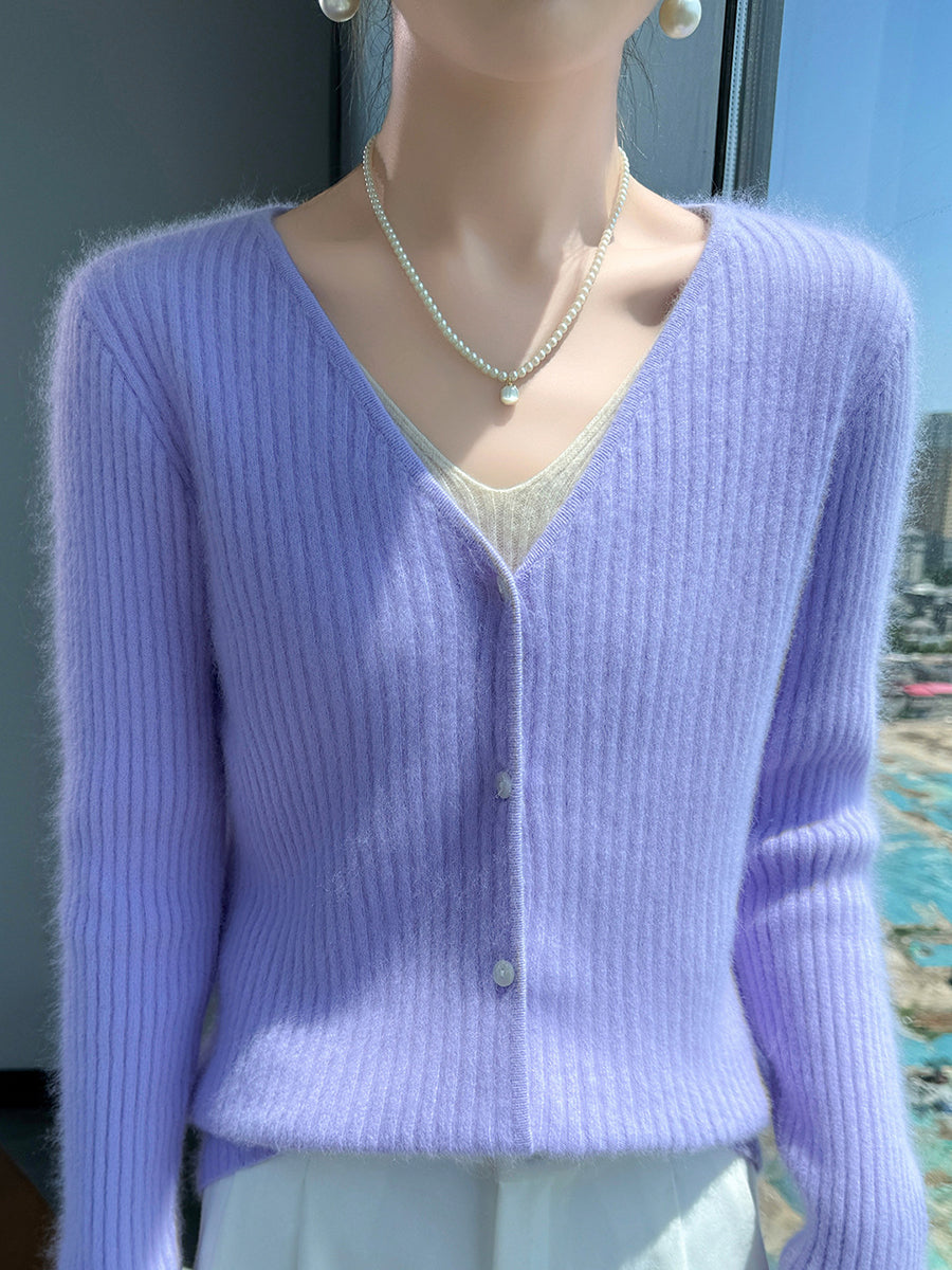 كنزة نسائية صيفية كاجوال بلون موحد بياقة على شكل حرف V