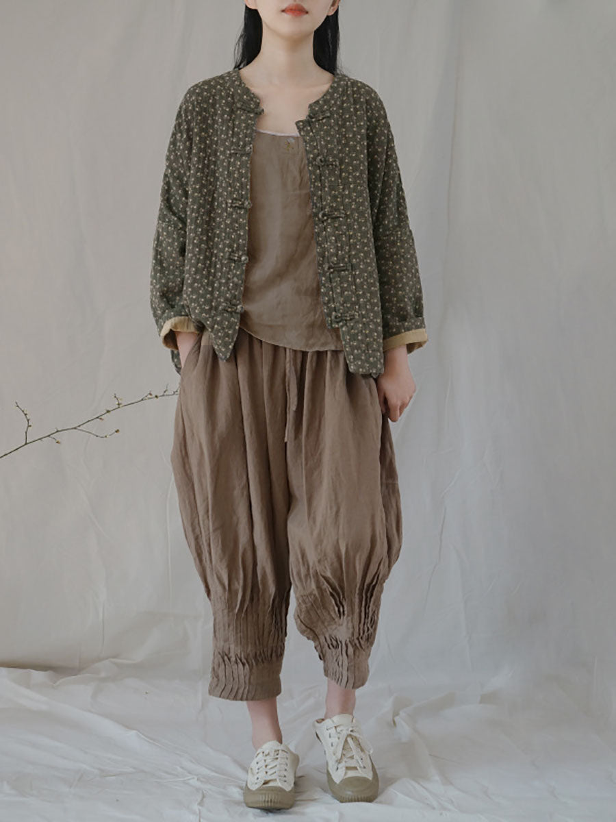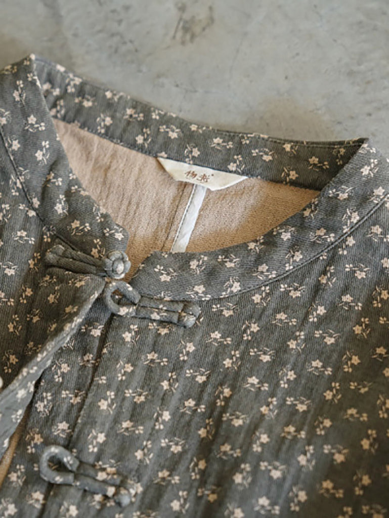 معطف نسائي من القطن بأزرار بتصميم أزهار الخريف العرقية