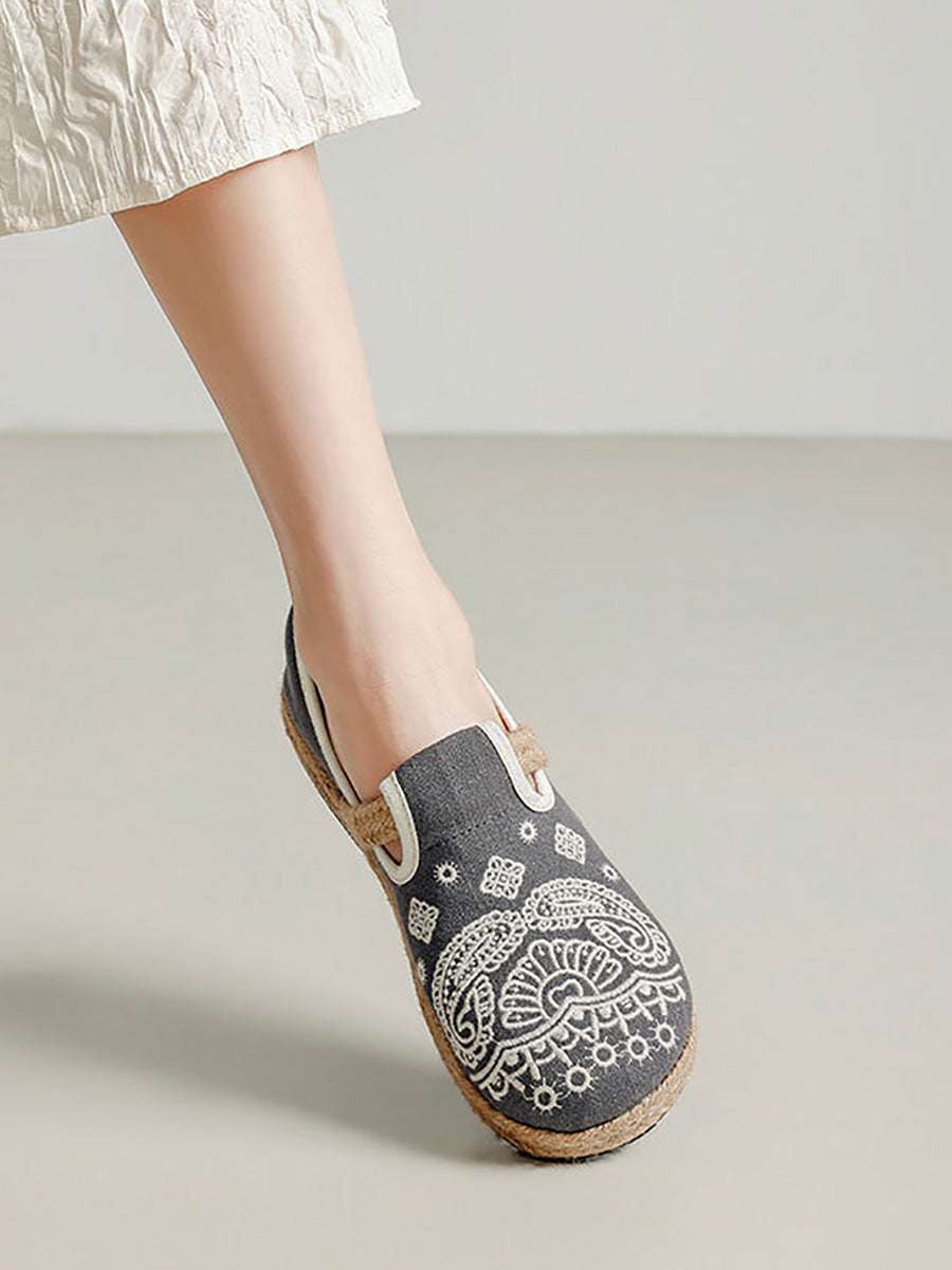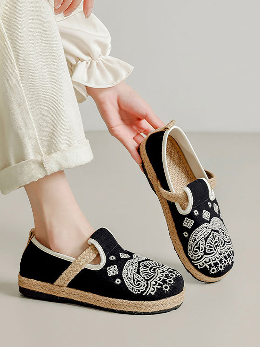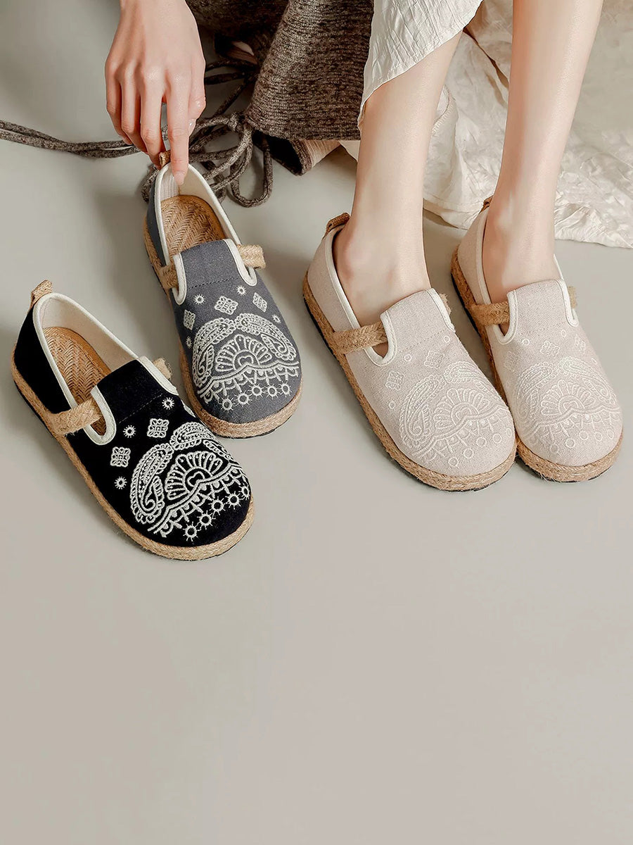 أحذية نسائية مسطحة من الكتان المطرز بنقوش عرقية