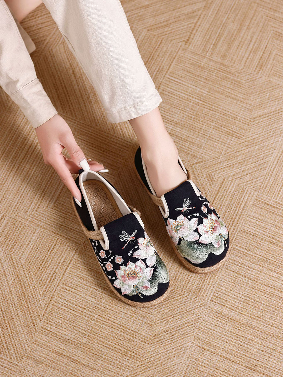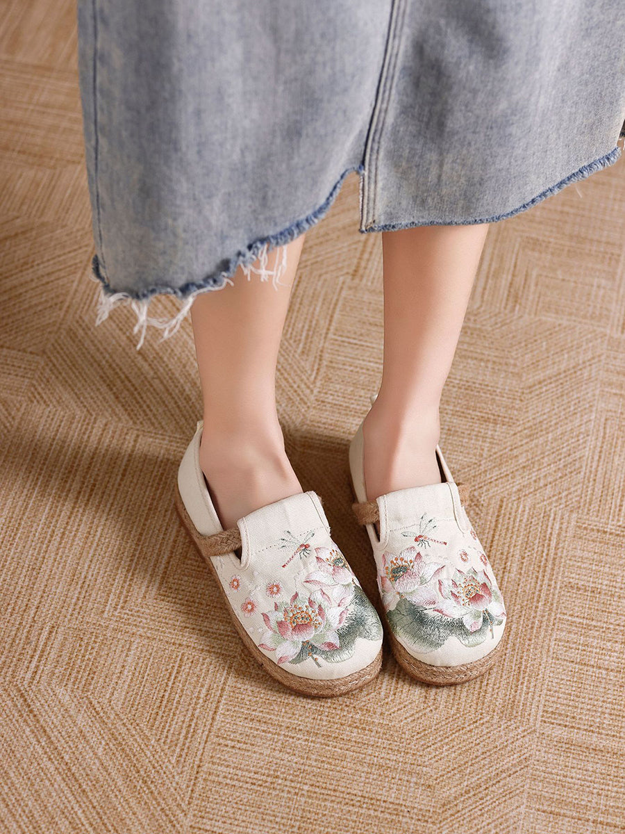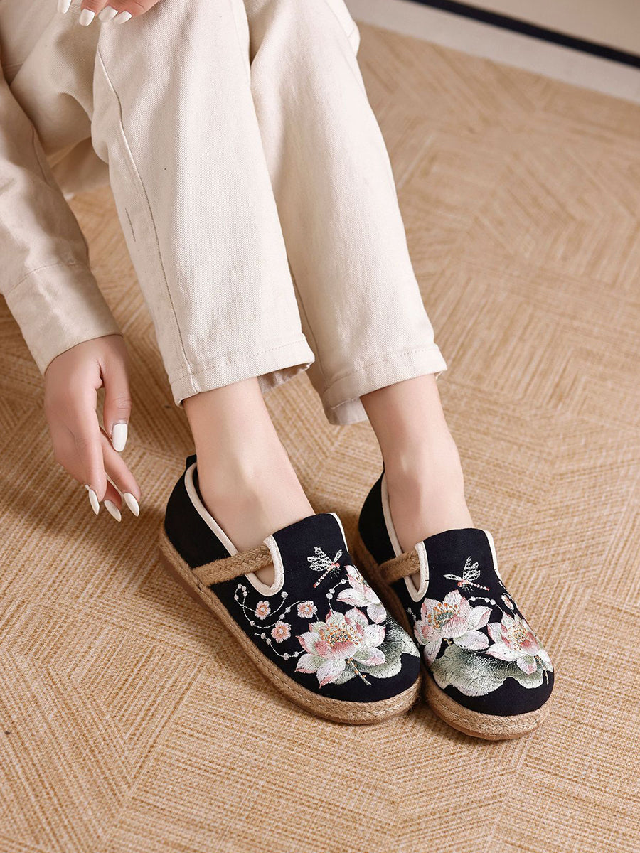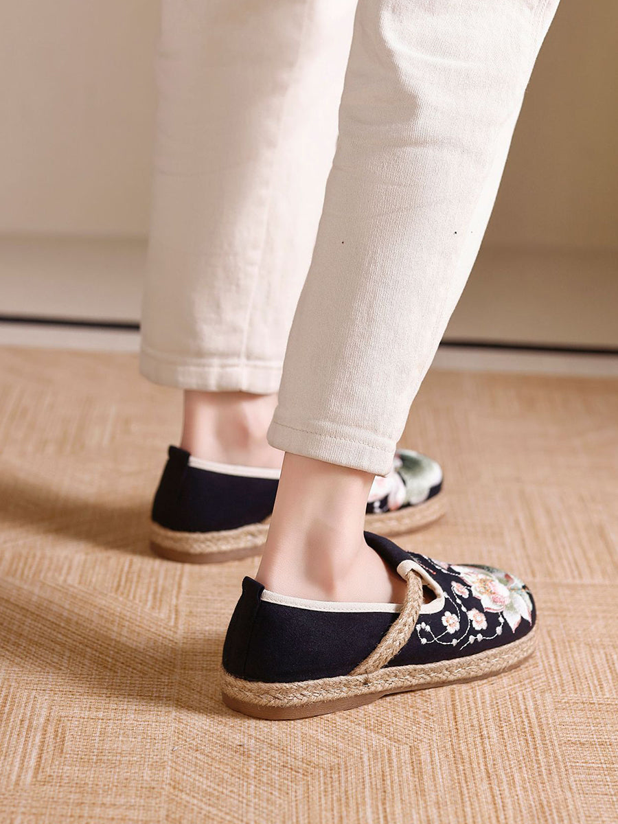 أحذية قماشية مطرزة بنقوش زهور عرقية للنساء