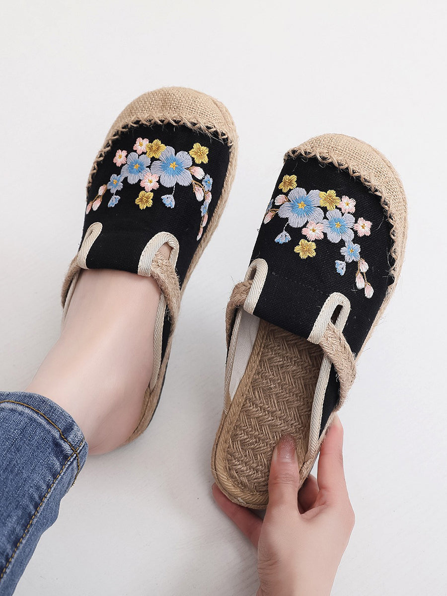 شباشب قماشية مطرزة بنقوش زهور عرقية للنساء