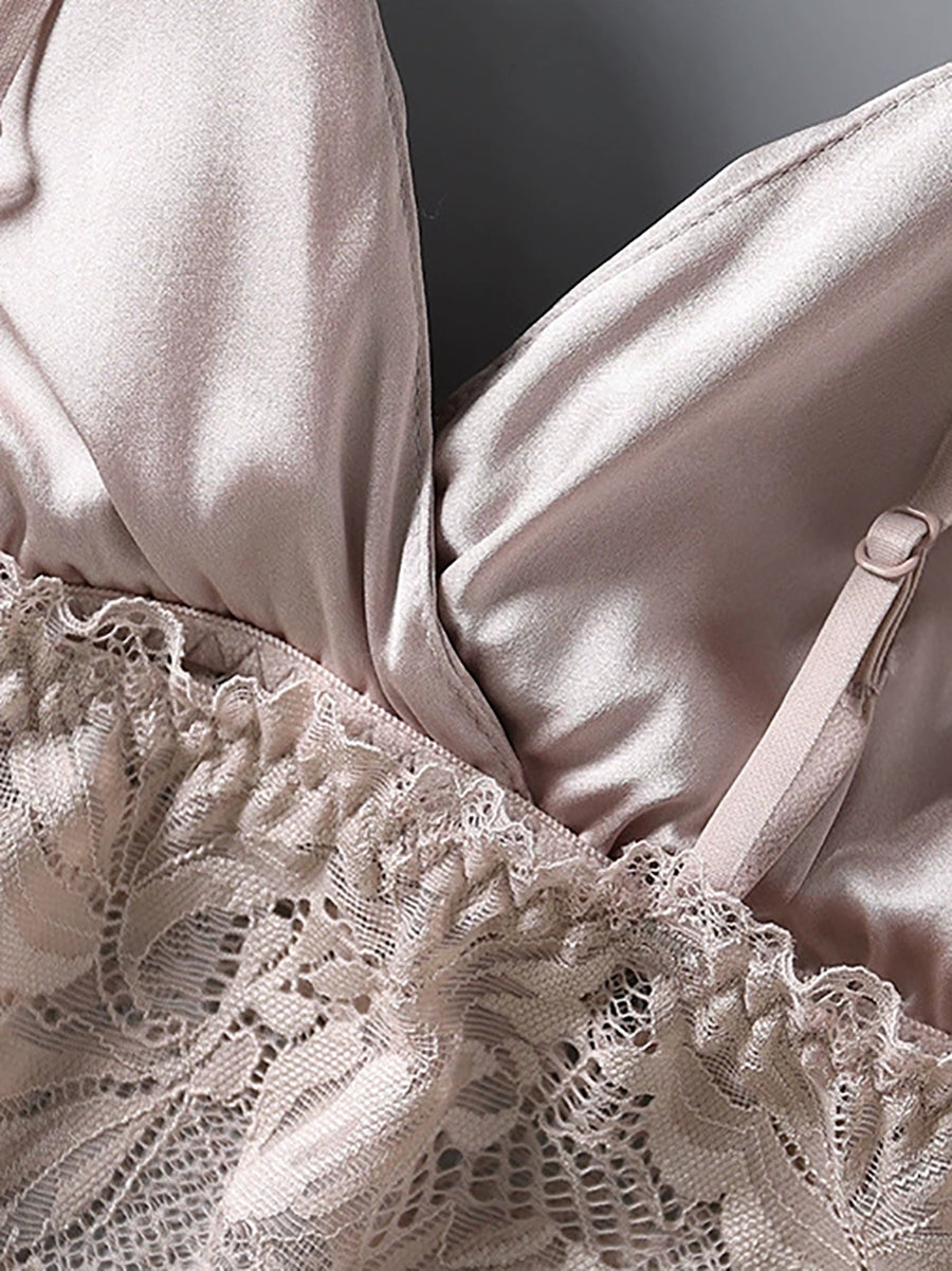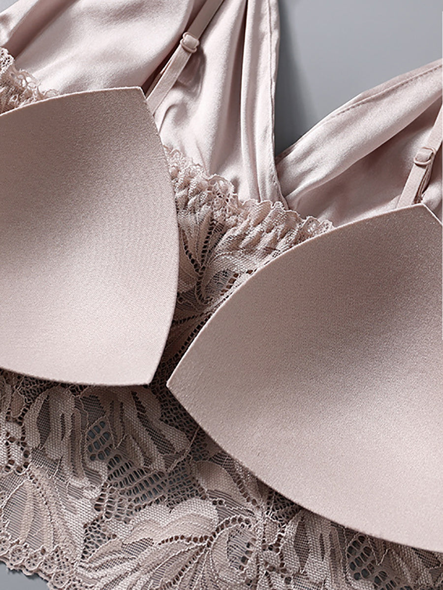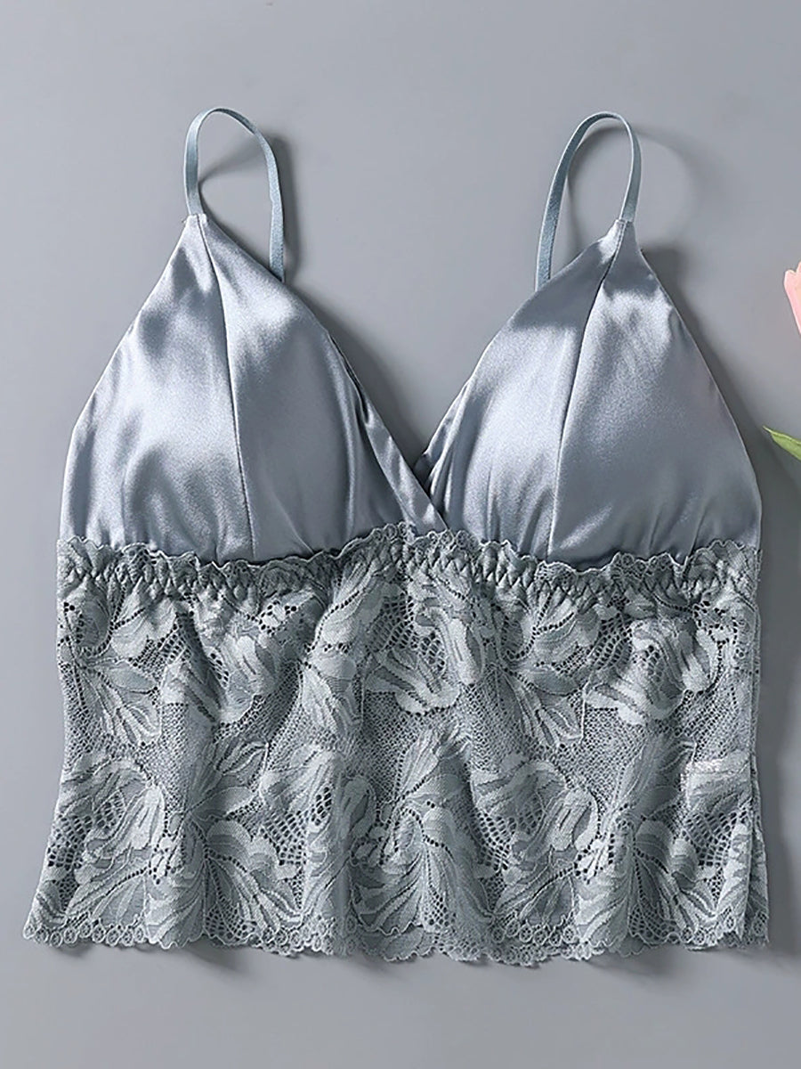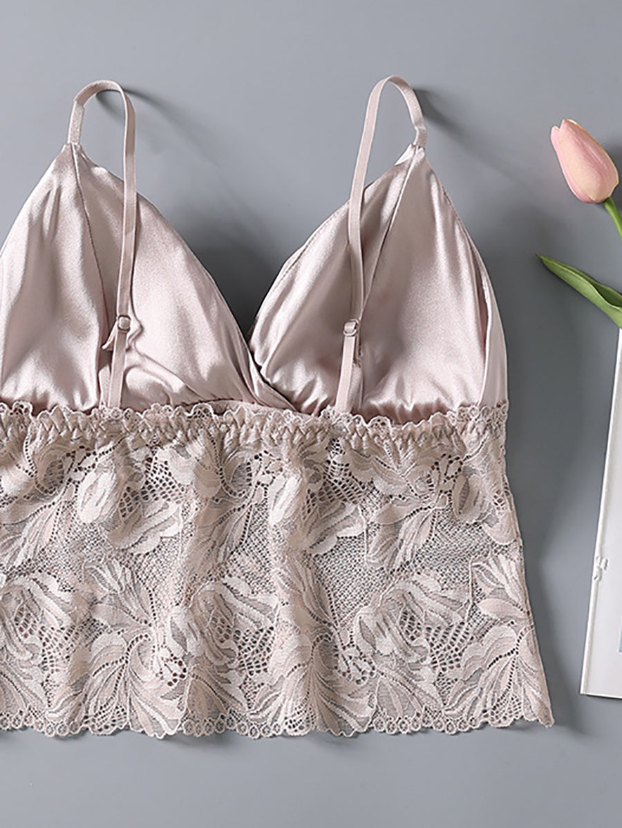 حمالة صدر نسائية بدون أسلاك من الدانتيل الحريري المزهر للنساء