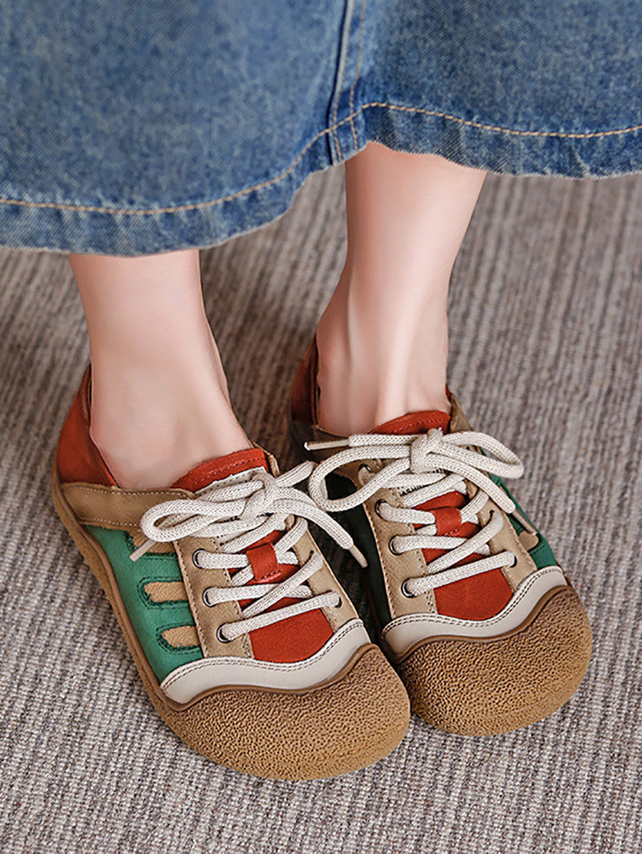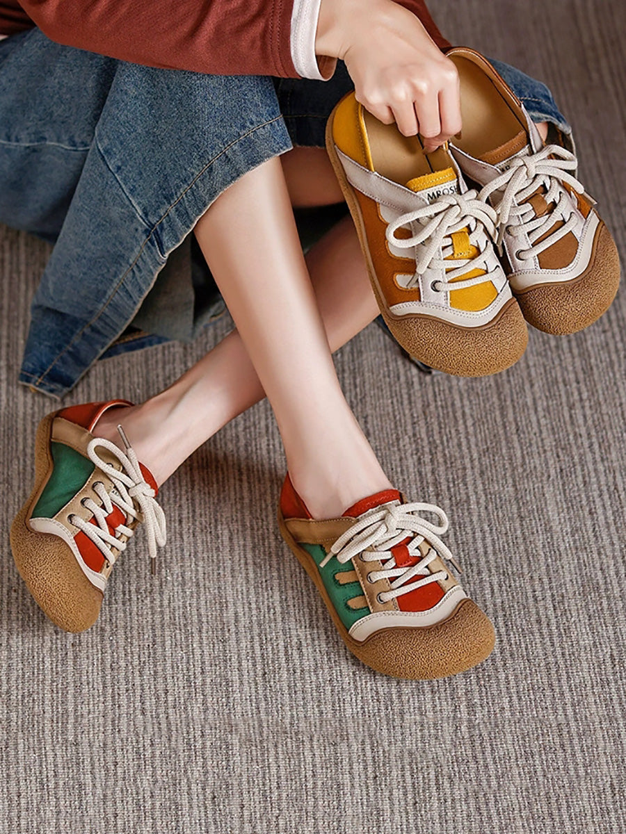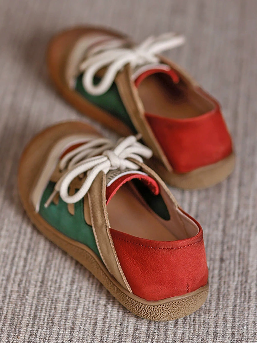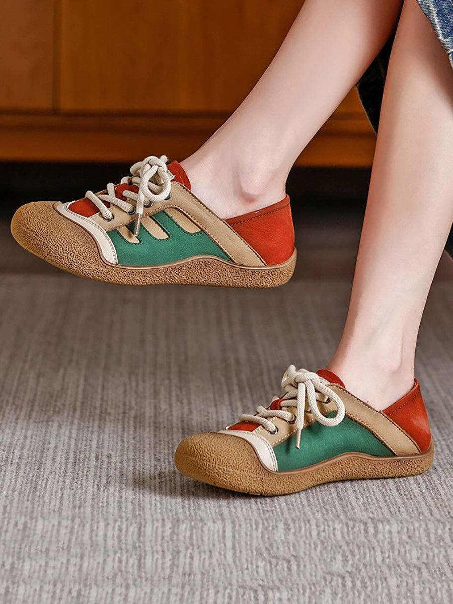 حذاء نسائي مسطح من الجلد الطبيعي بألوان متداخلة