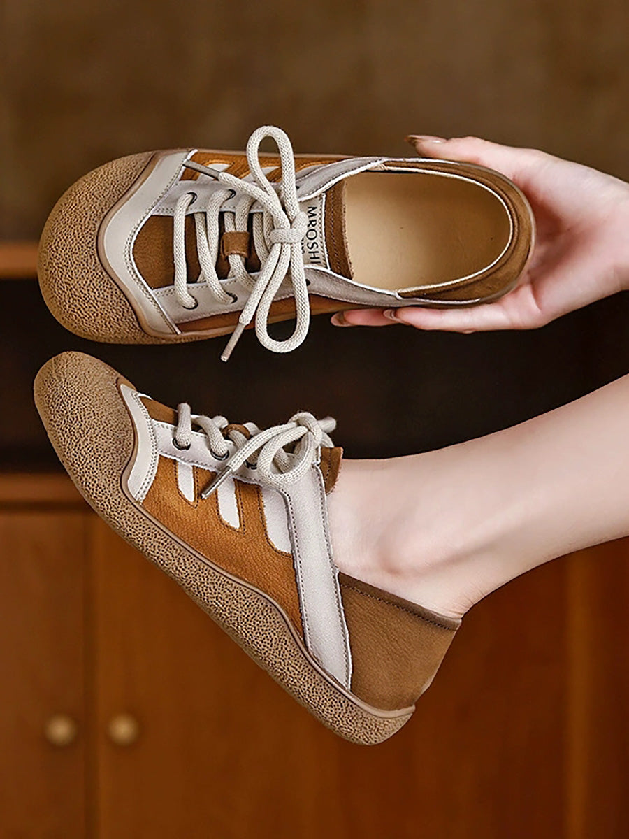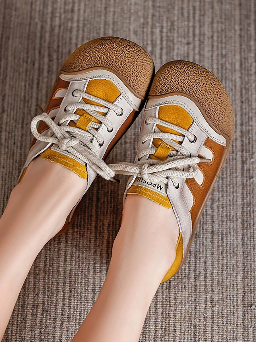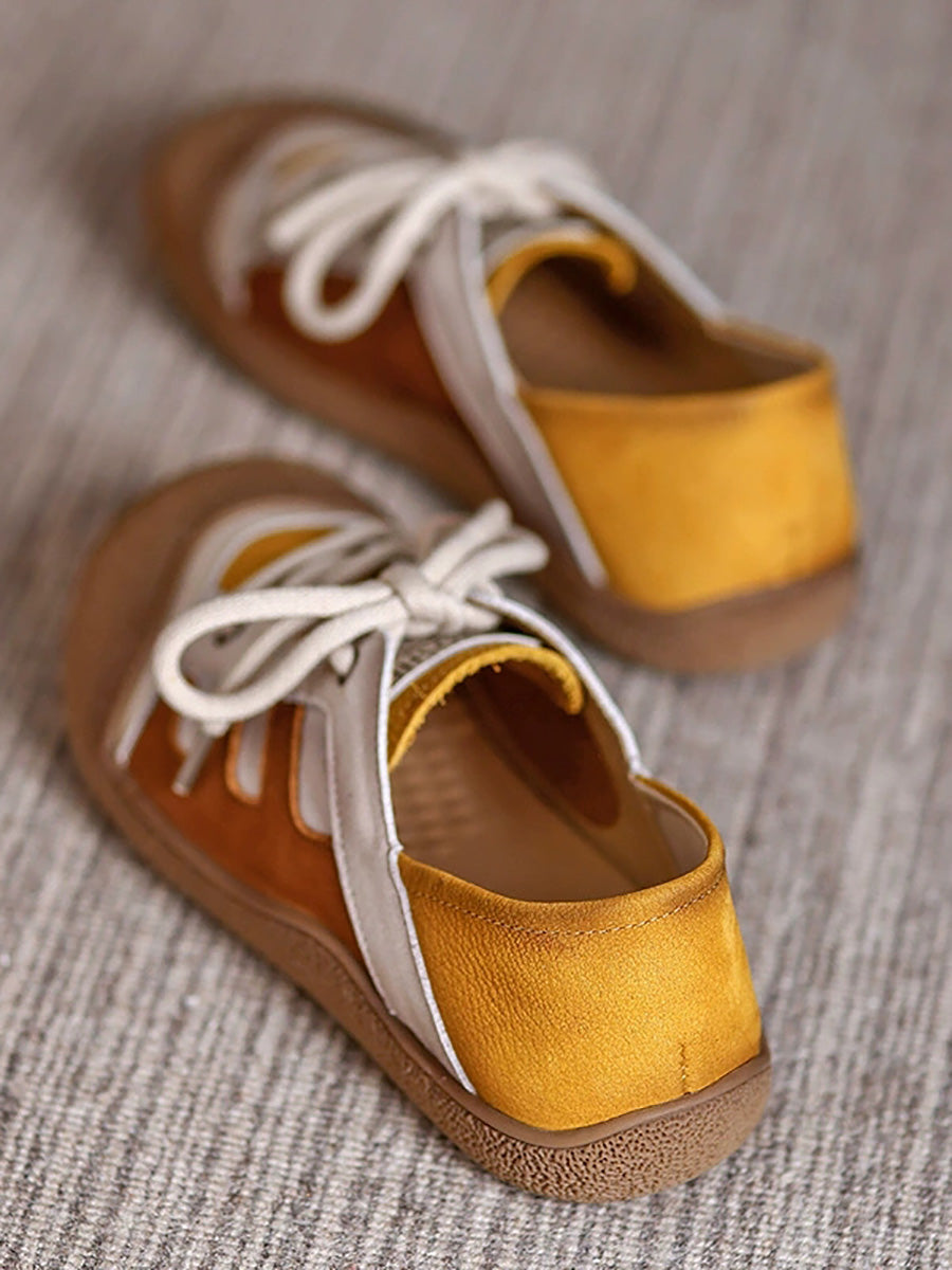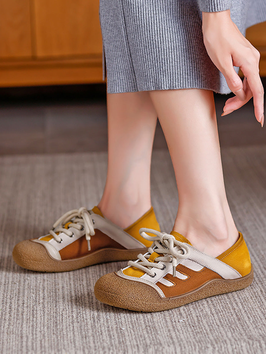 حذاء نسائي مسطح من الجلد الطبيعي بألوان متداخلة