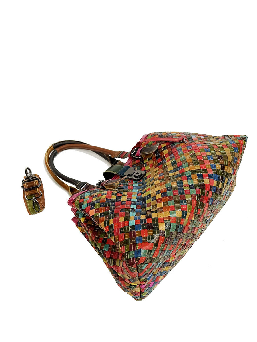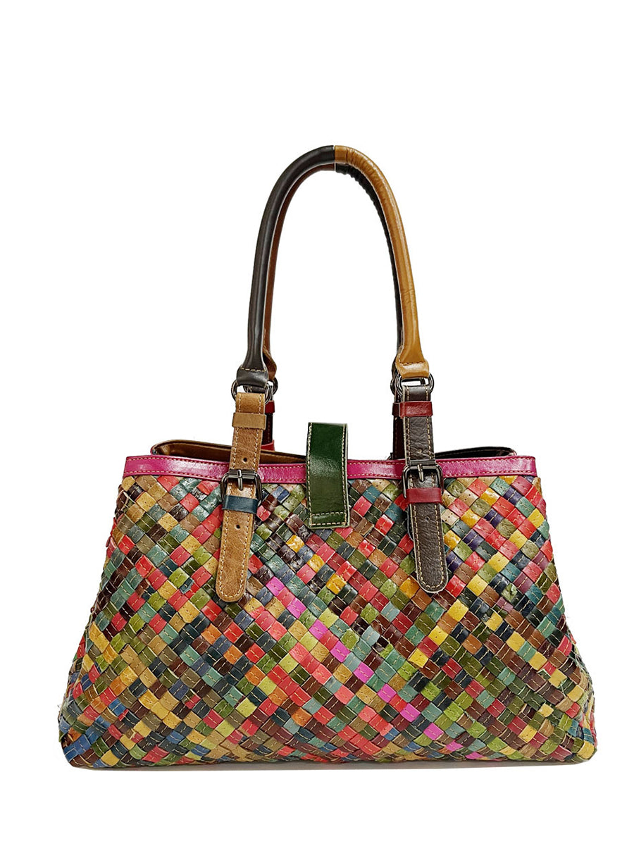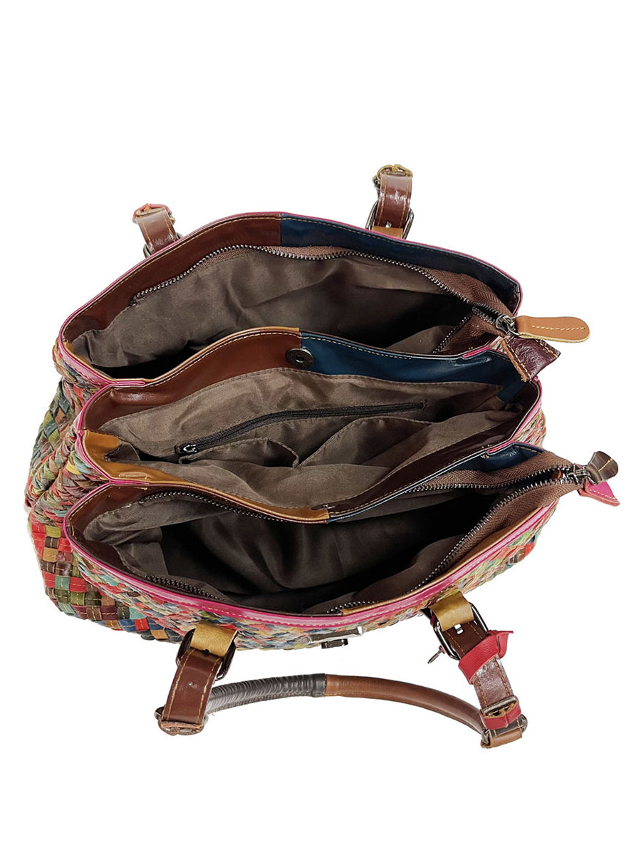 هذه الحقيبة مصنوعة من جلد أصلي عالي الجودة وطبقة أولى من جلد البقر. اللون طبيعي وتصميم الحقيبة المنسوجة فريد من نوعه. يمكن استخدامها كحقيبة يد أو حقيبة كتف أو حقيبة رسول. تحتوي على جيوب متعددة بالداخل، والتي يمكن أن تحمل هاتفًا محمولًا أو محفظة أو حقيبة هوية أو مناديل أو مظلة وما إلى ذلك. إغلاق السحاب آمن وموثوق به.
