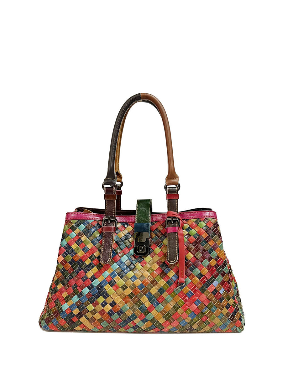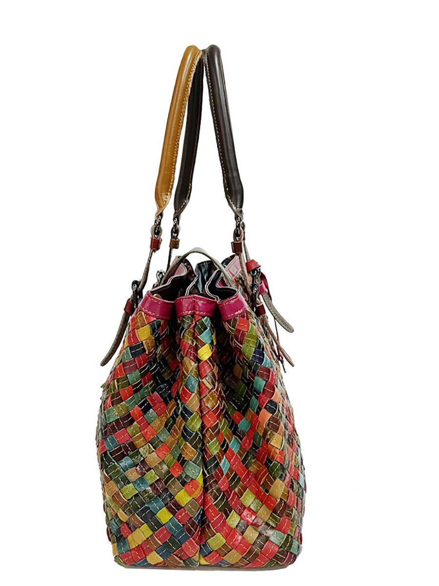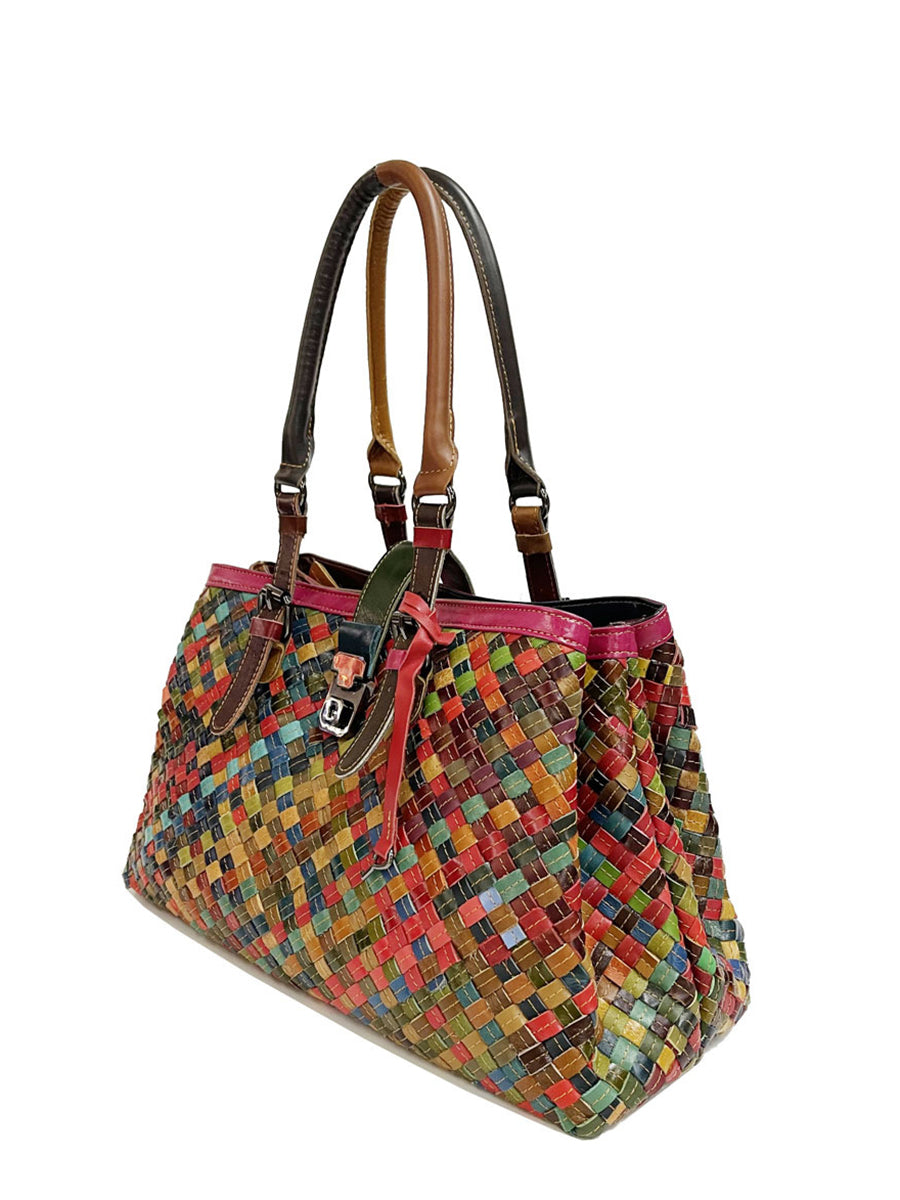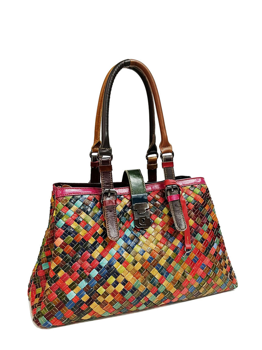 هذه الحقيبة مصنوعة من جلد أصلي عالي الجودة وطبقة أولى من جلد البقر. اللون طبيعي وتصميم الحقيبة المنسوجة فريد من نوعه. يمكن استخدامها كحقيبة يد أو حقيبة كتف أو حقيبة رسول. تحتوي على جيوب متعددة بالداخل، والتي يمكن أن تحمل هاتفًا محمولًا أو محفظة أو حقيبة هوية أو مناديل أو مظلة وما إلى ذلك. إغلاق السحاب آمن وموثوق به.