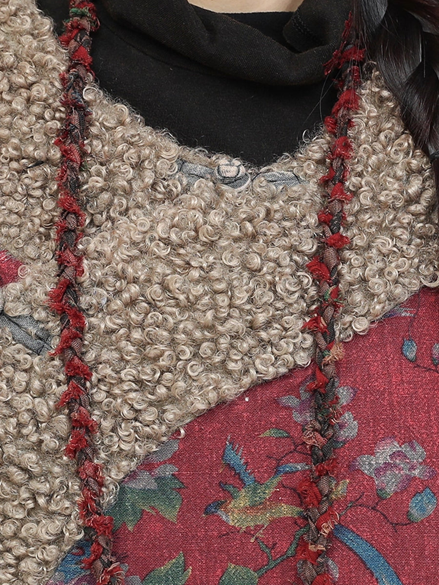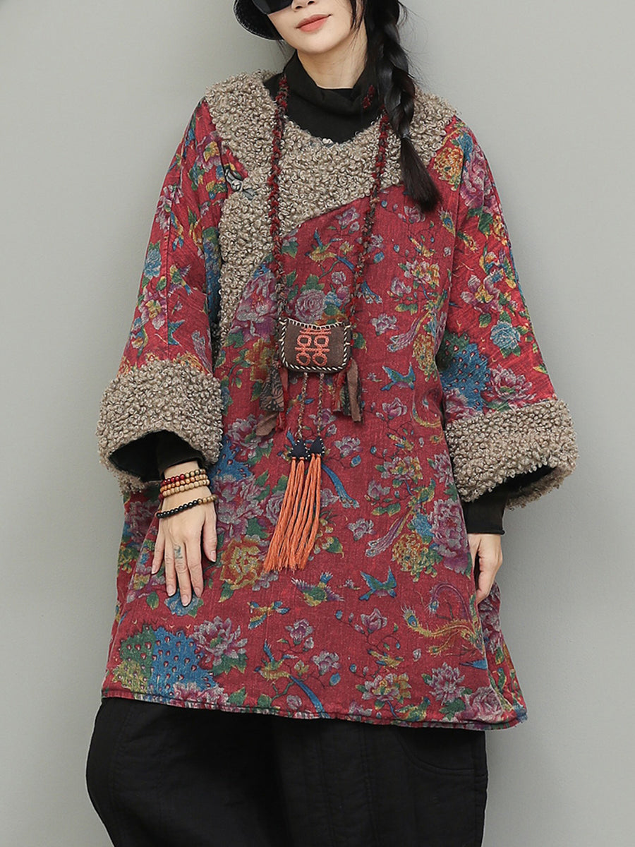 معطف نسائي بياقة دائرية من الصوف والقطن بتصميم زهور كلاسيكي