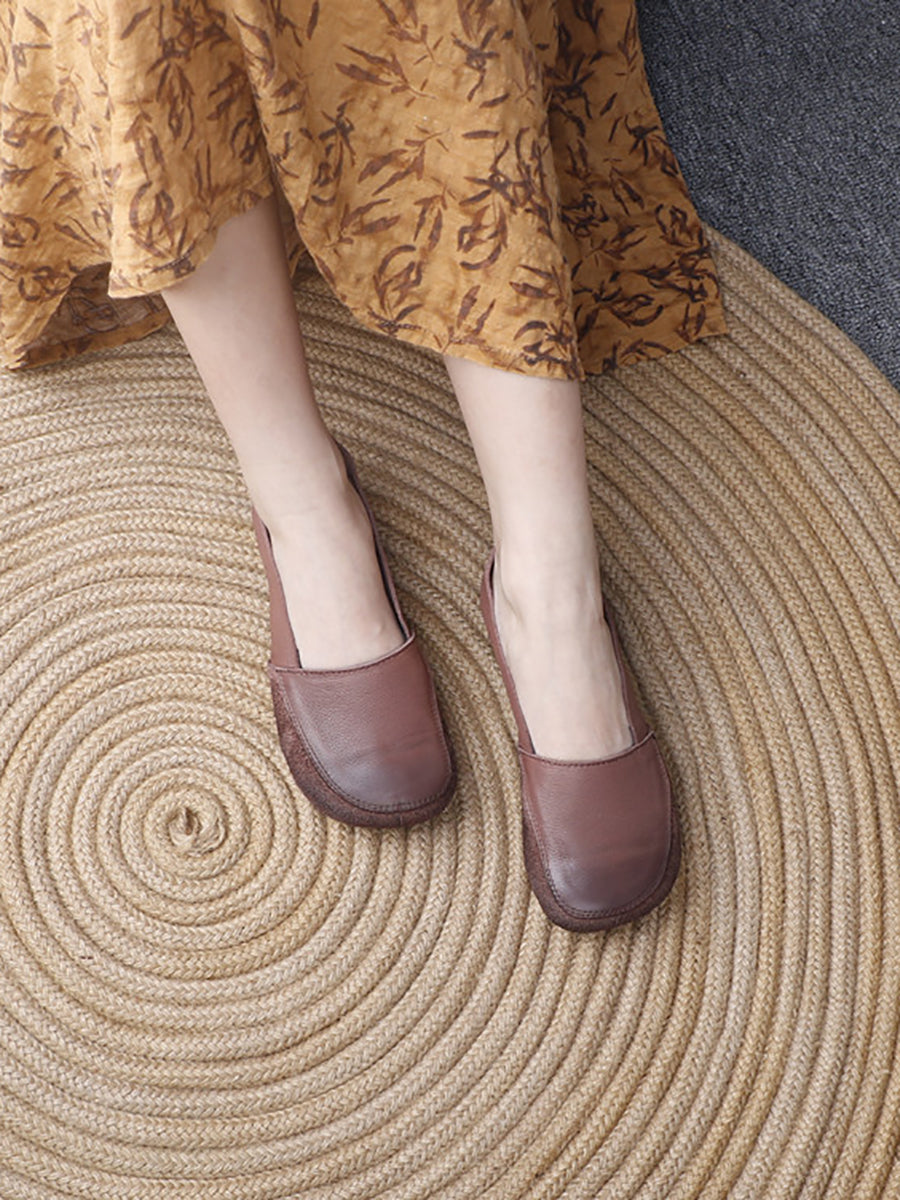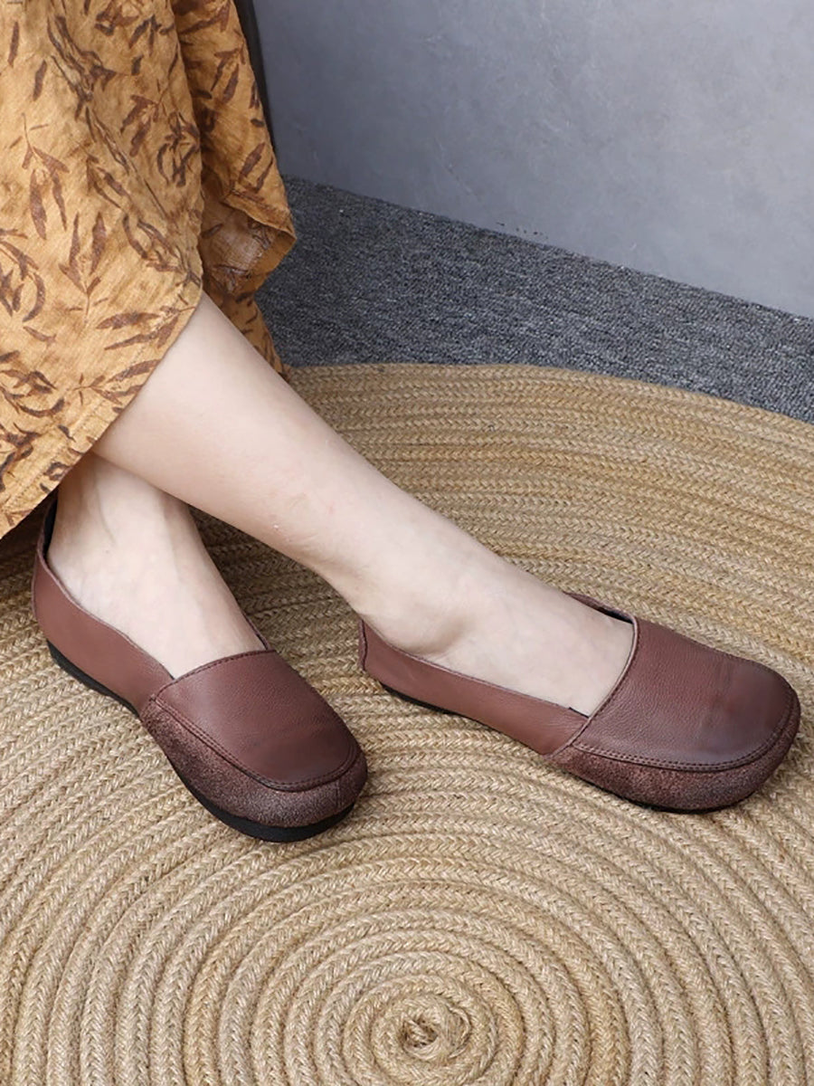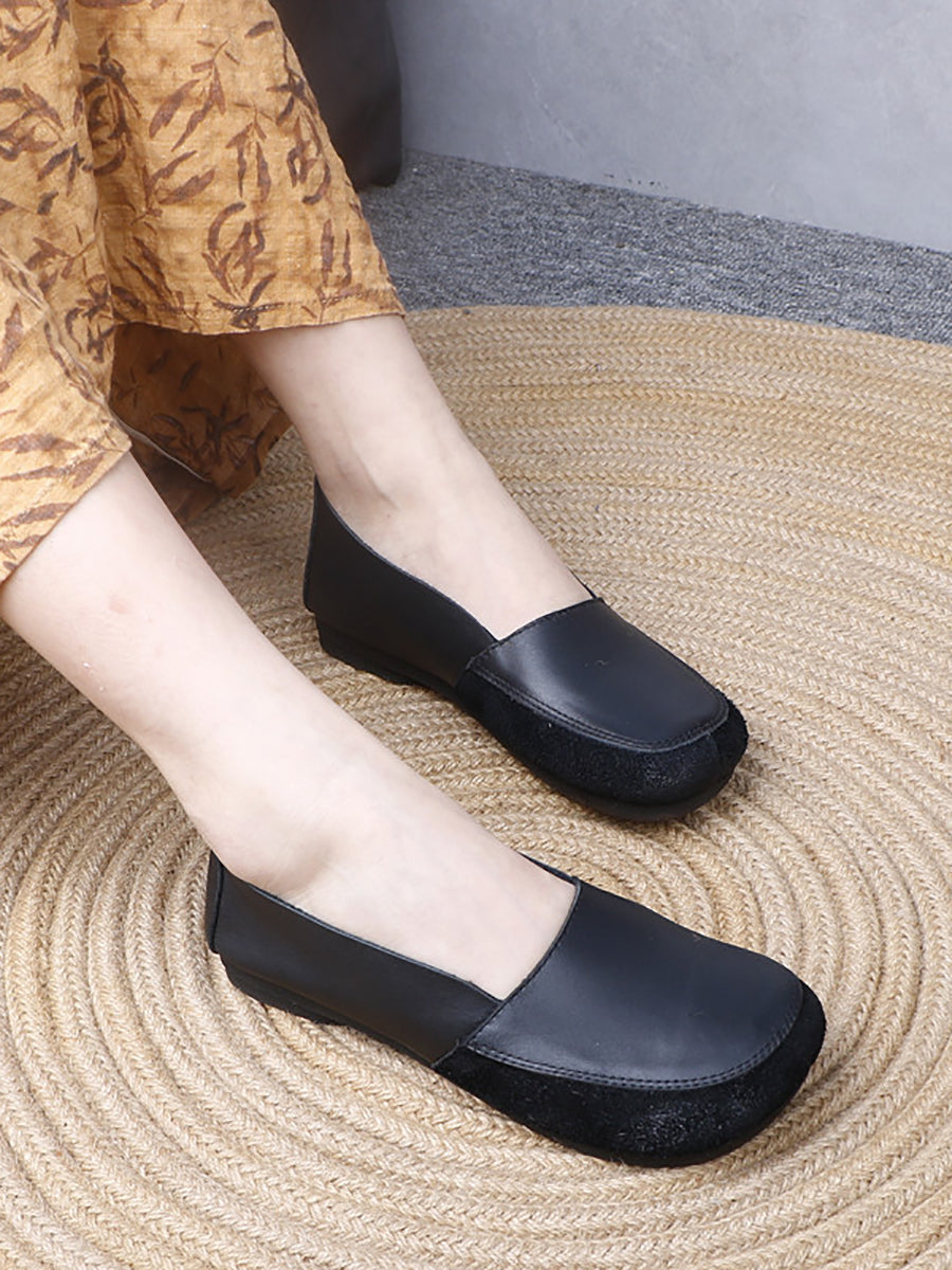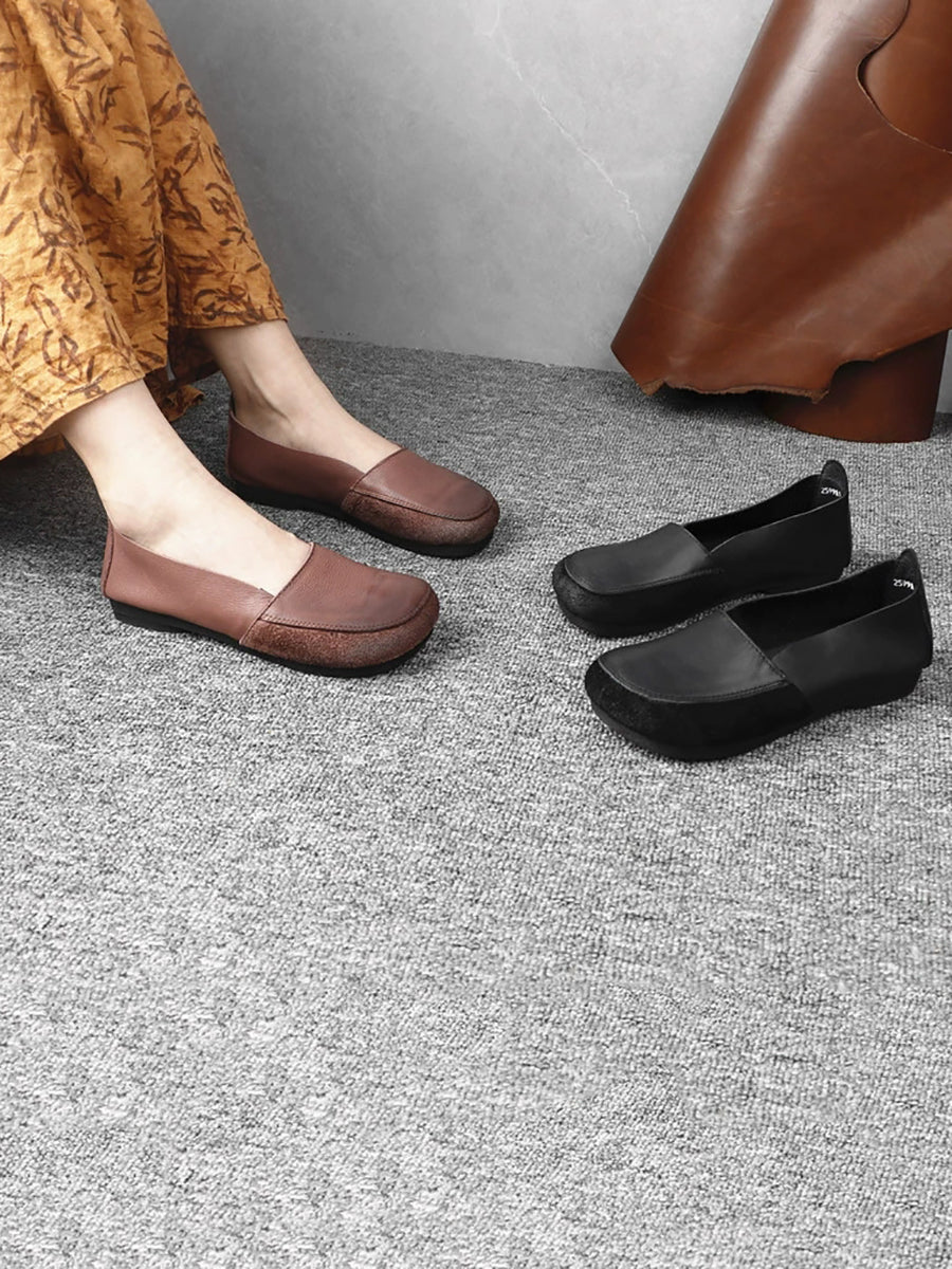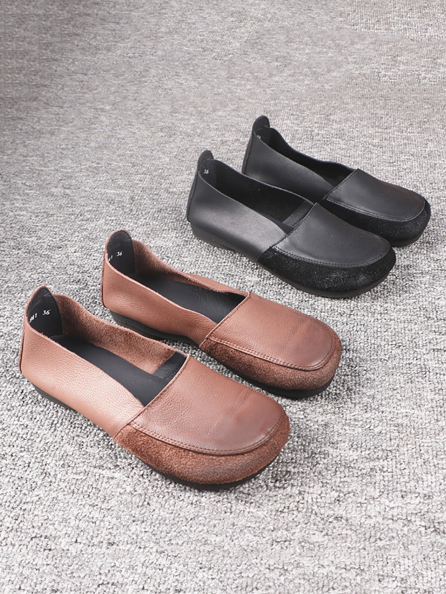 أحذية نسائية كلاسيكية من الجلد الطبيعي بتصميم مقسم وكعب منخفض