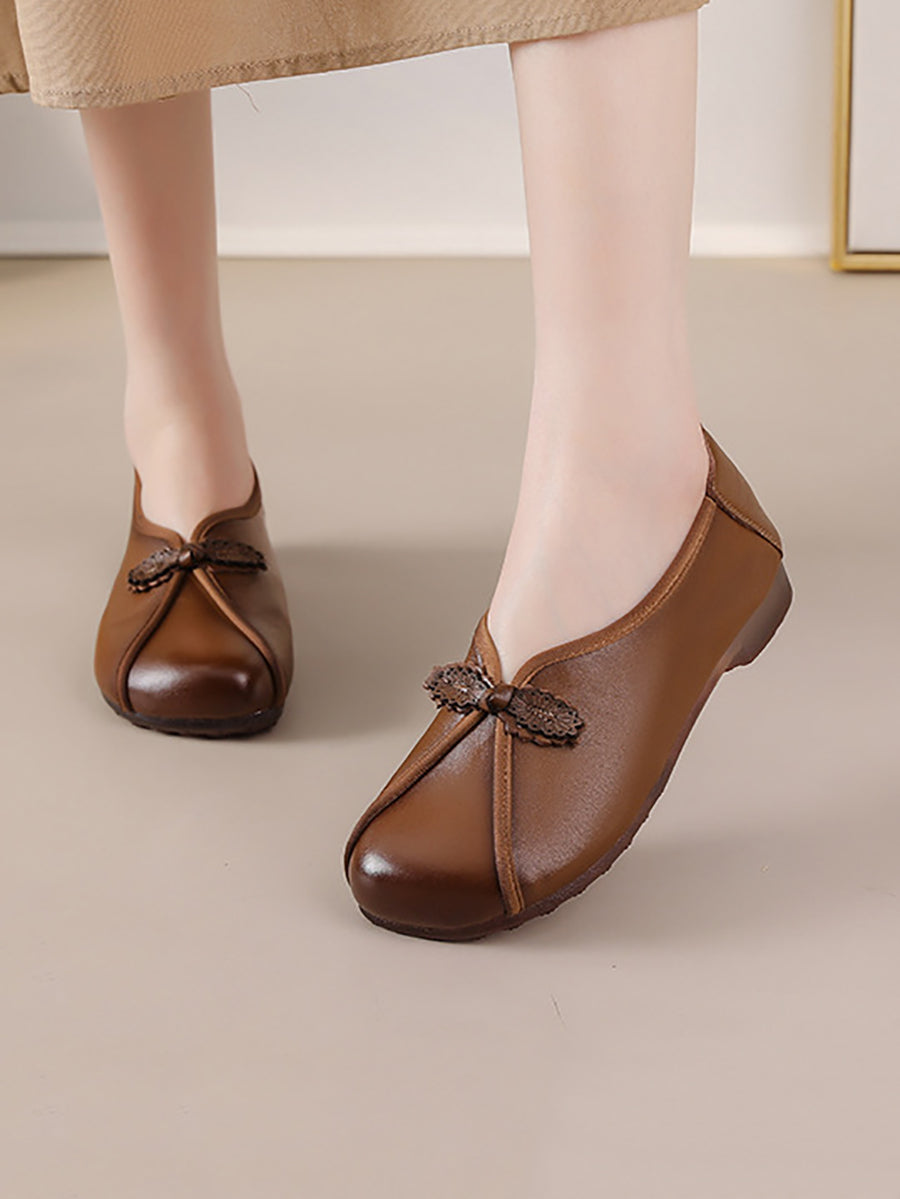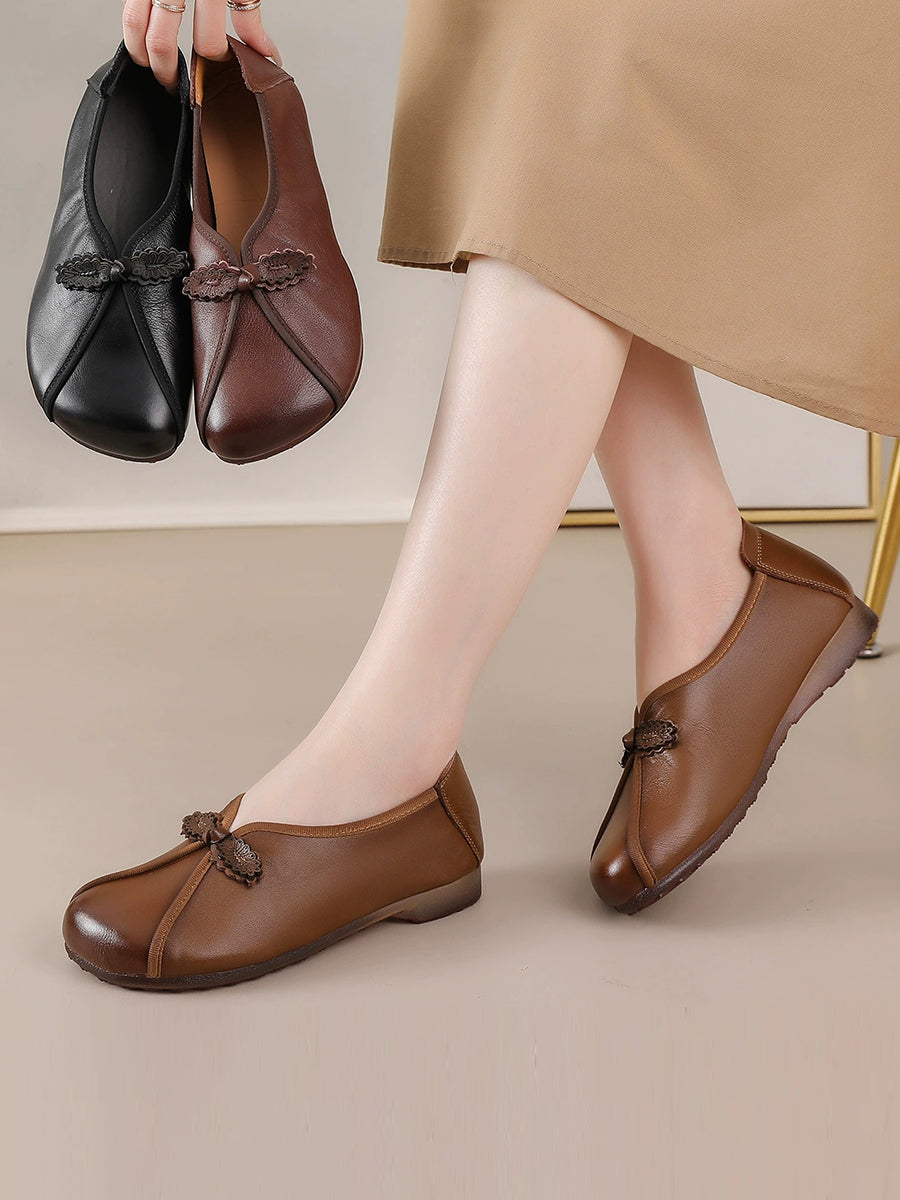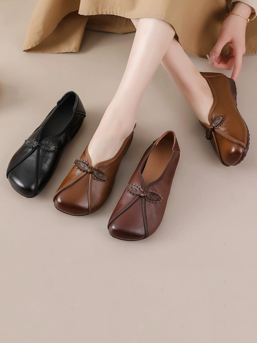 أحذية نسائية كلاسيكية من الجلد الطبيعي بتصميم متداخل
