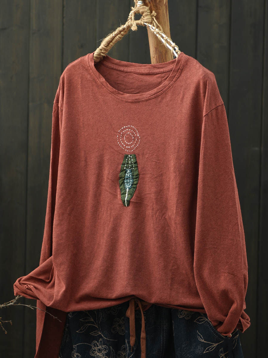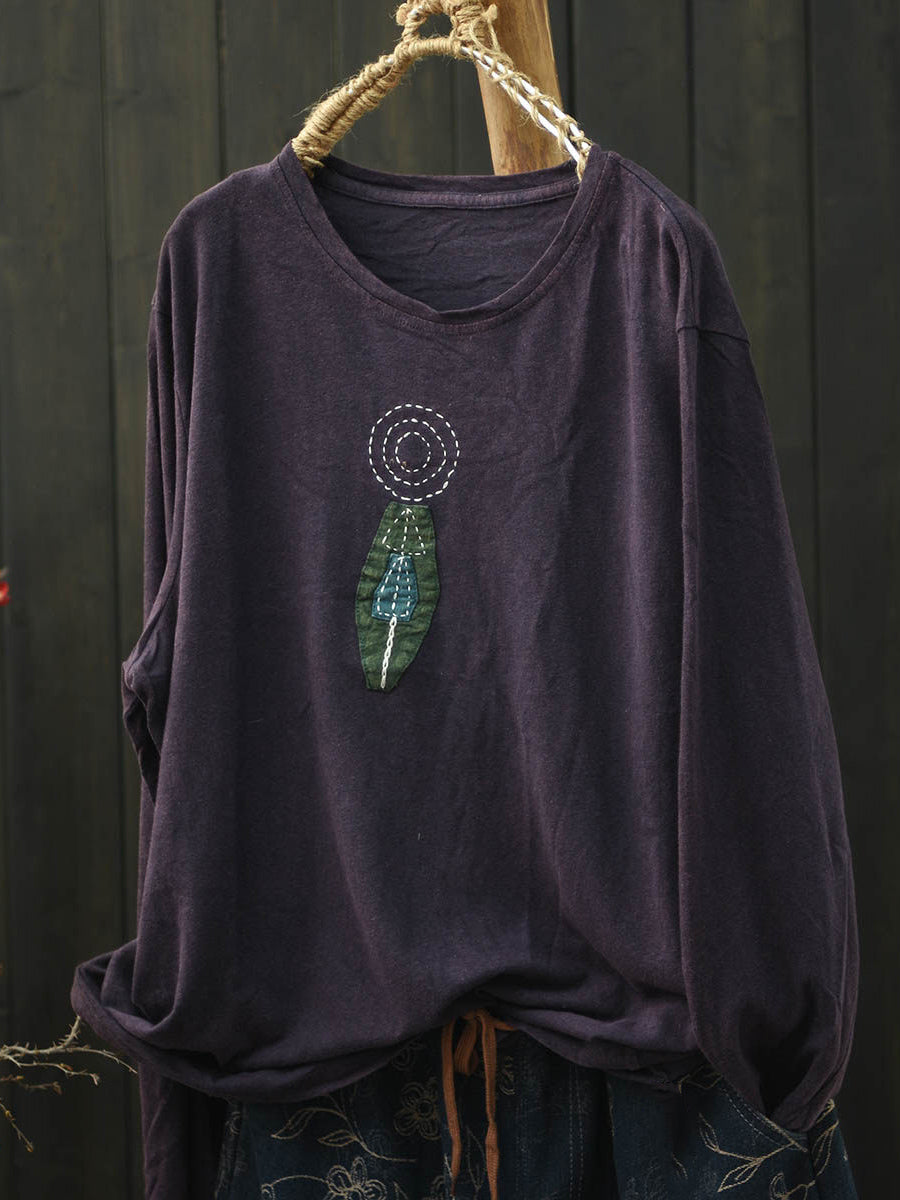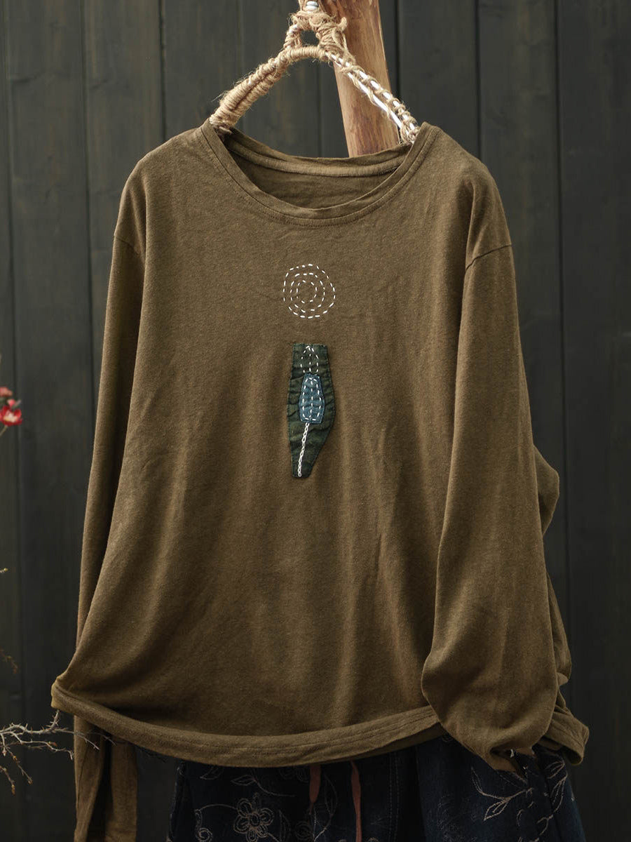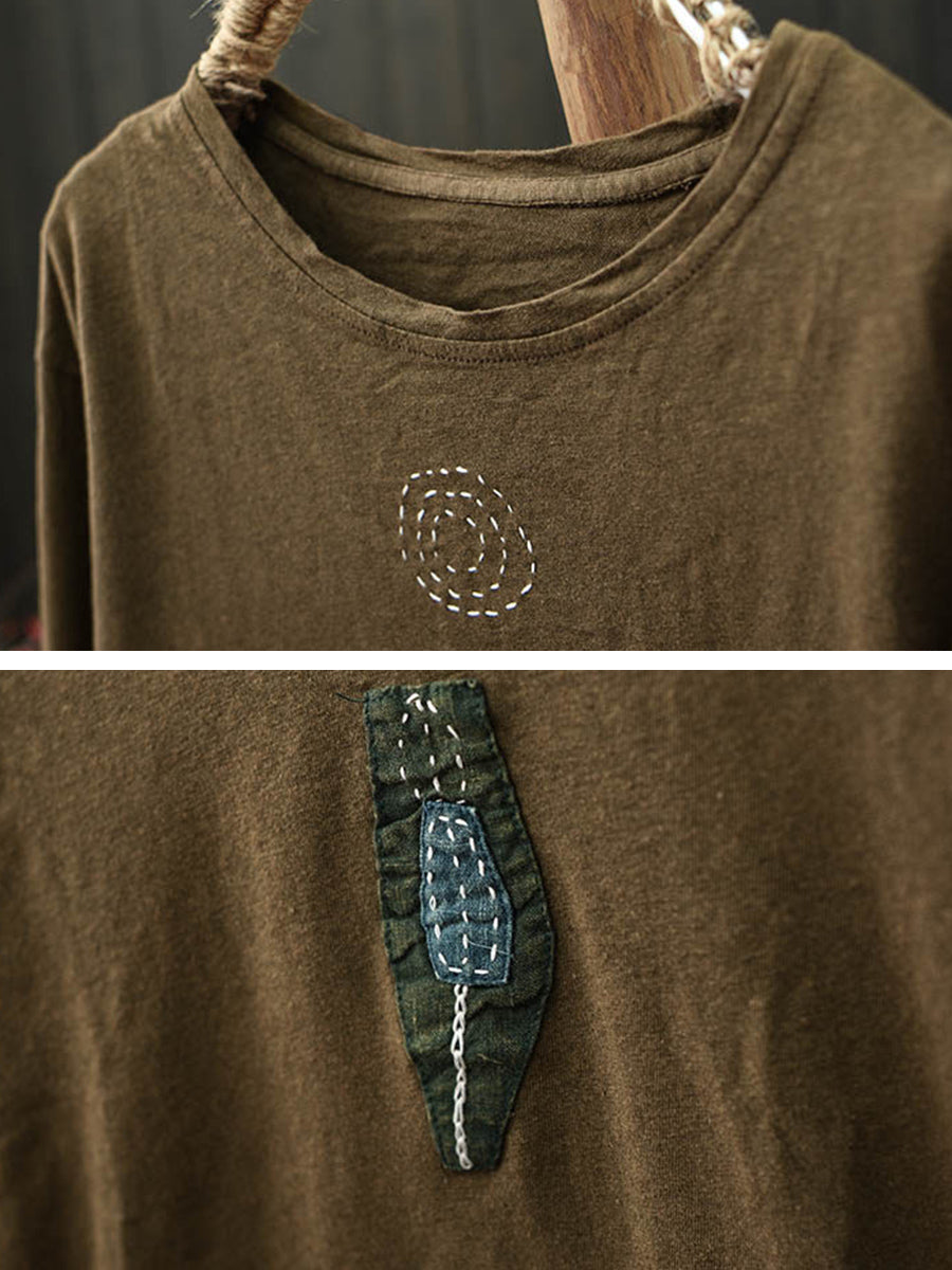 بلوزة نسائية ربيعية بتصميم مرقع من القطن برقبة دائرية
