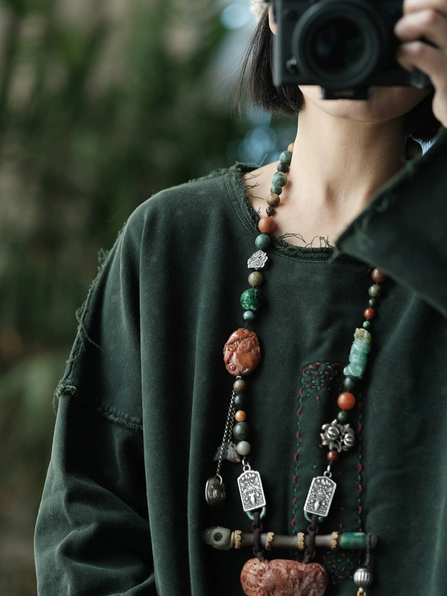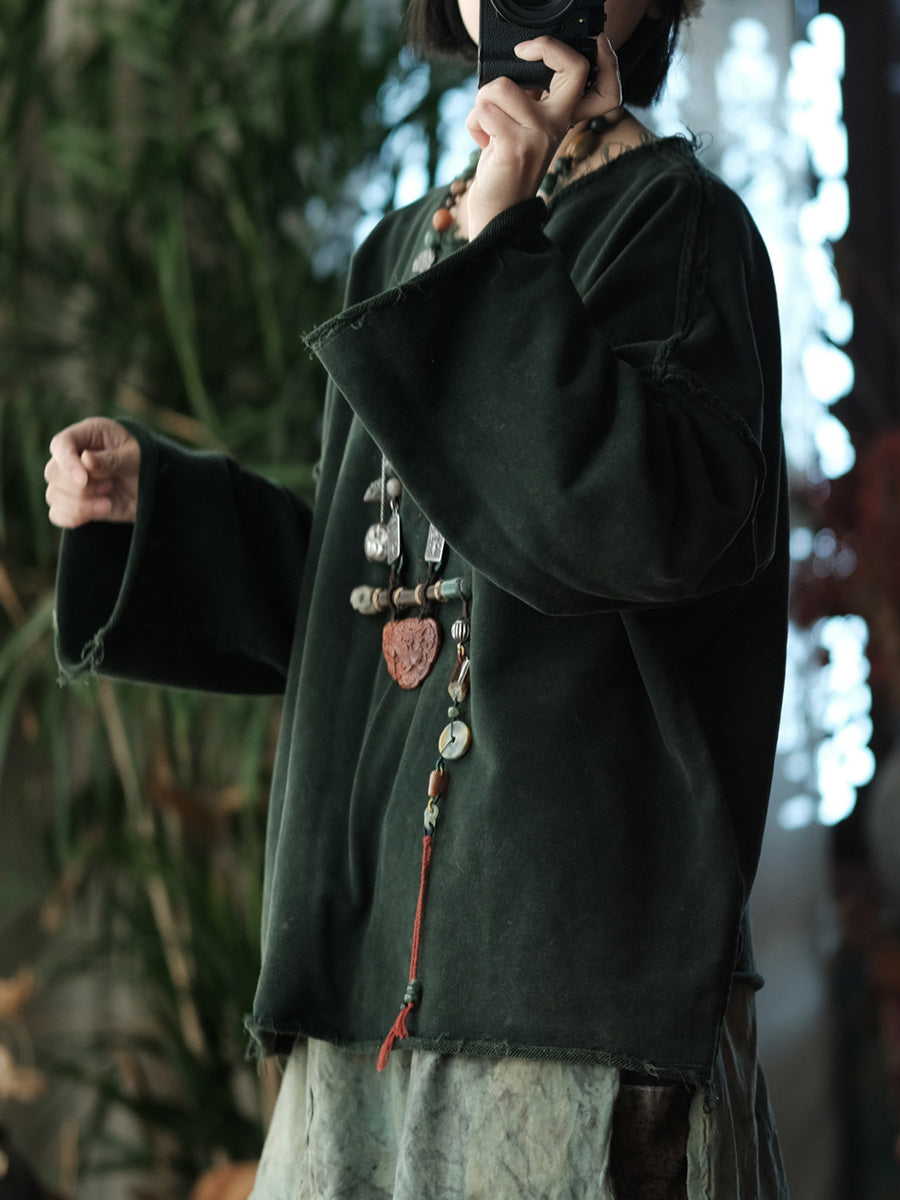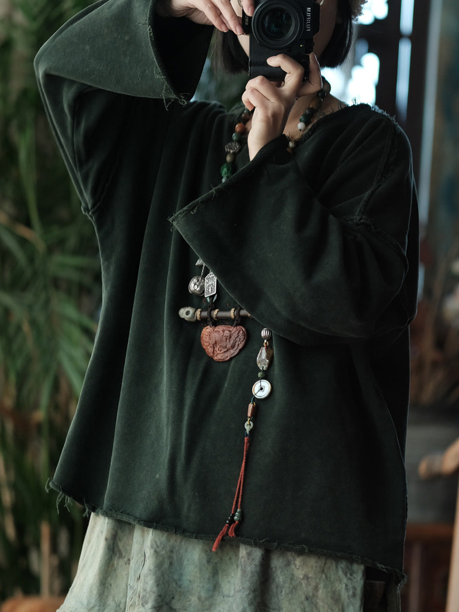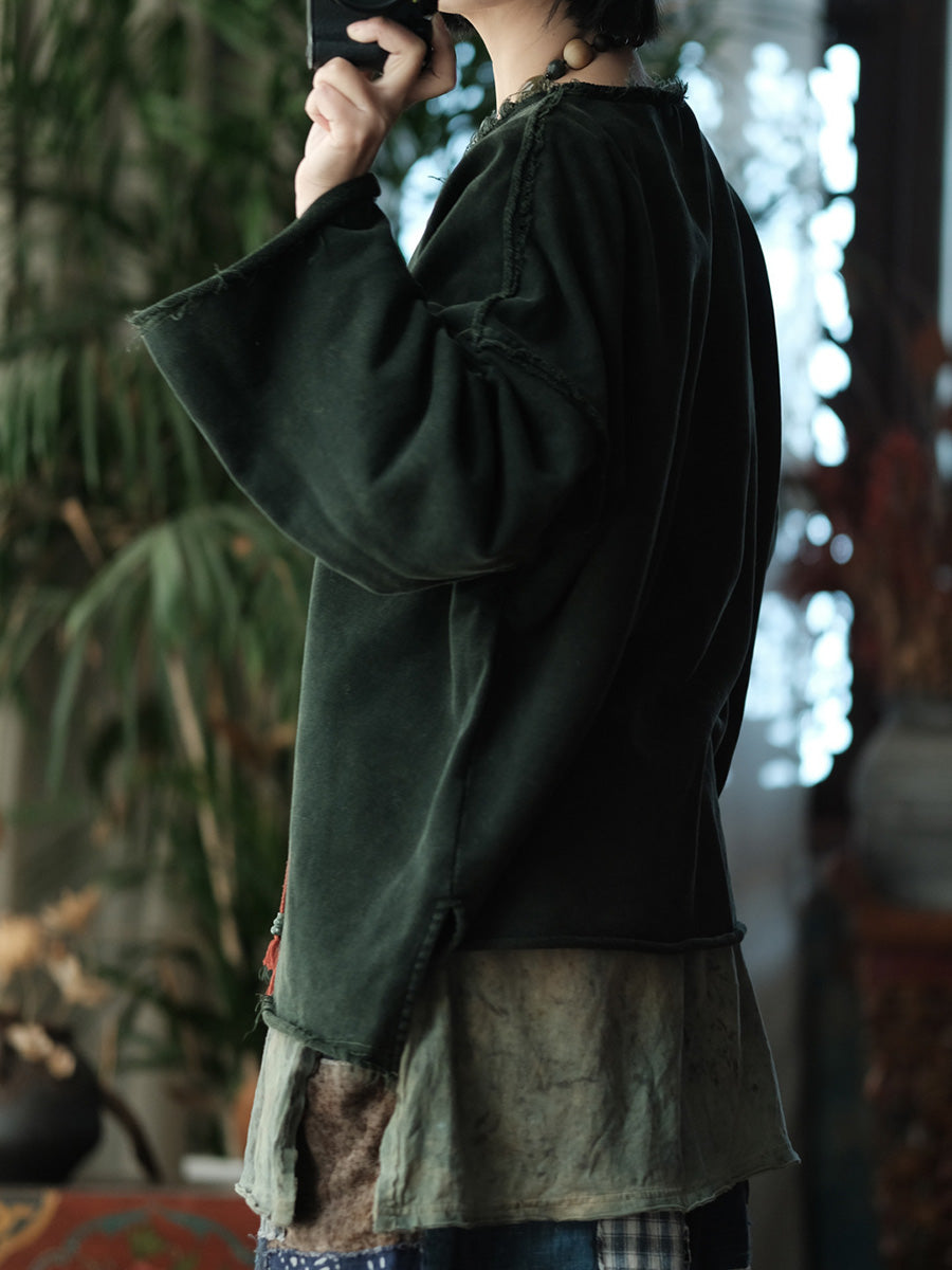 بلوزة نسائية ربيعية كلاسيكية من القطن بلون موحد وياقة دائرية