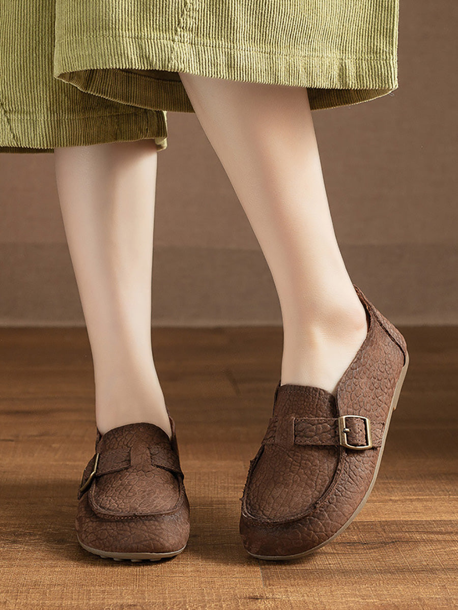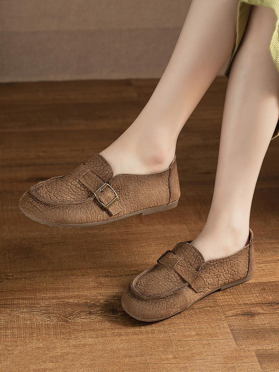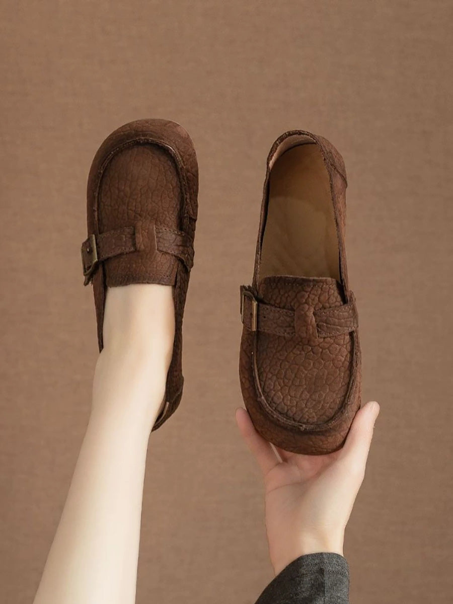 حذاء نسائي مسطح من الجلد الطبيعي الناعم