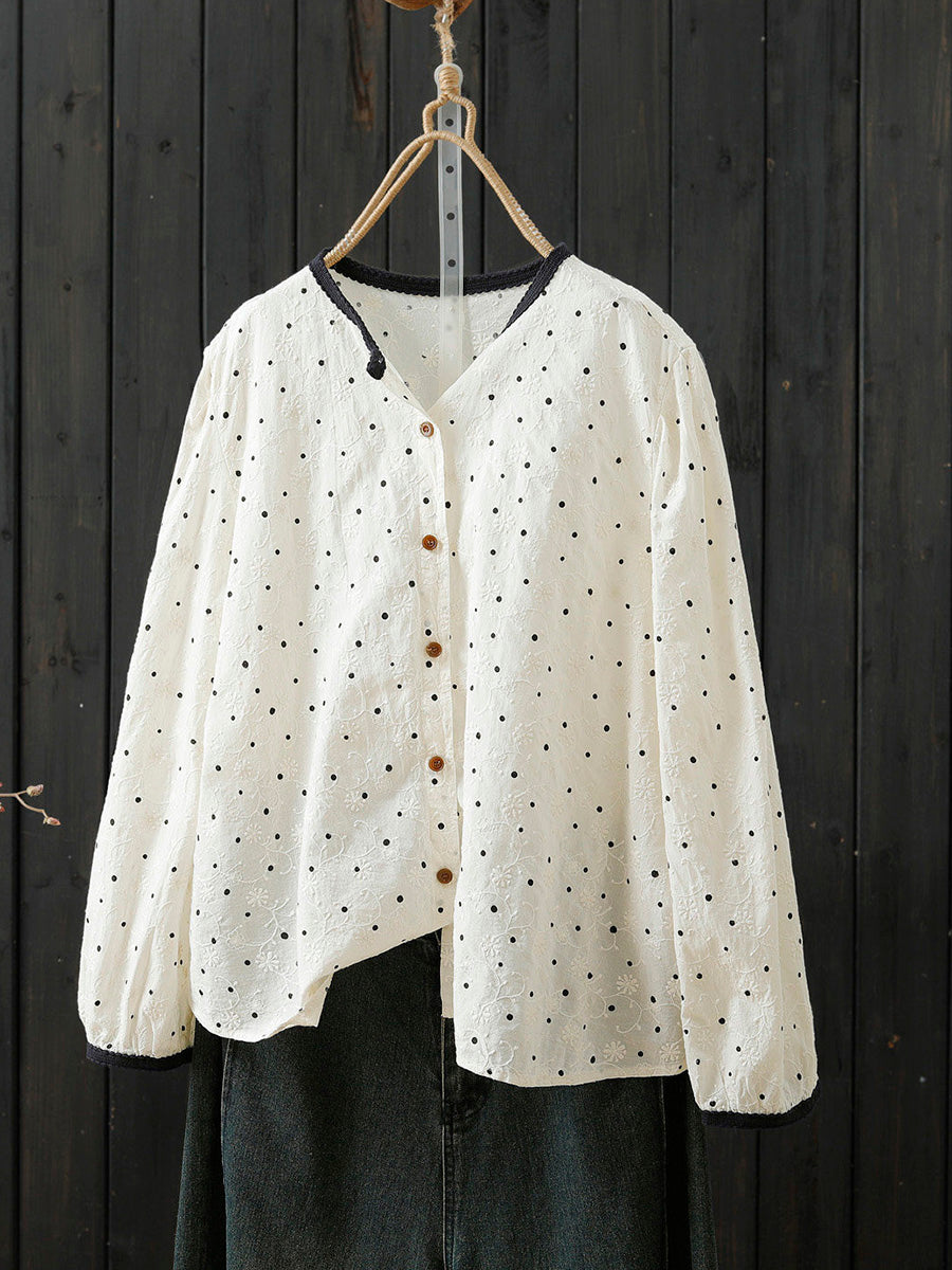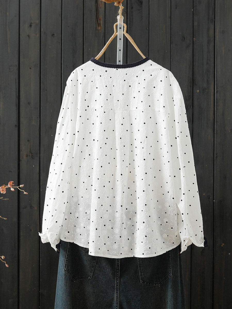 قميص نسائي ربيعي مطرز بنقاط فنية من القطن الخالص 100%