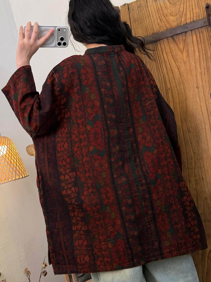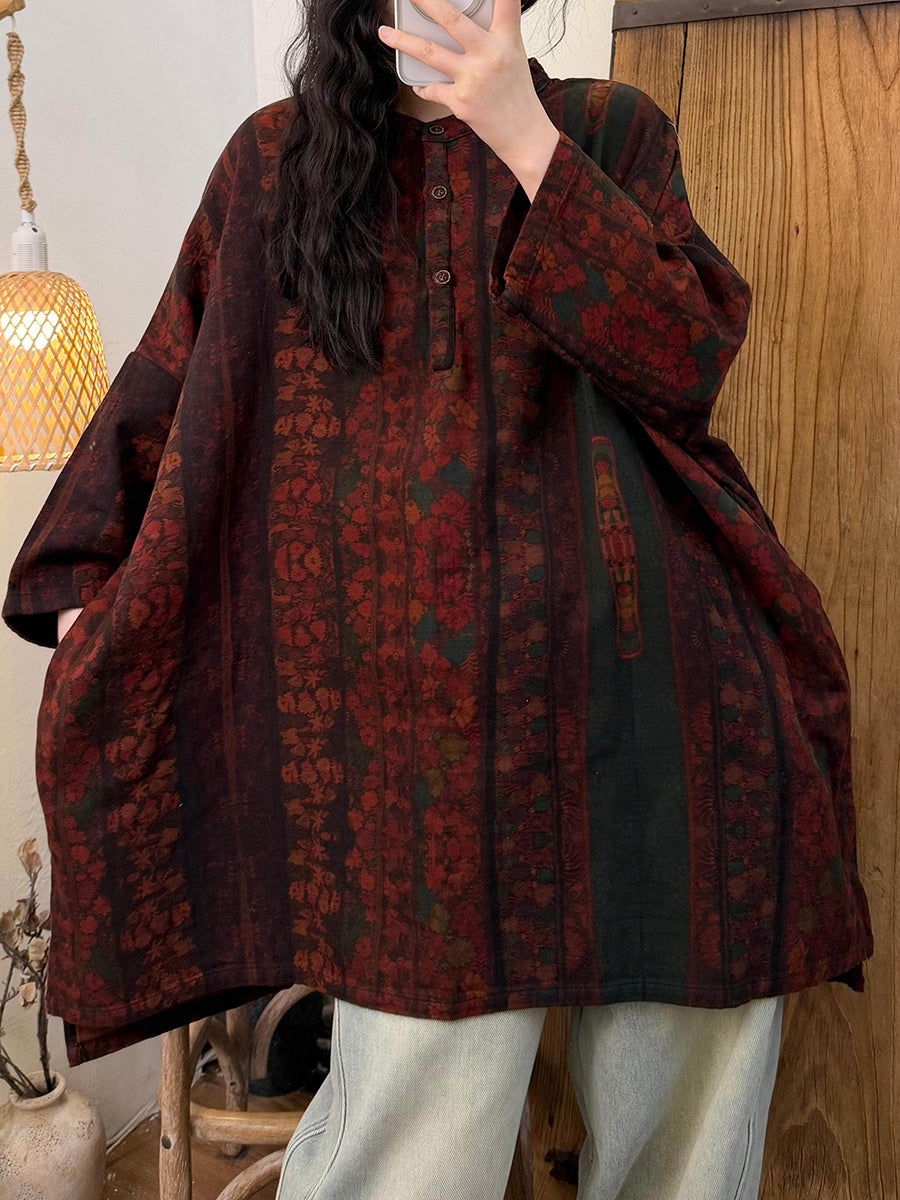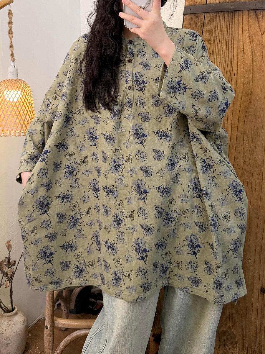 بلوزة نسائية ربيعية من القطن مزينة بنقوش زهور فنية وياقة دائرية