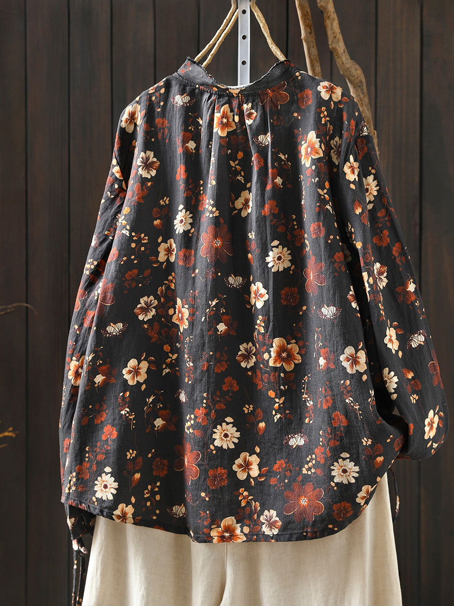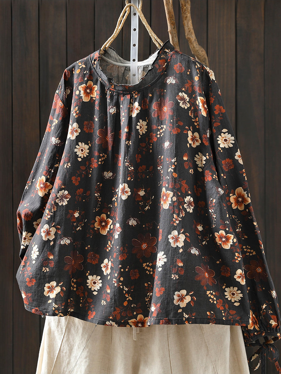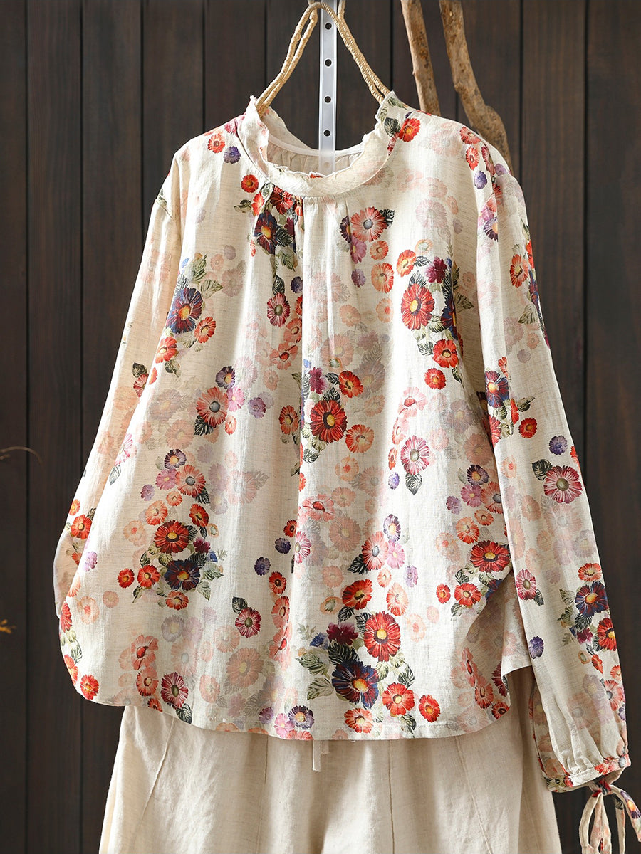 بلوزة نسائية ربيعية مزينة بالزهور، مصنوعة من الكتان بنسبة 100%