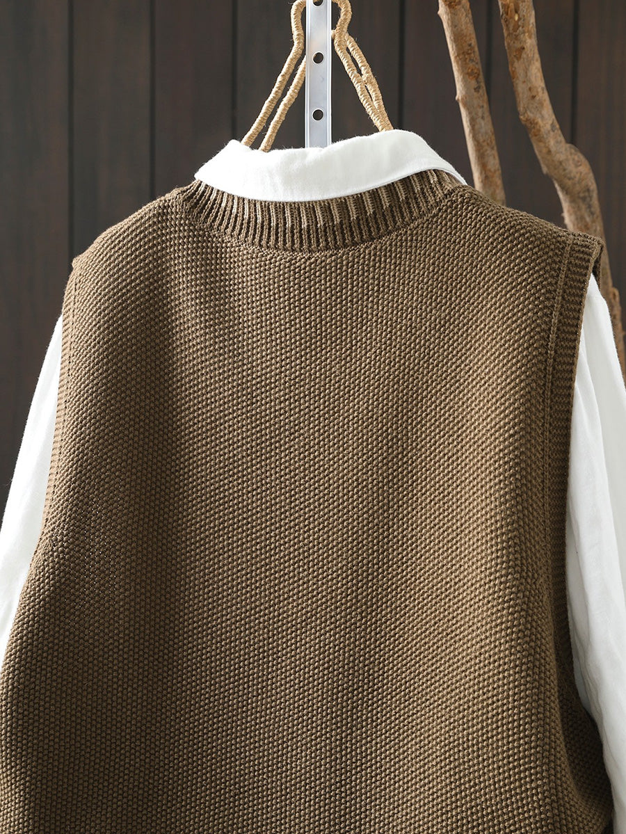 صُنع هذا الصدرية المحبوكة من مزيج متوازن بعناية من 45% قطن و55% أكريليك، ليجمع بين الراحة والمتانة. يتميز بتصميم فريد بفتحة رقبة على شكل حرف V، ولمسات فنية أنيقة، مما يجعله قطعة مثالية للارتداء فوق طبقات أخرى في فصلي الربيع والخريف. قطعة متعددة الاستخدامات، مثالية لفصلي الربيع والخريف، تجمع بين الأناقة العصرية والراقية بأسلوب بسيط وراقٍ.
