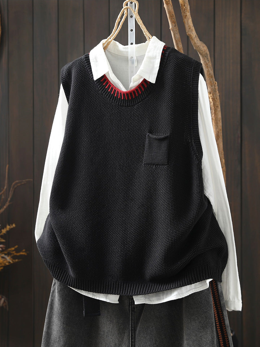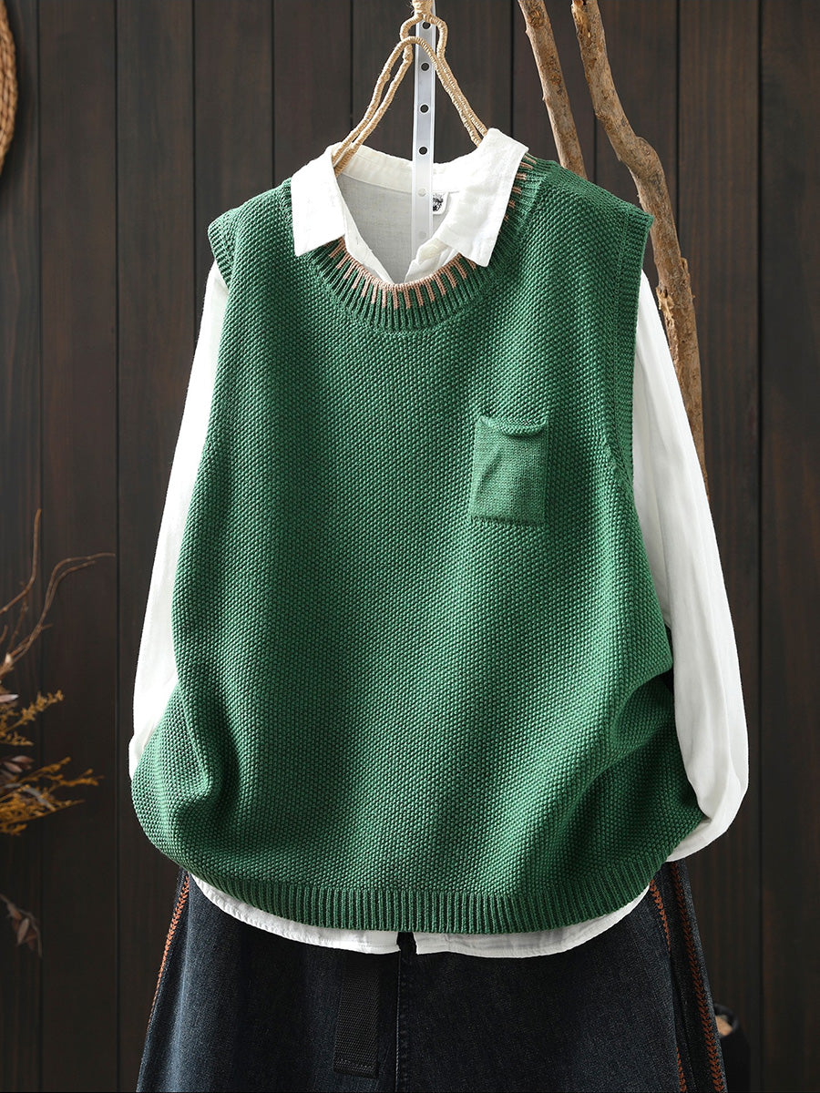 صدرية نسائية ربيعية فنية بياقة دائرية وألوان متداخلة