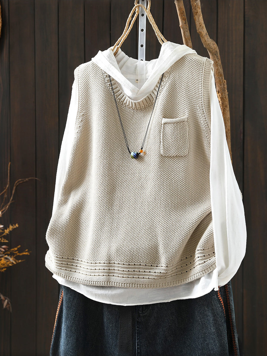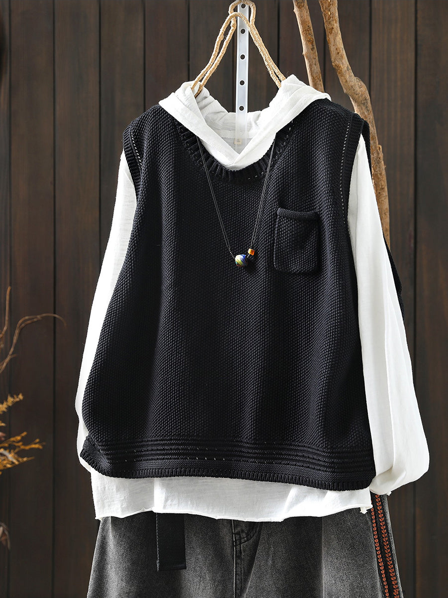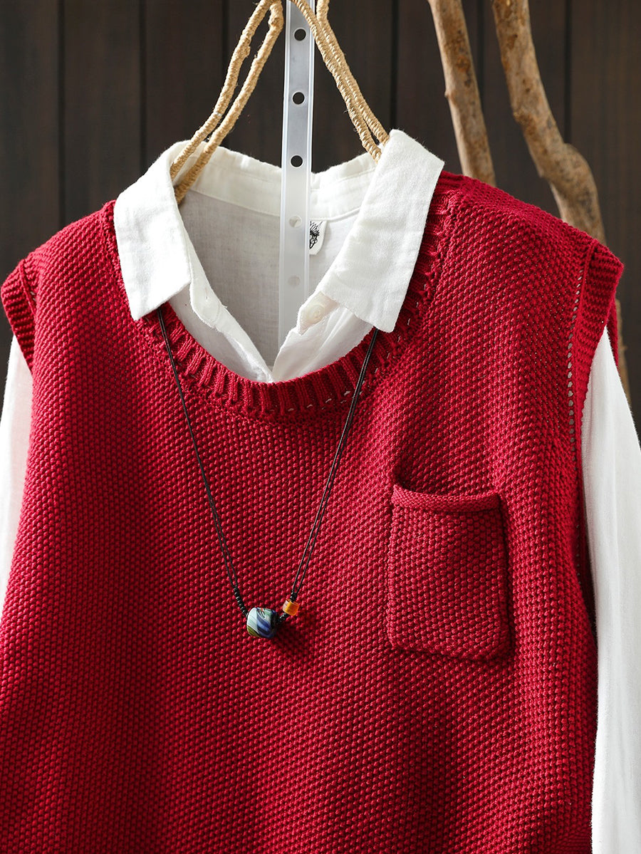صدرية نسائية ربيعية فنية بياقة دائرية بلون موحد محبوك