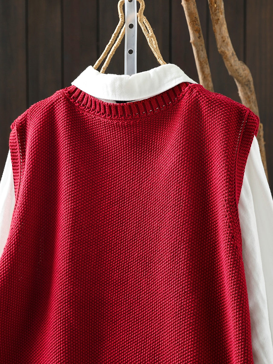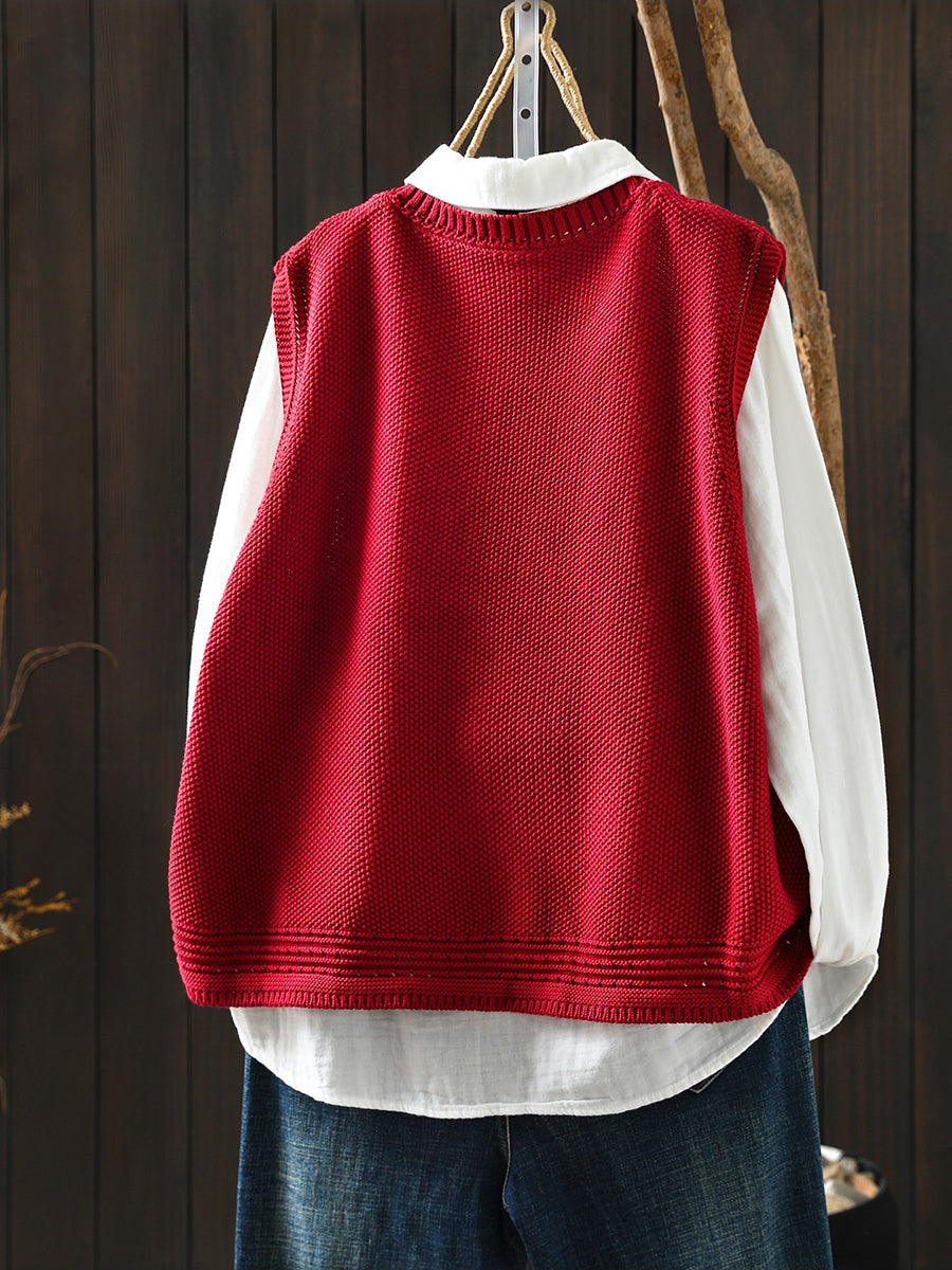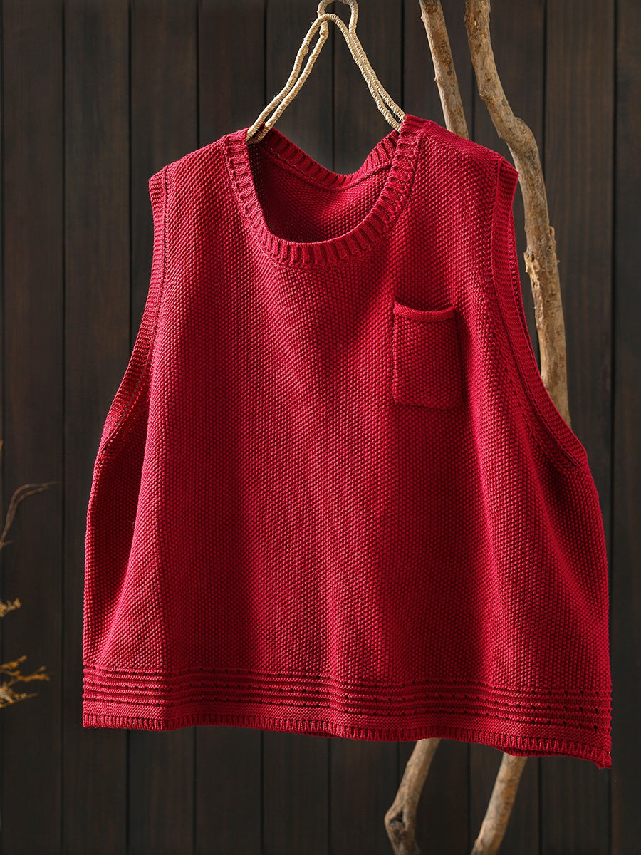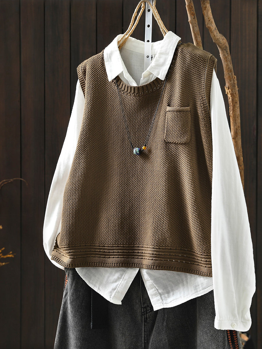 صدرية نسائية ربيعية فنية بياقة دائرية بلون موحد محبوك