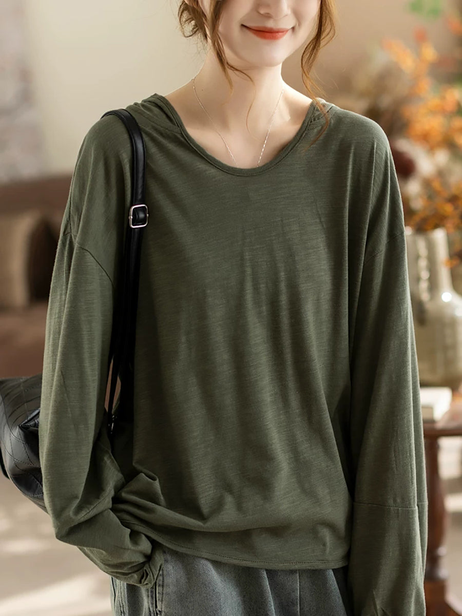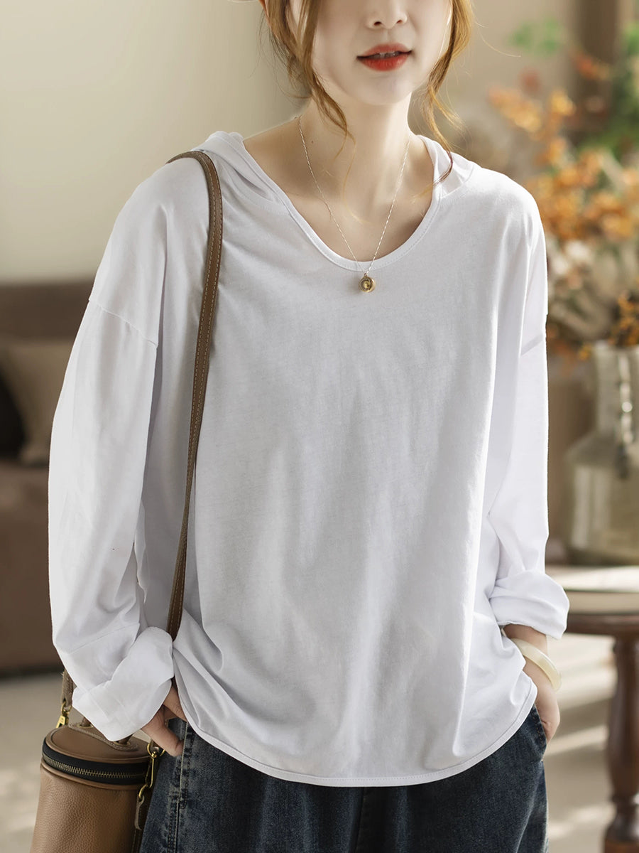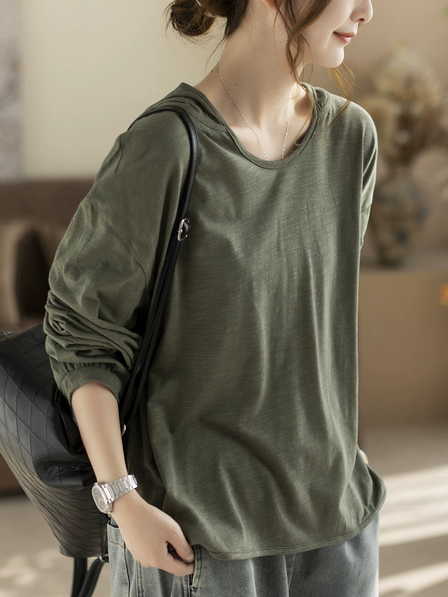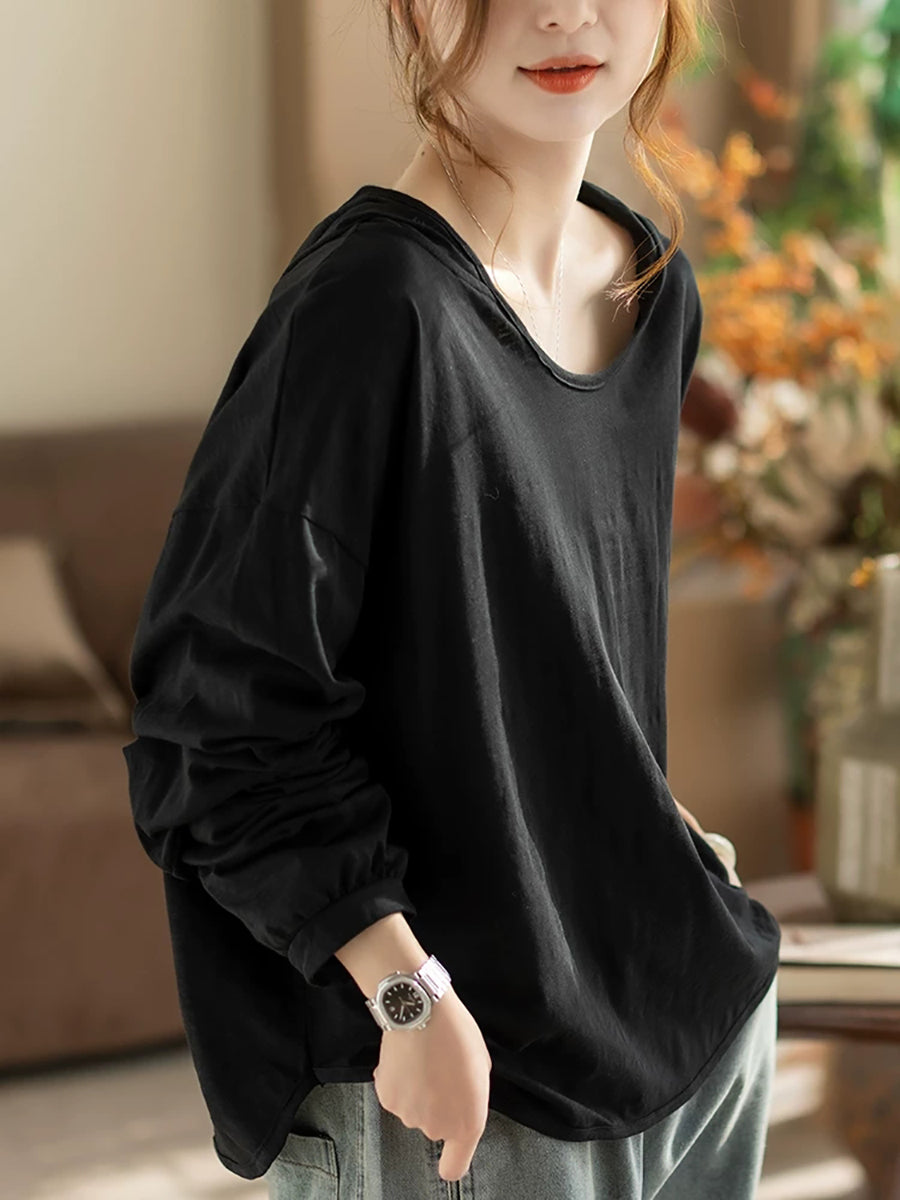 هودي نسائي ربيعي فني بلون نقي مصنوع من القطن بنسبة 100%