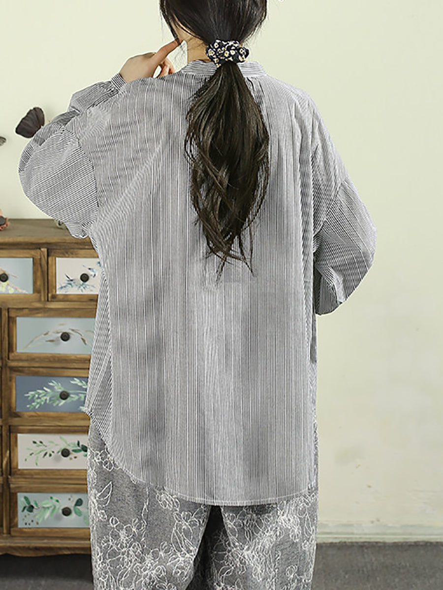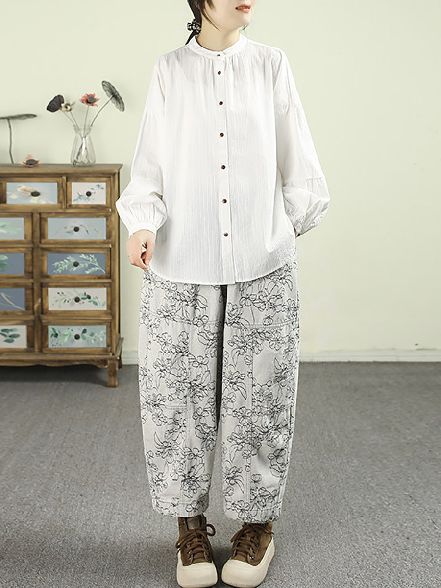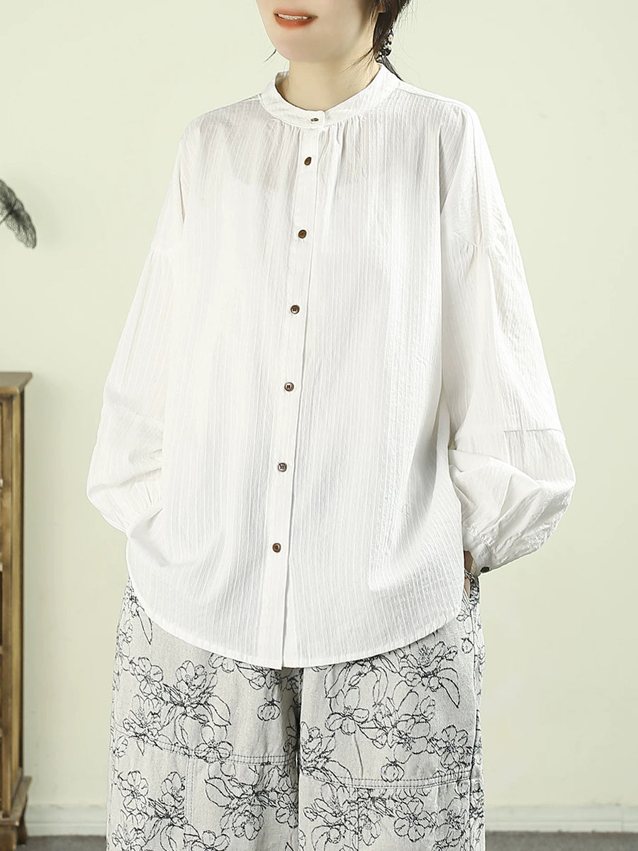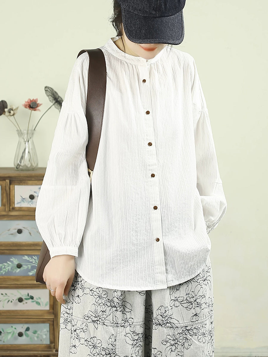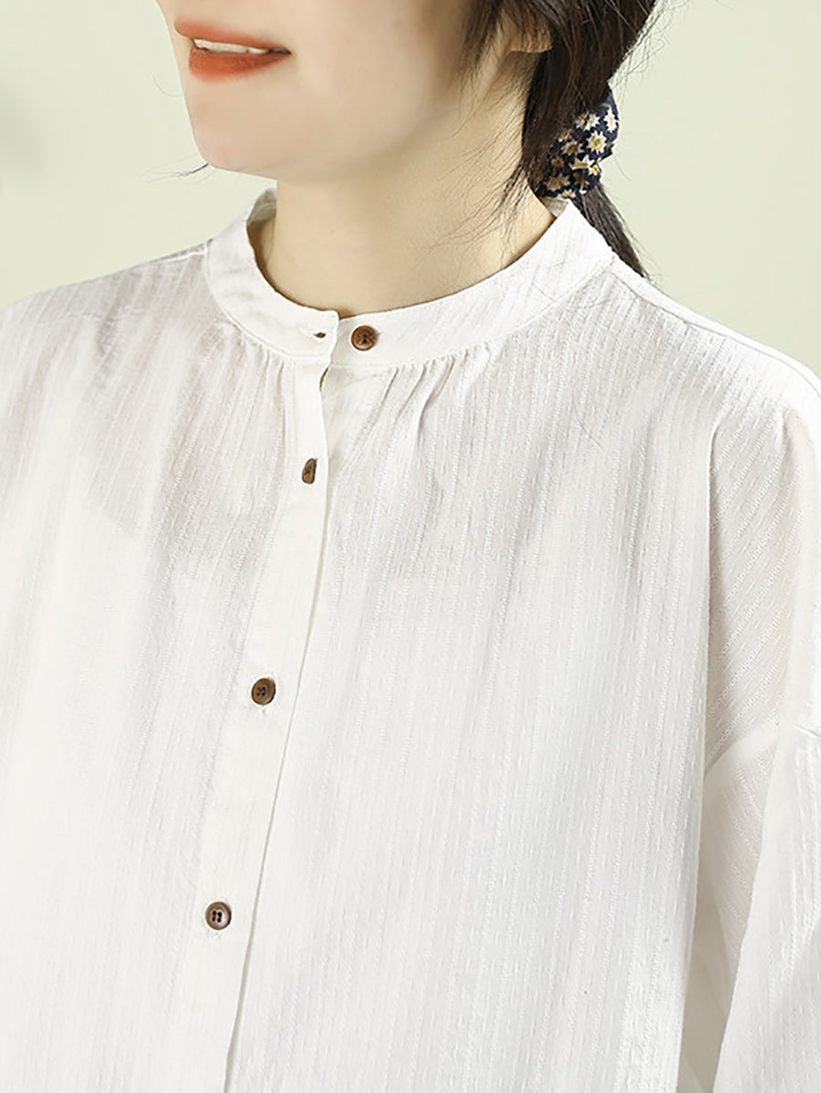 قميص نسائي ربيعي فني بلون موحد، مصنوع من القطن بنسبة 100%، بياقة واقفة