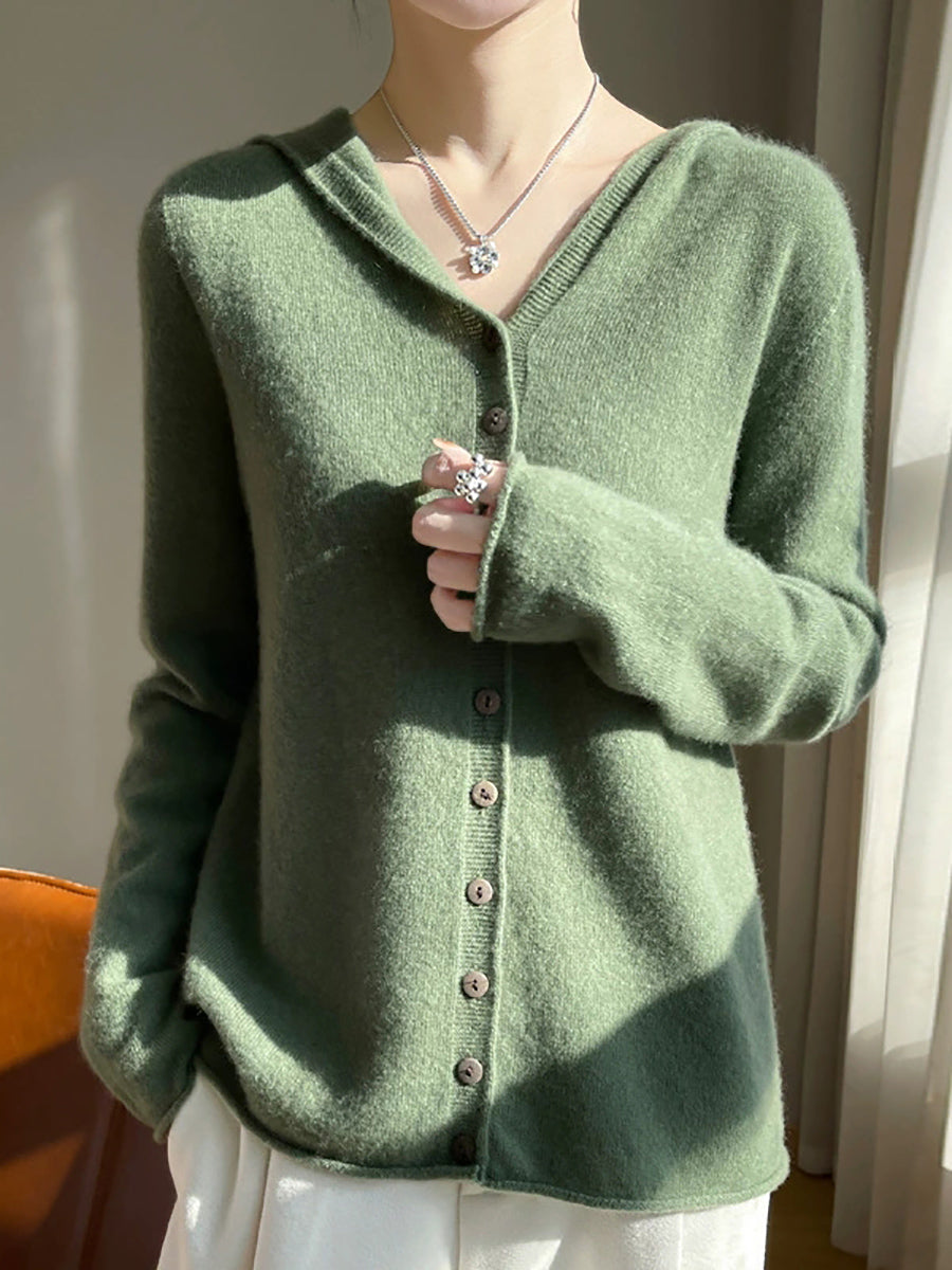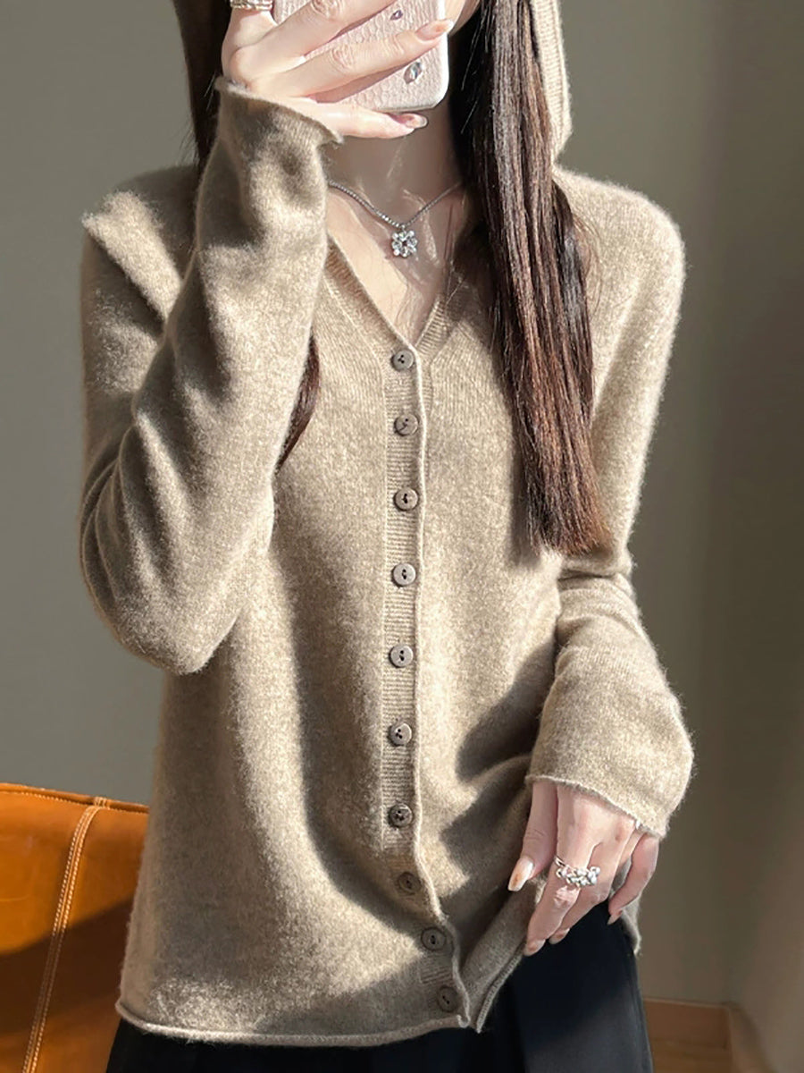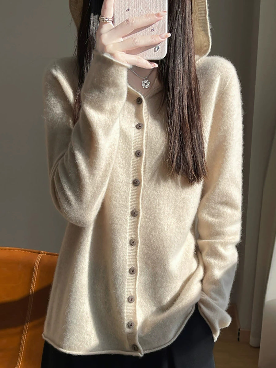 كارديجان نسائي ربيعي فني بألوان سادة مع غطاء للرأس