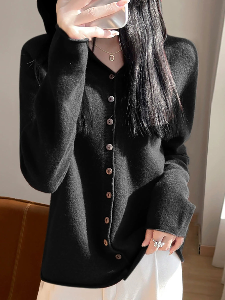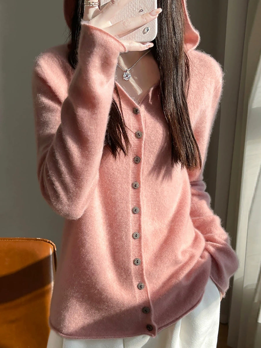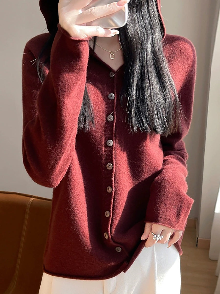 كارديجان نسائي ربيعي فني بألوان سادة مع غطاء للرأس