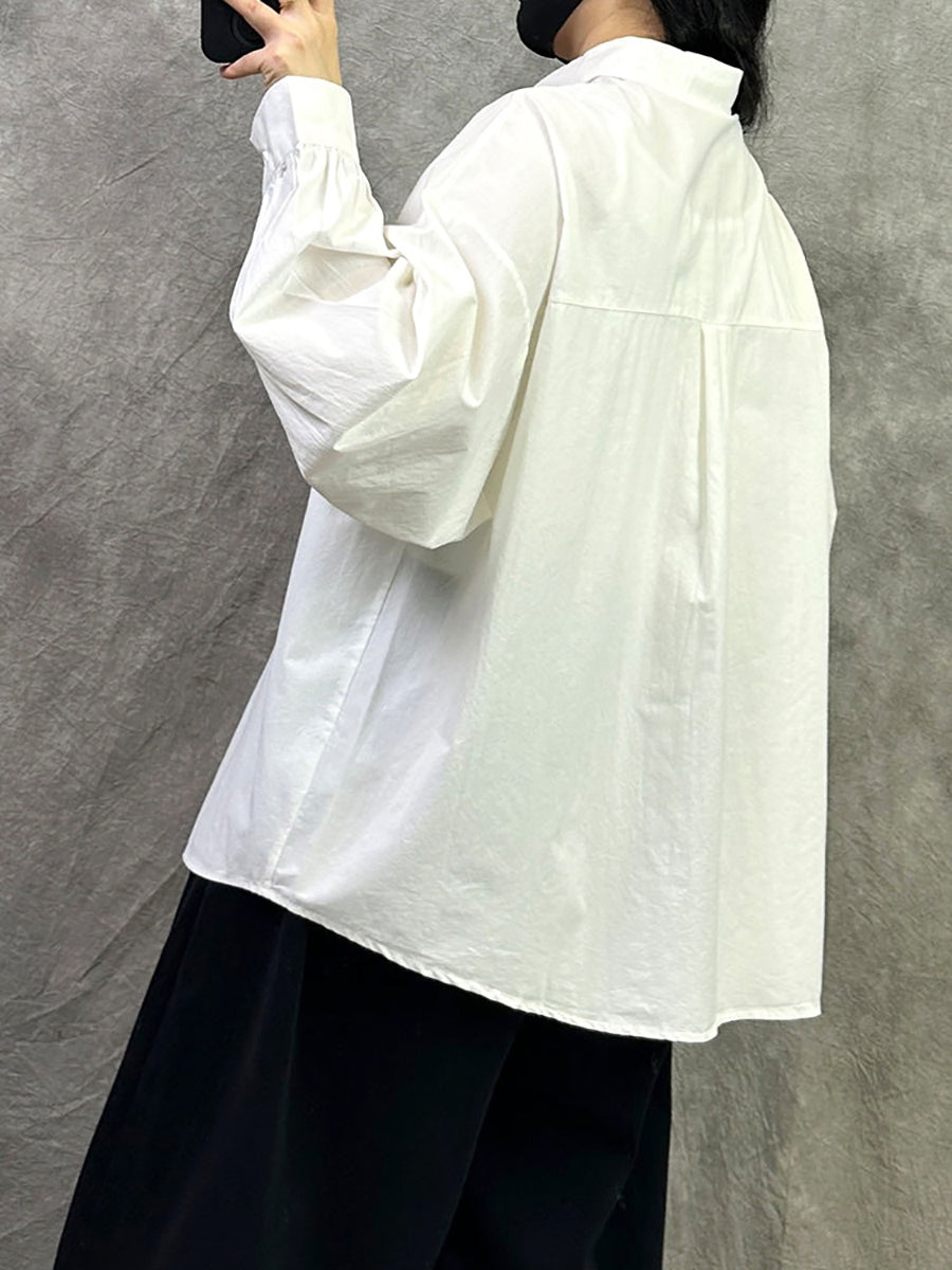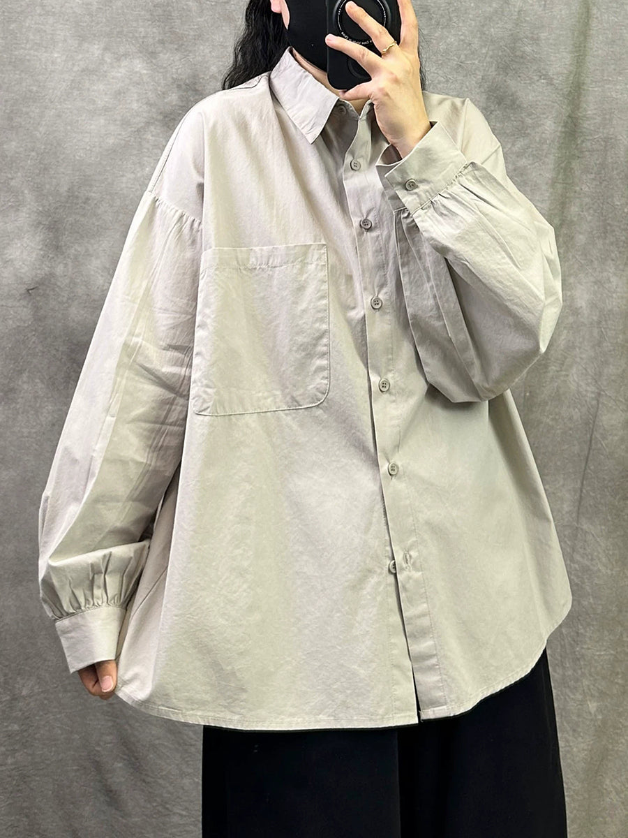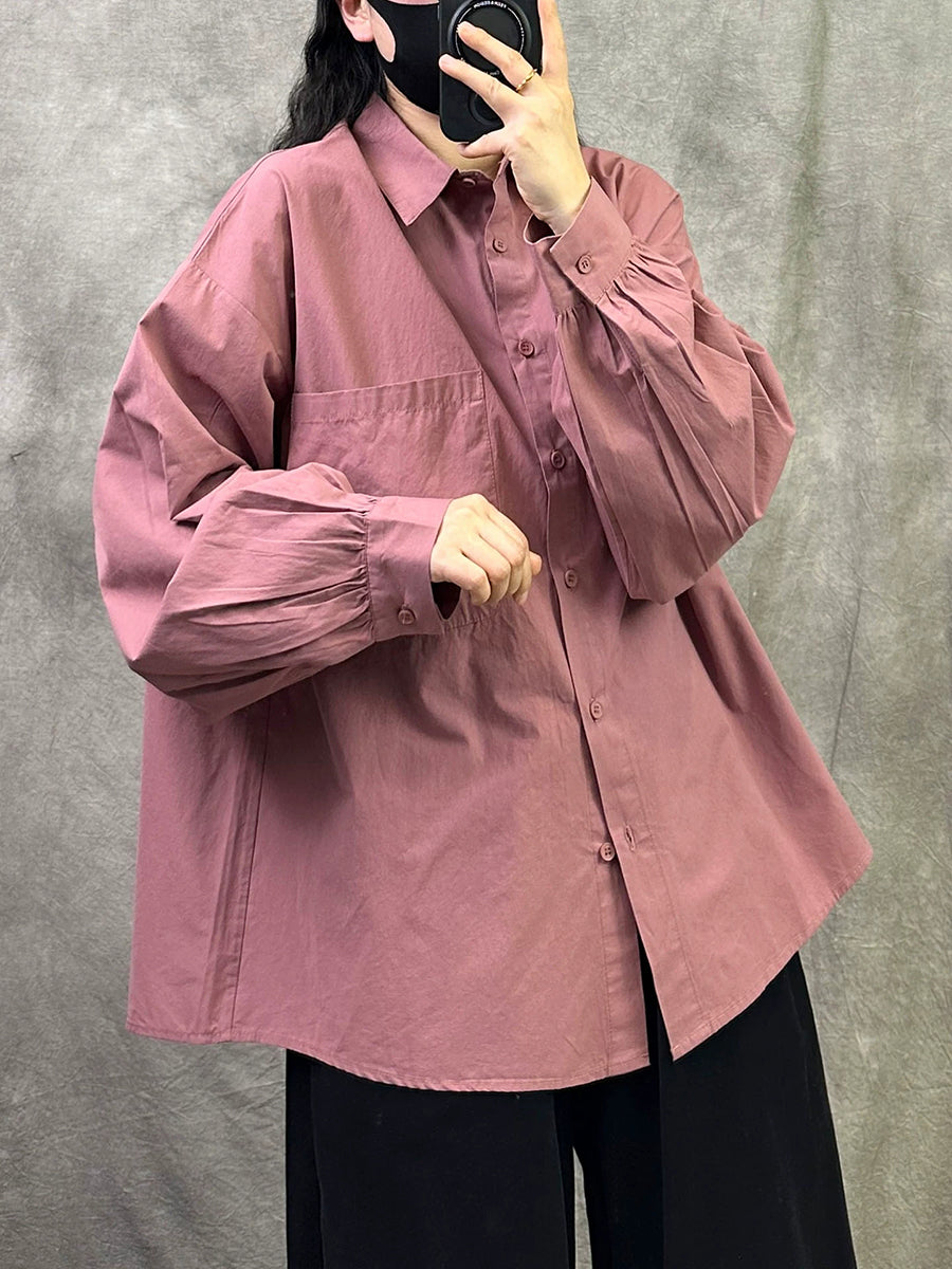 قميص نسائي ربيعي فني من القطن بلون موحد