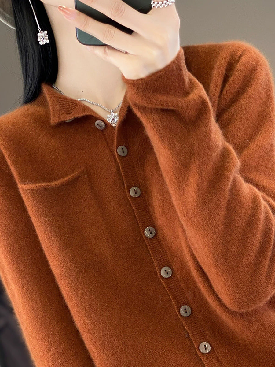كارديجان نسائي ربيعي فني بلون موحد بياقة دائرية