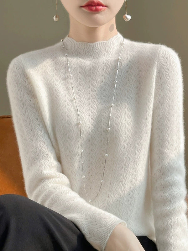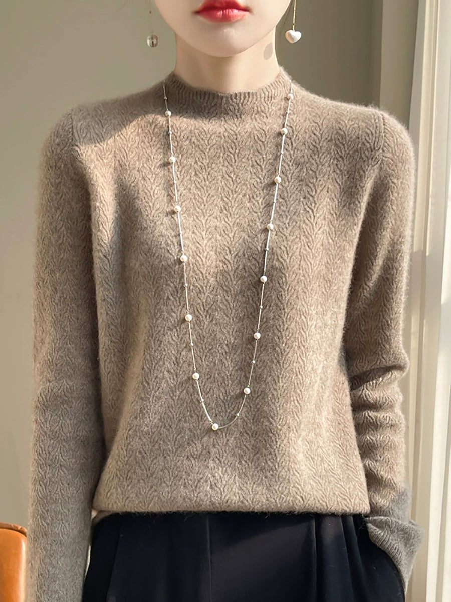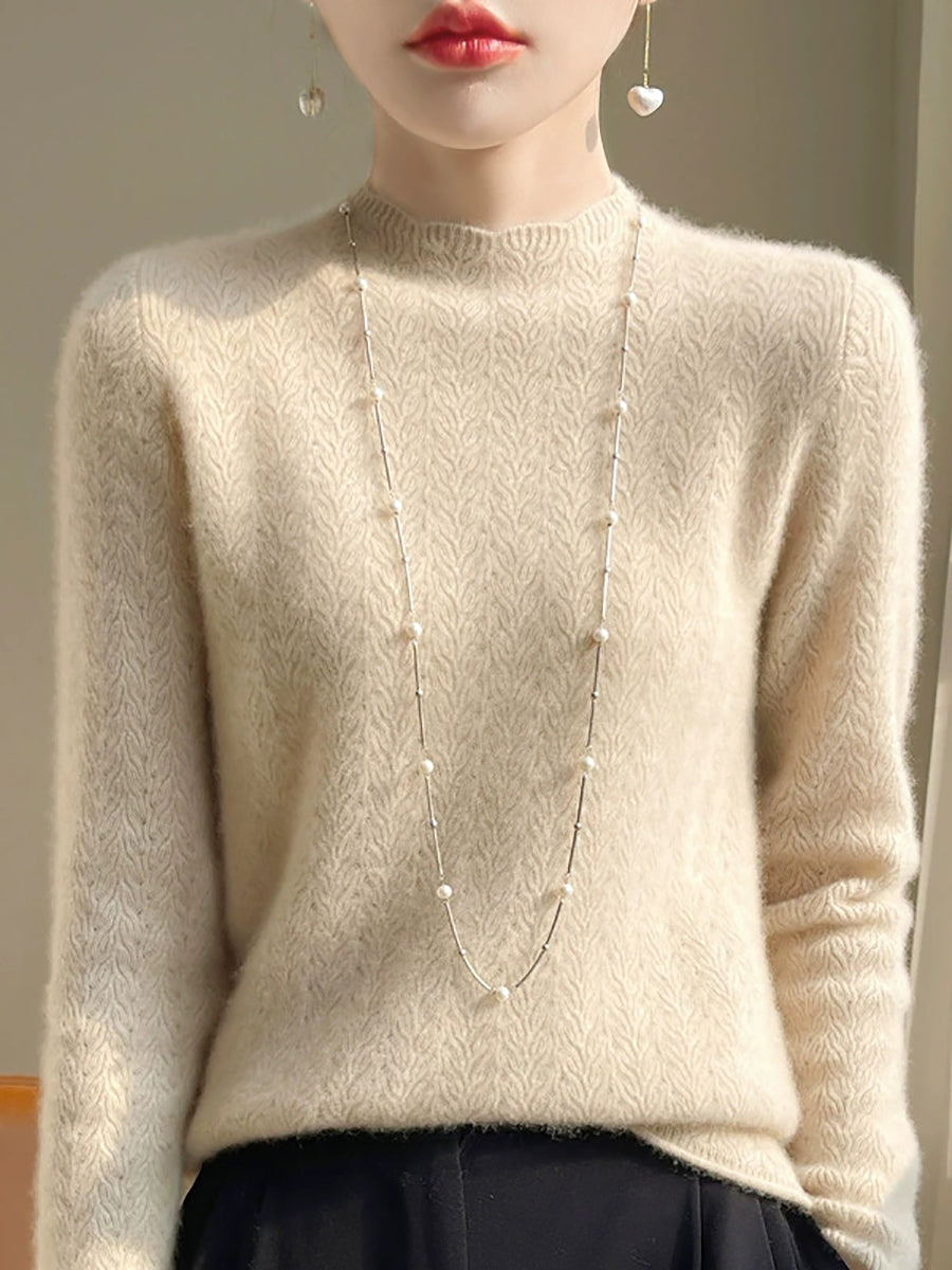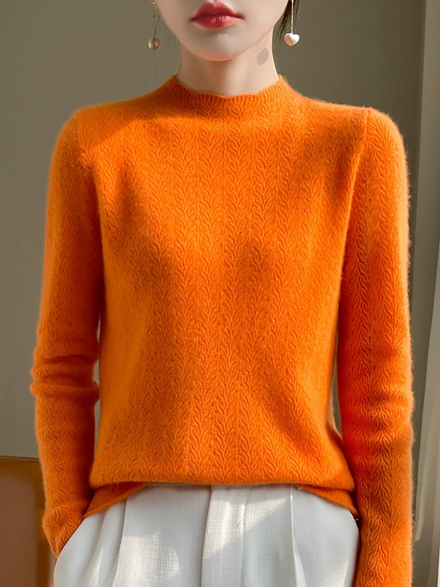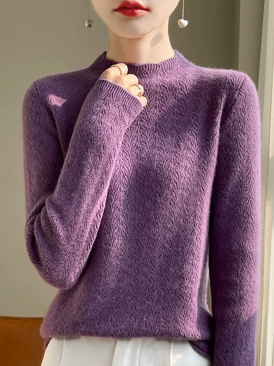 كنزة نسائية ربيعية فنية بلون موحد برقبة دائرية
