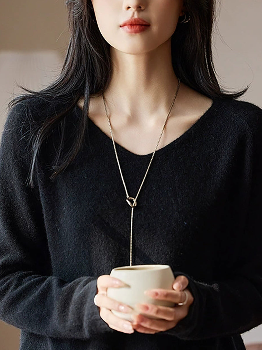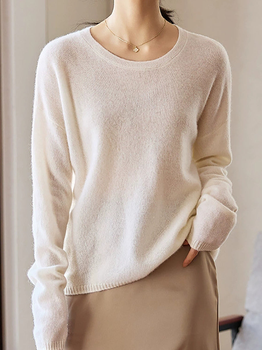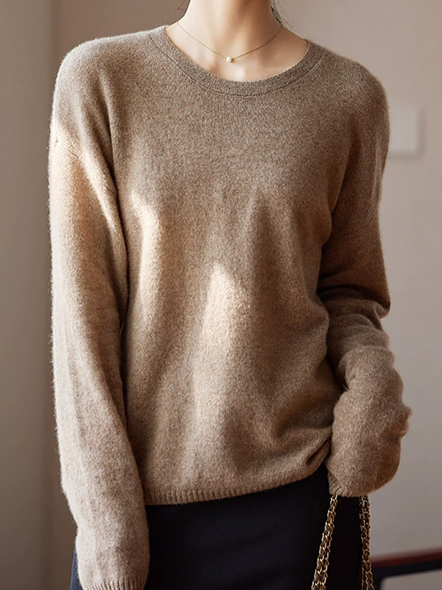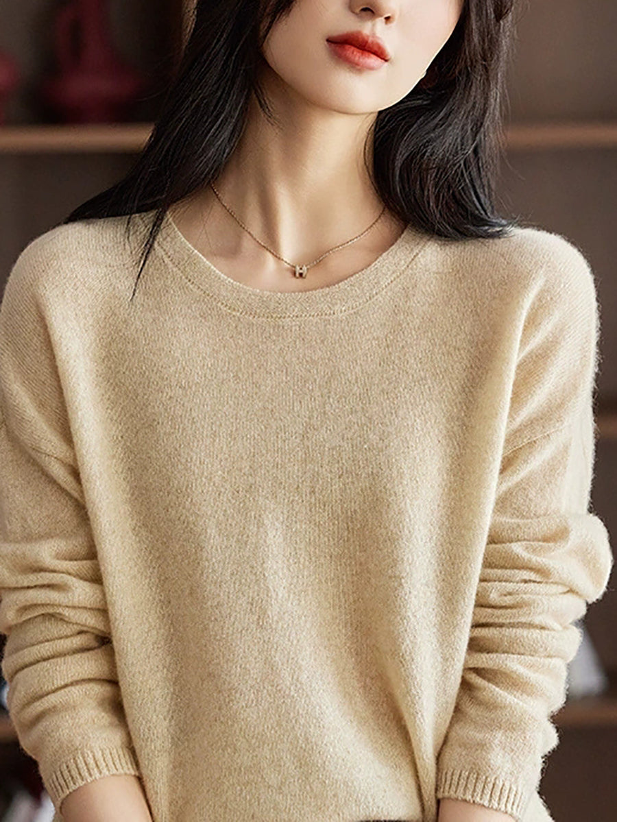 كنزة صوفية نسائية ربيعية فنية بلون موحد بياقة على شكل حرف V