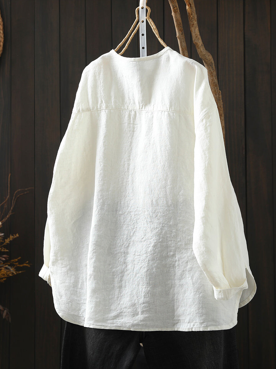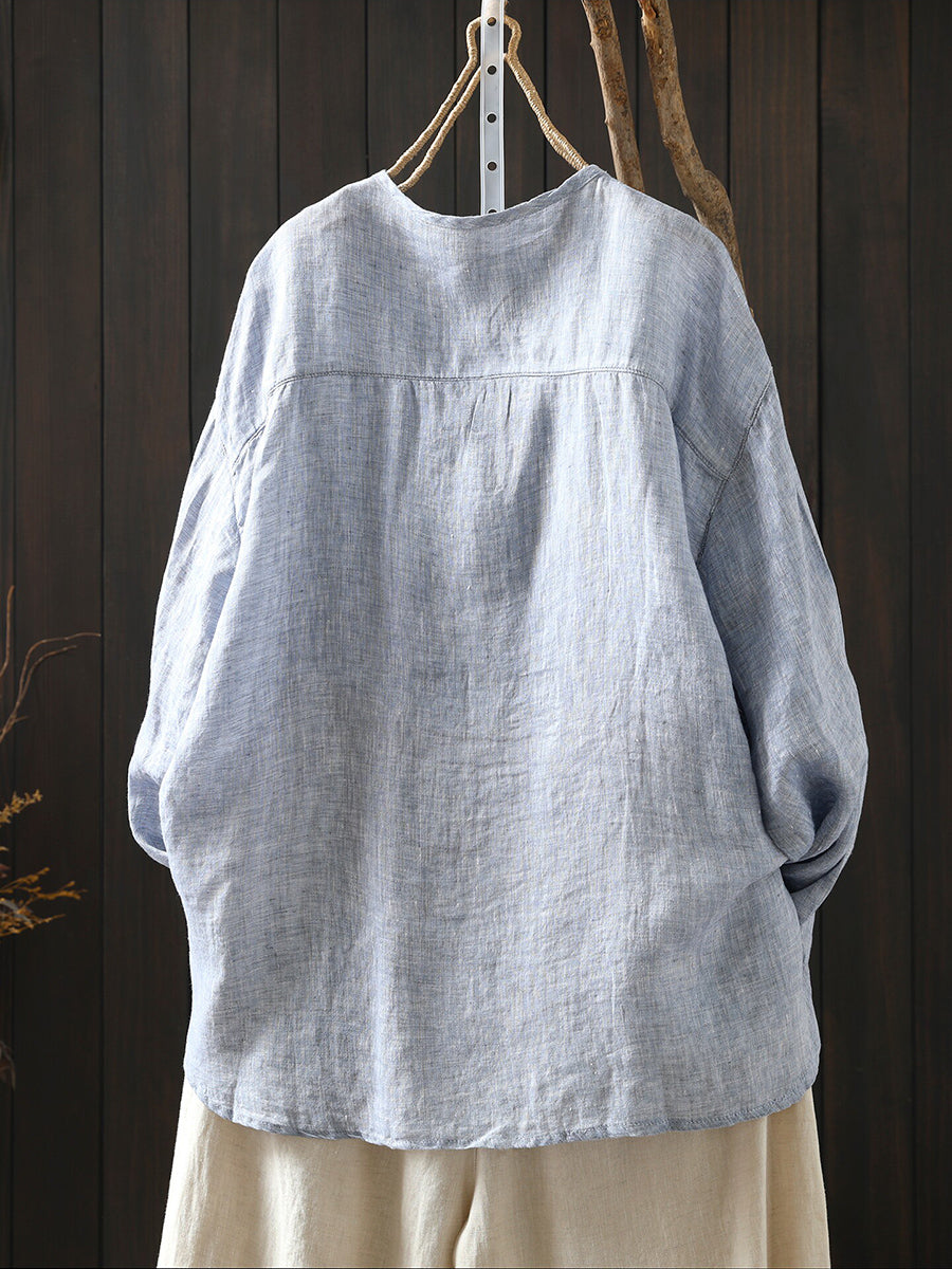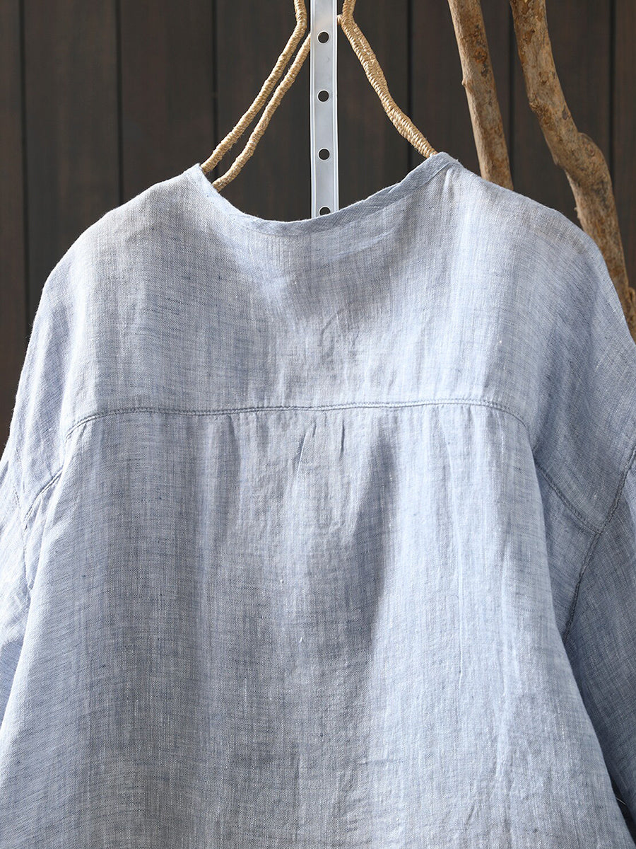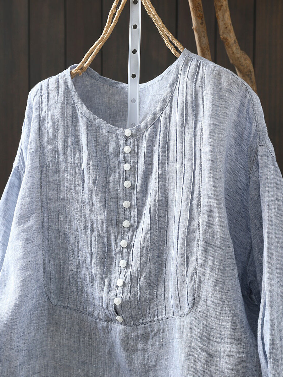 قميص نسائي ربيعي فني مكشكش مصنوع من الكتان بنسبة 100%