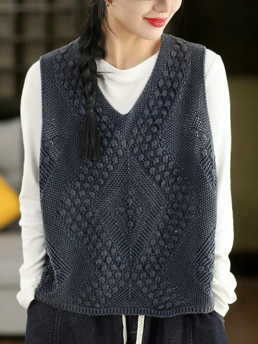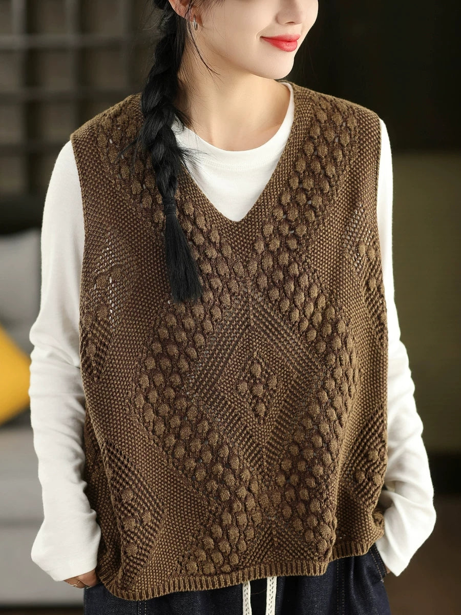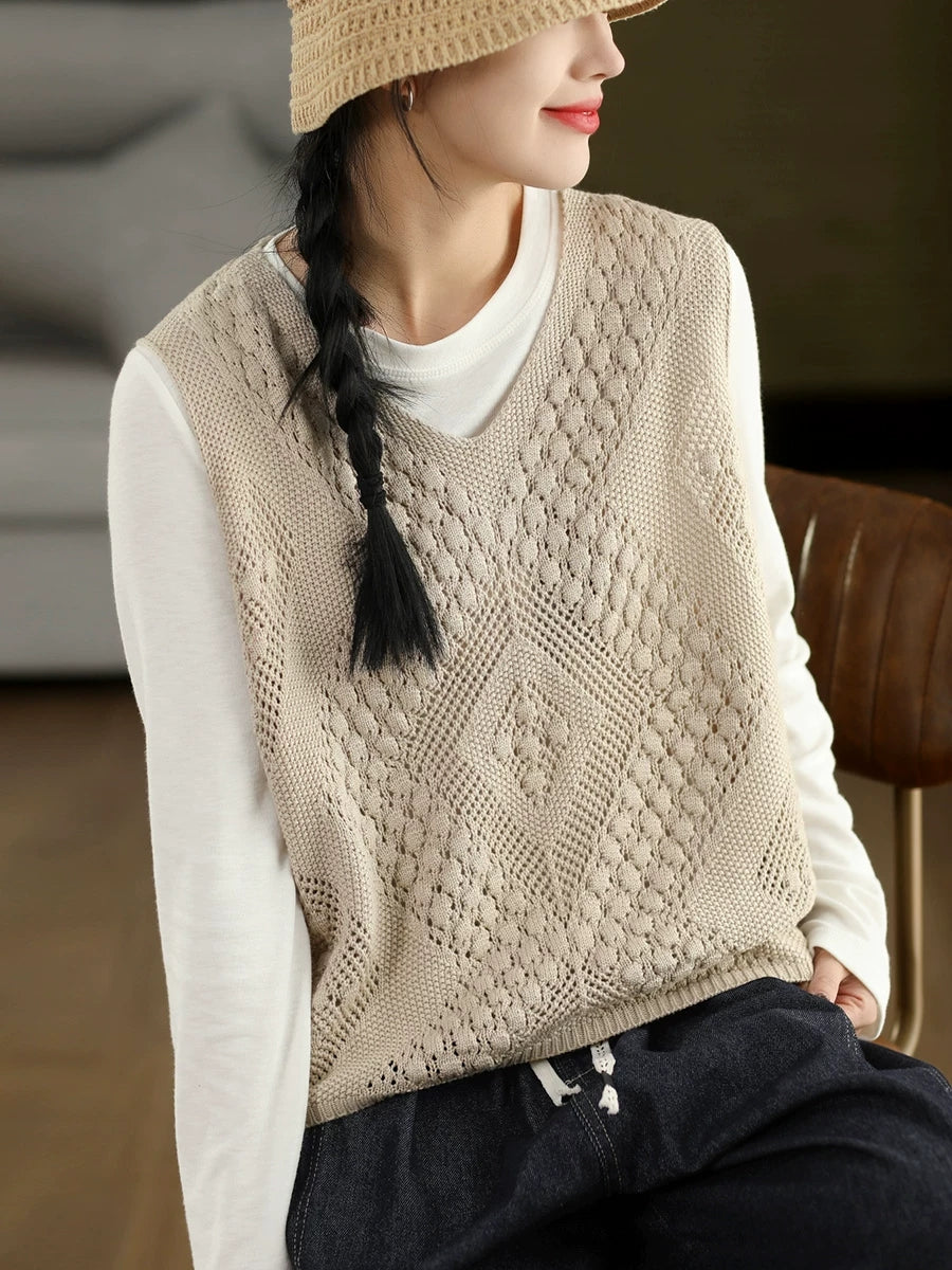 صدرية نسائية ربيعية فنية محبوكة بياقة على شكل حرف V