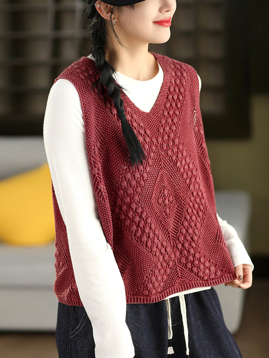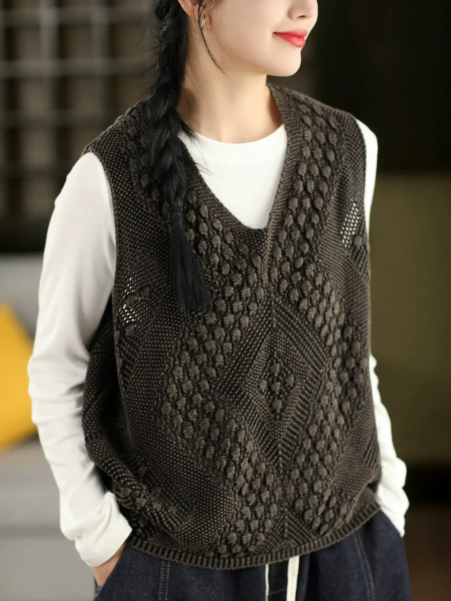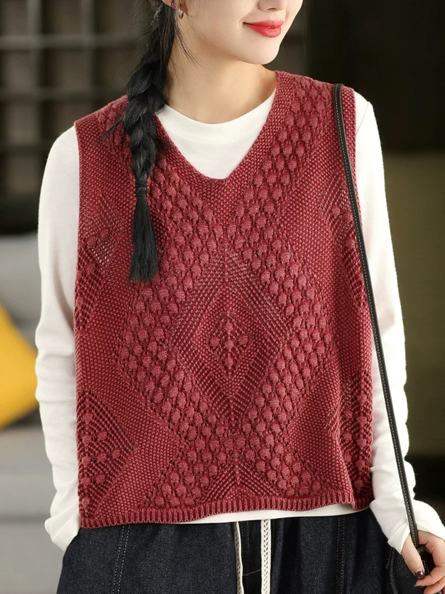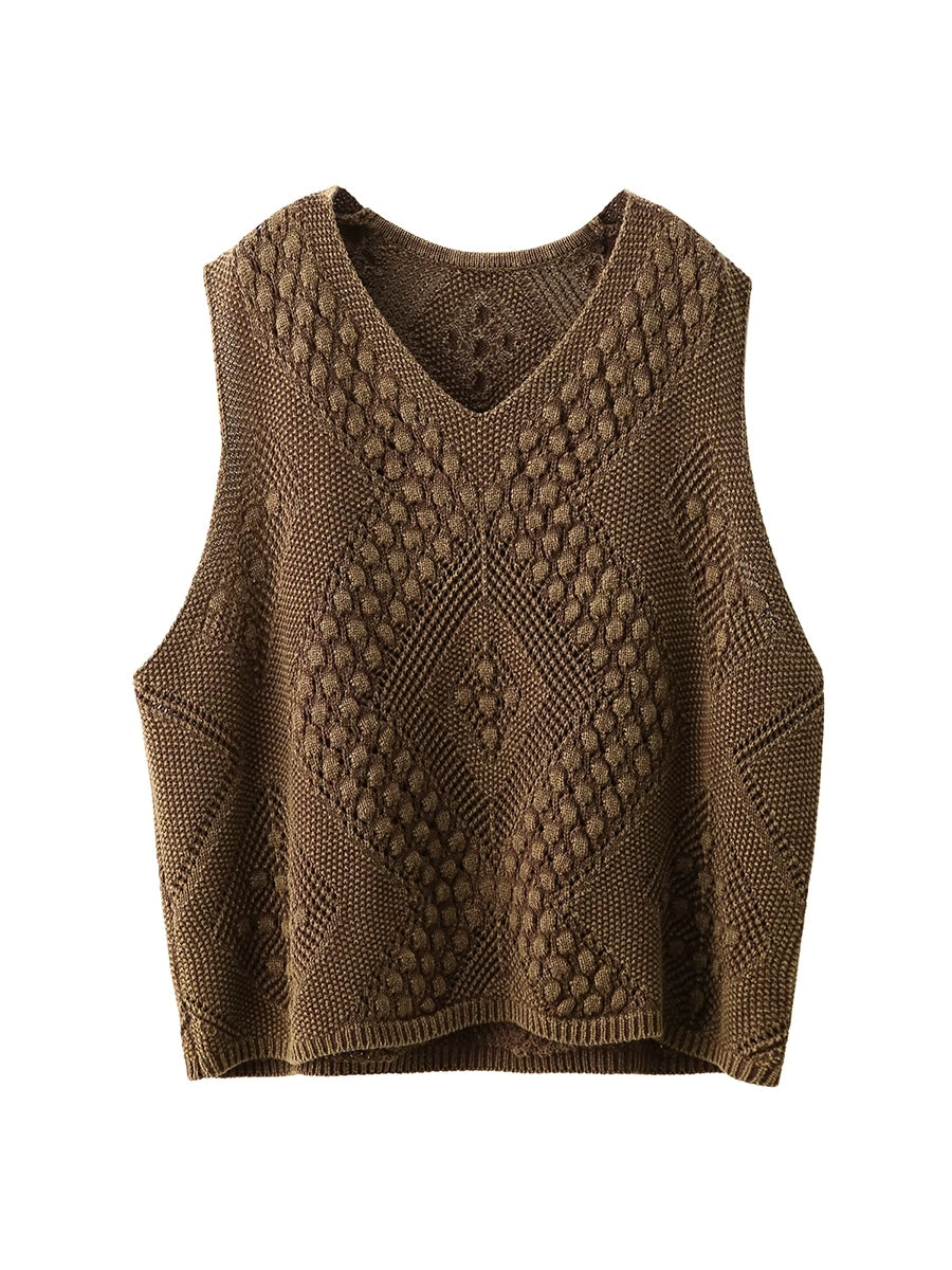 صدرية نسائية ربيعية فنية محبوكة بياقة على شكل حرف V