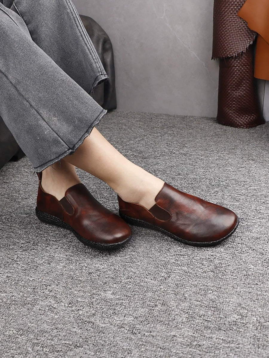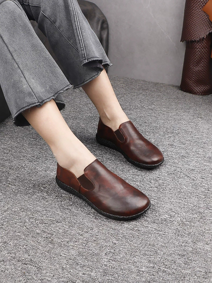 أحذية نسائية ربيعية كاجوال مسطحة من الجلد الطبيعي