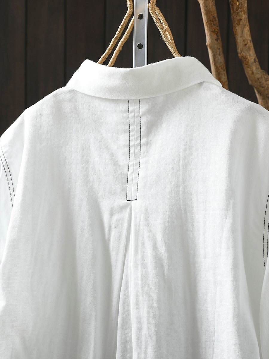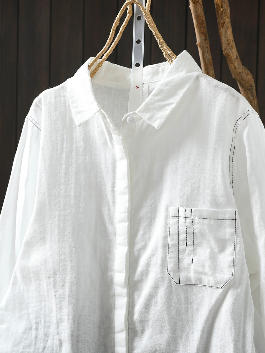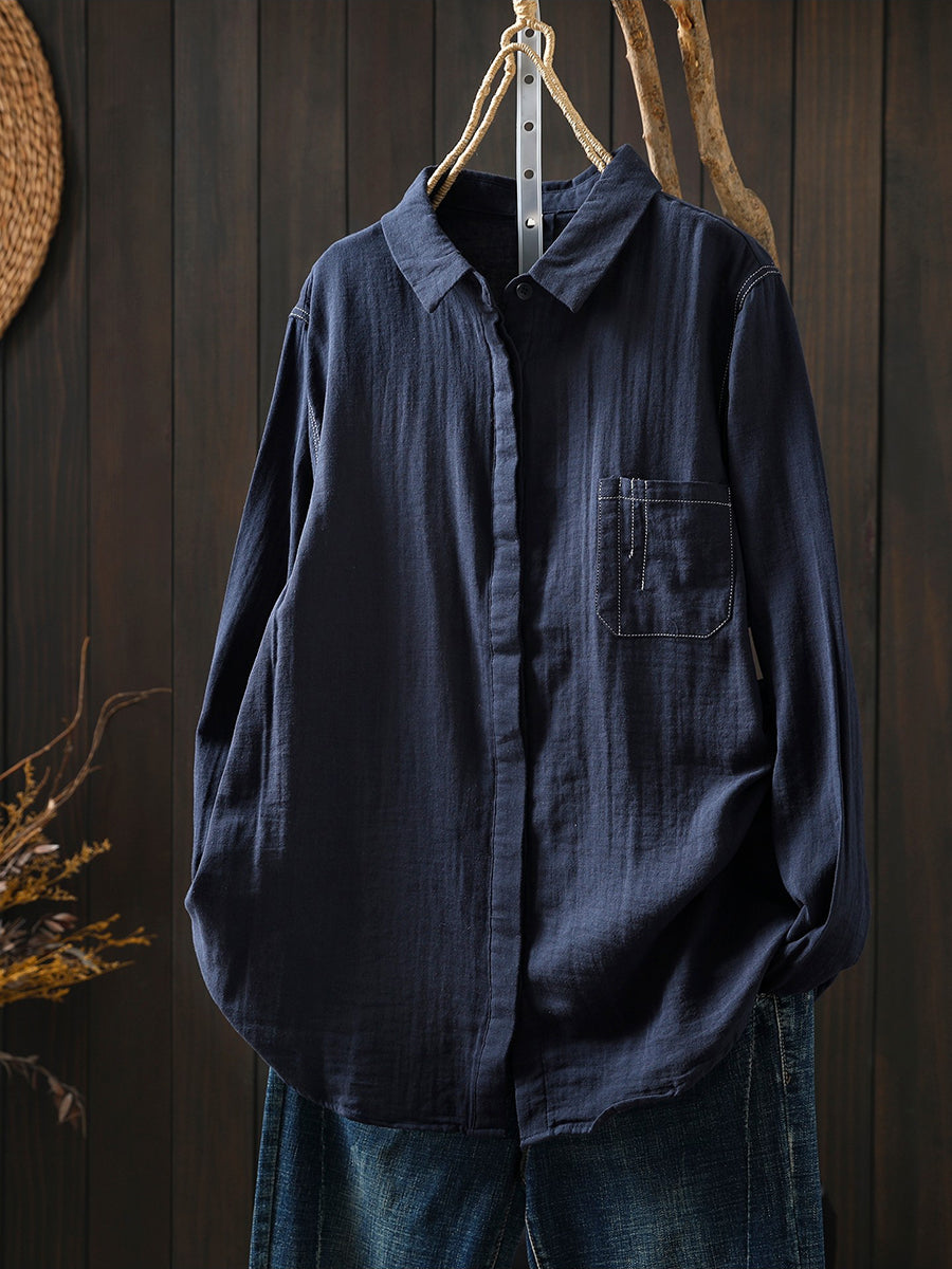 قميص نسائي ربيعي كاجوال بلون موحد مصنوع من القطن بنسبة 100%