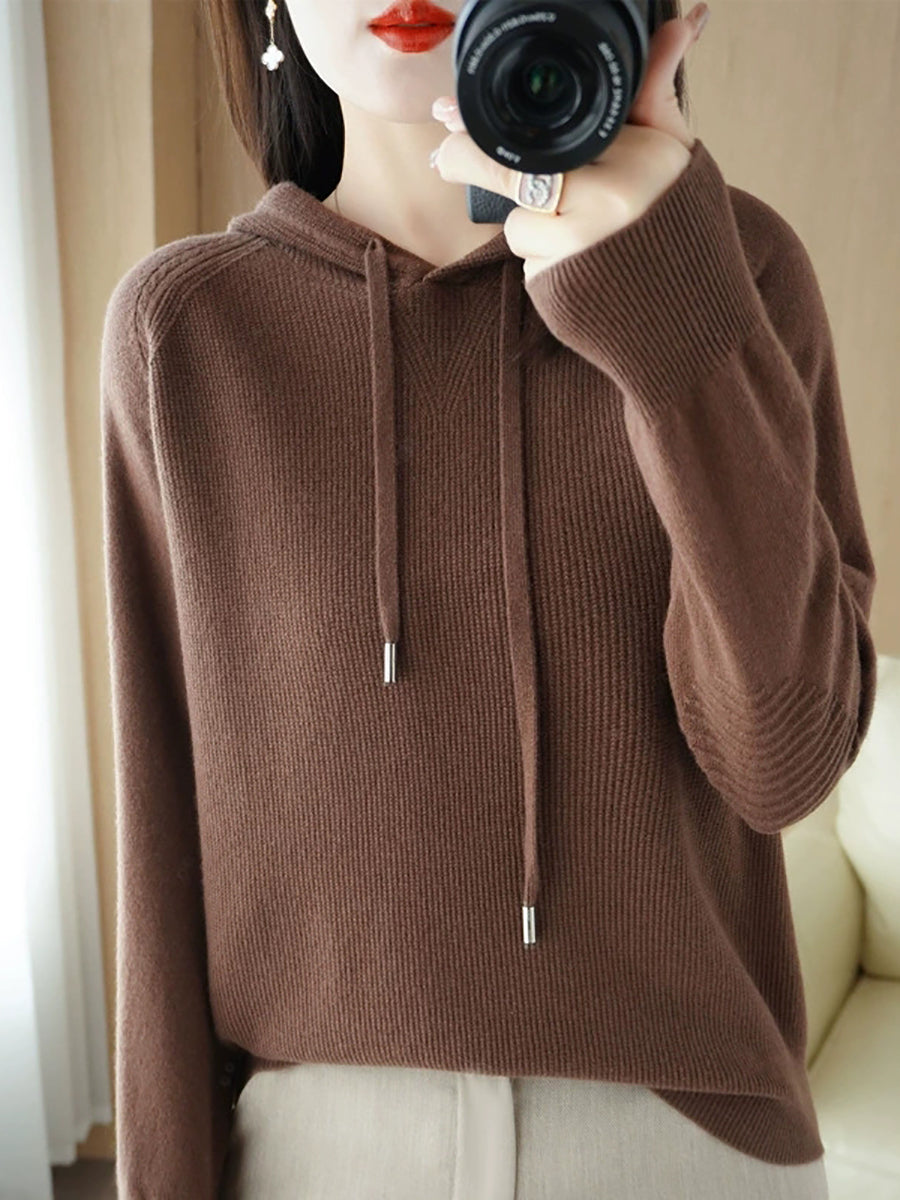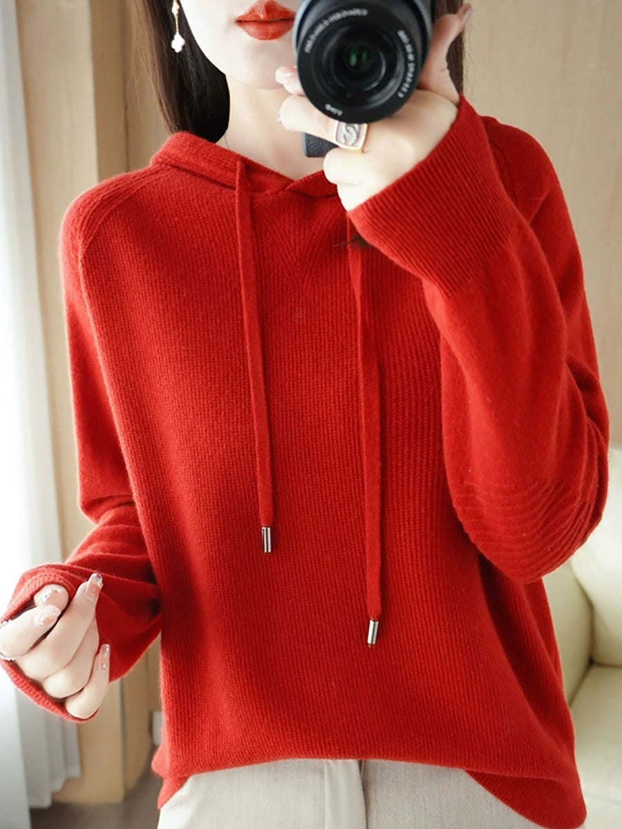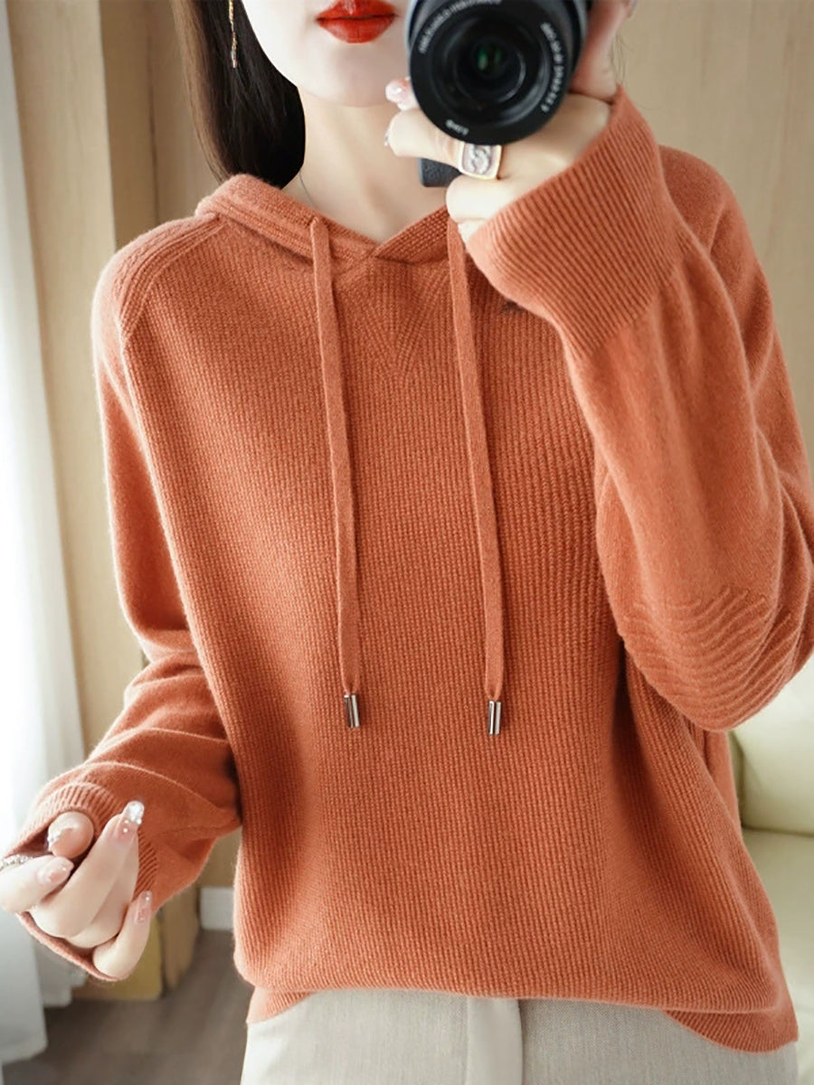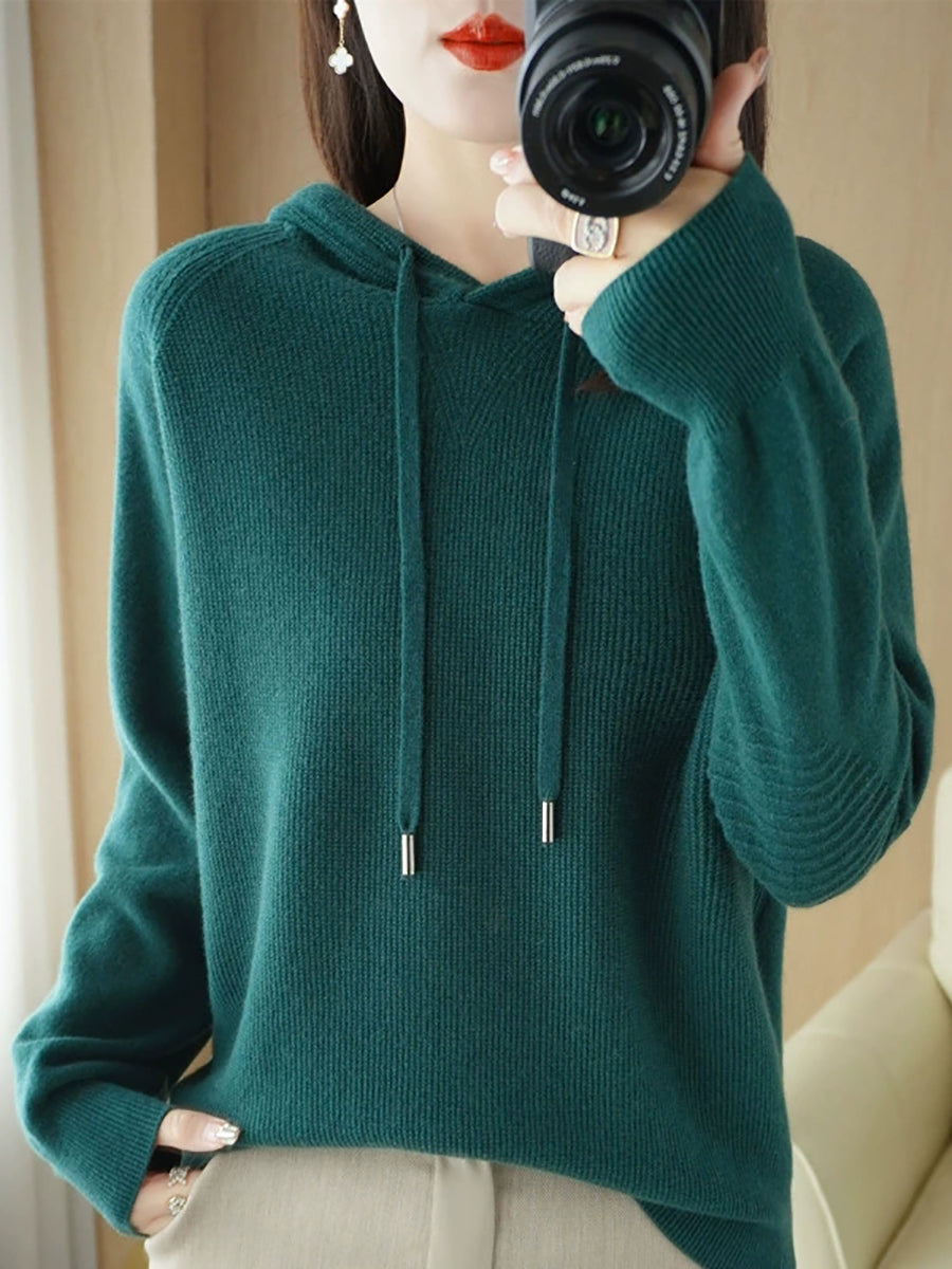 كنزة نسائية ربيعية كاجوال بلون موحد بغطاء رأس