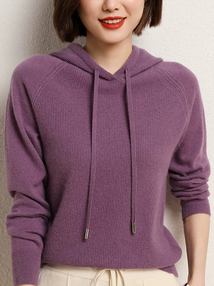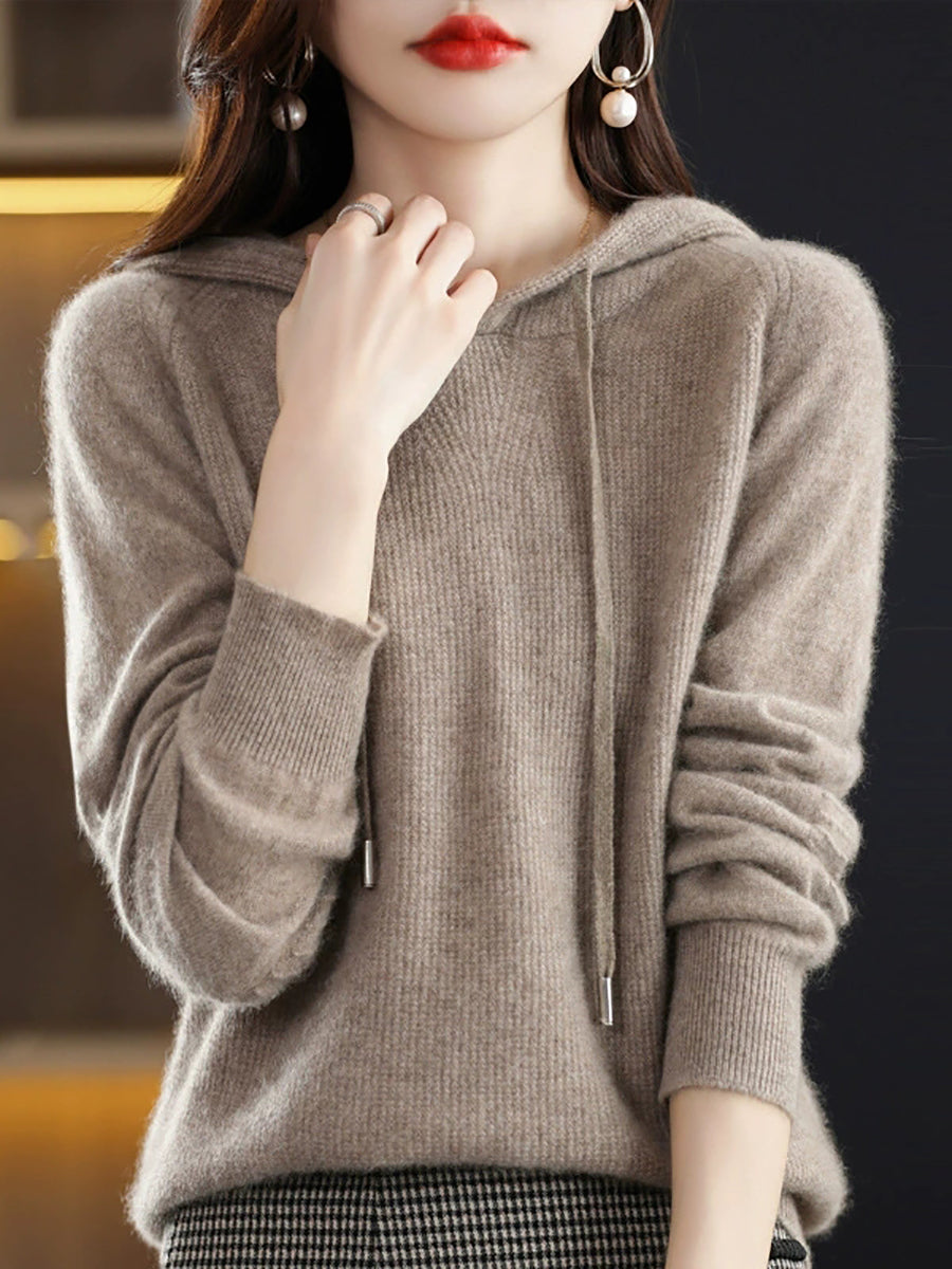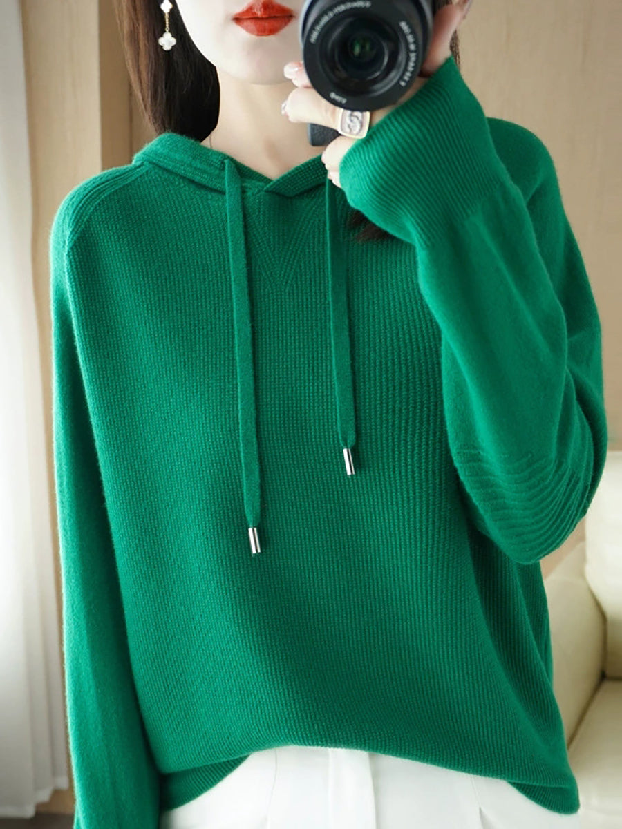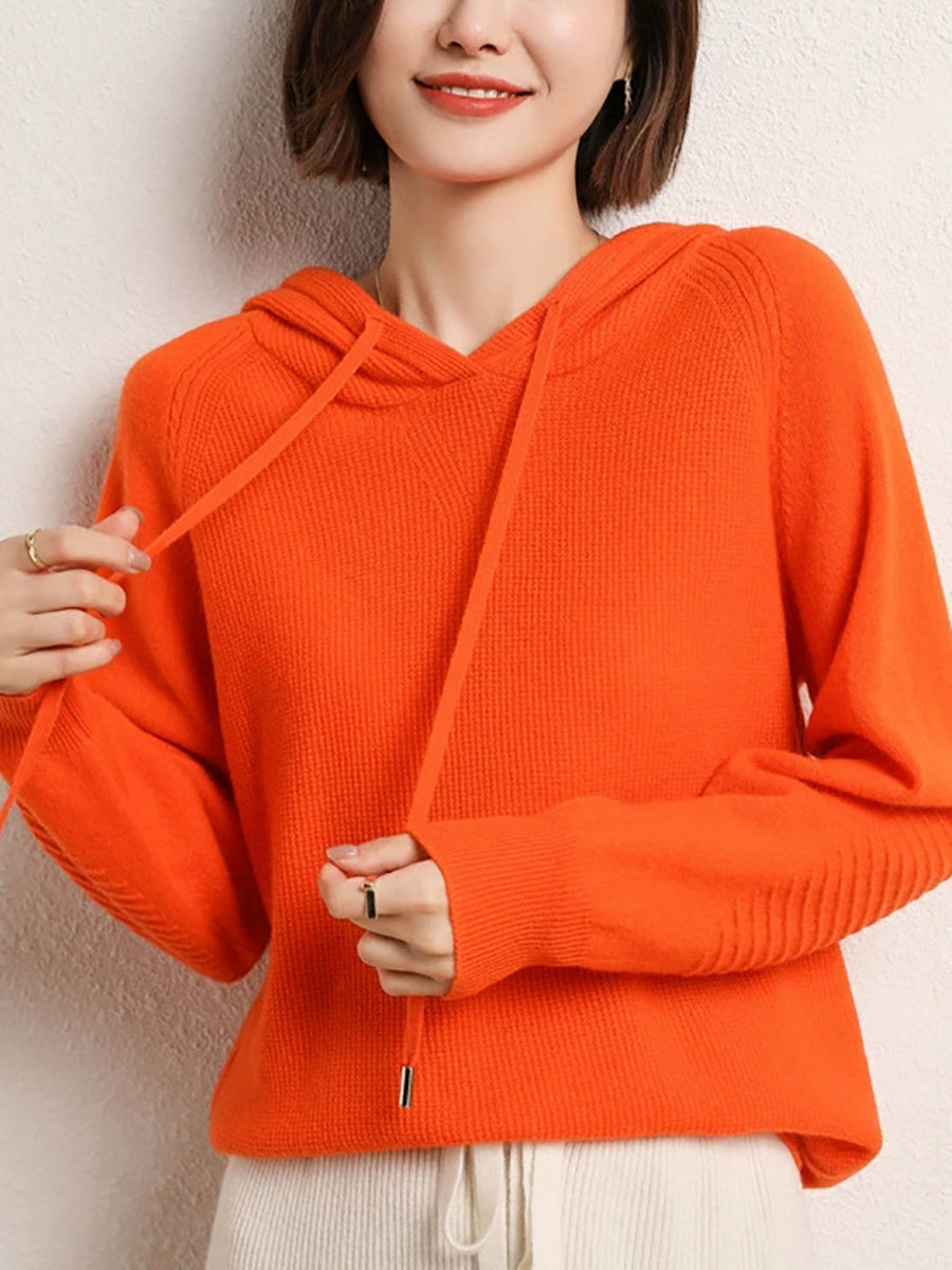 كنزة نسائية ربيعية كاجوال بلون موحد بغطاء رأس