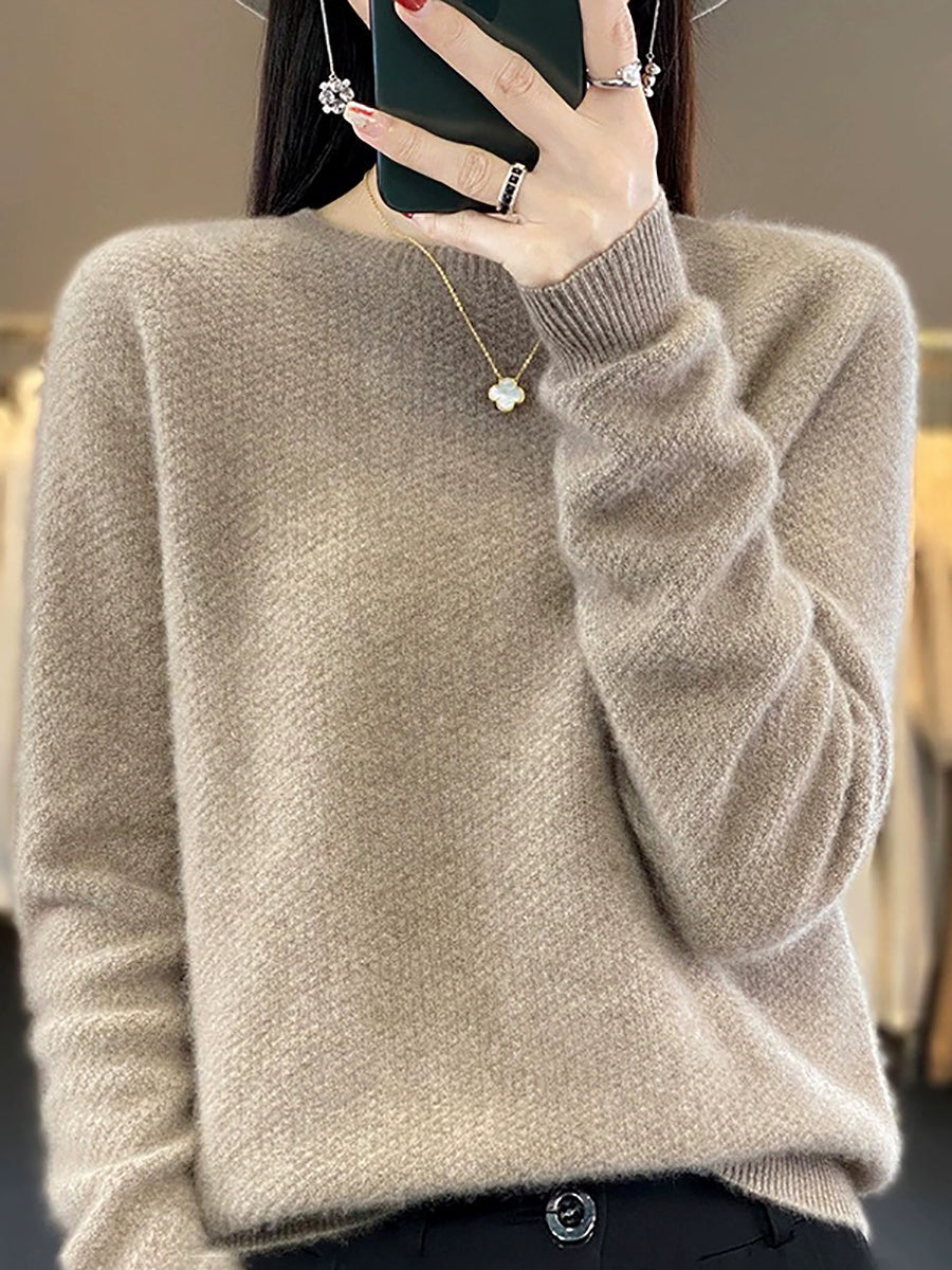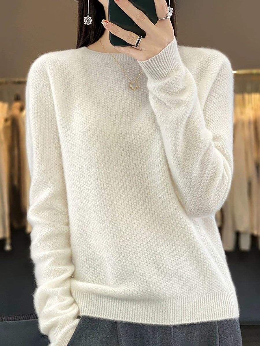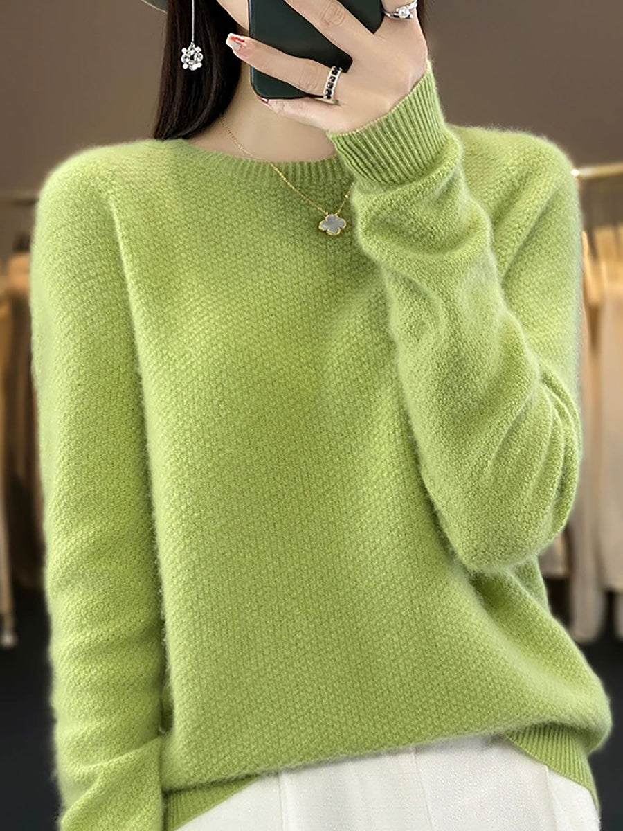 كنزة نسائية ربيعية كاجوال بلون موحد برقبة دائرية