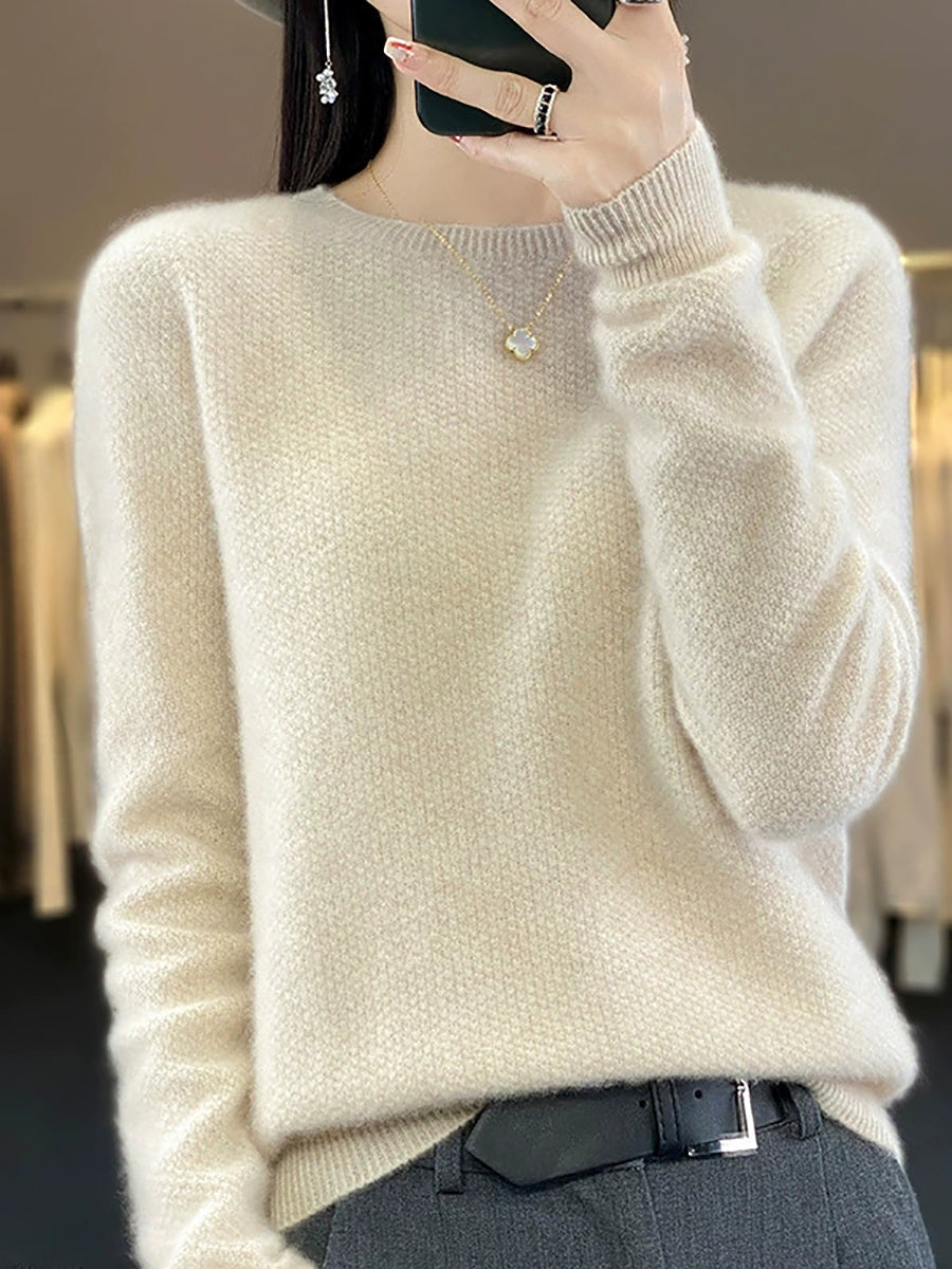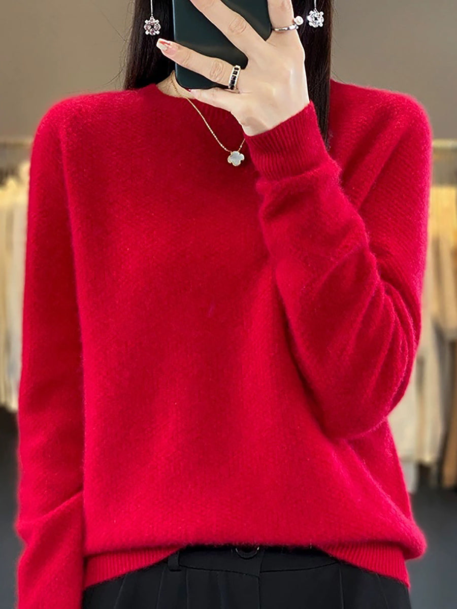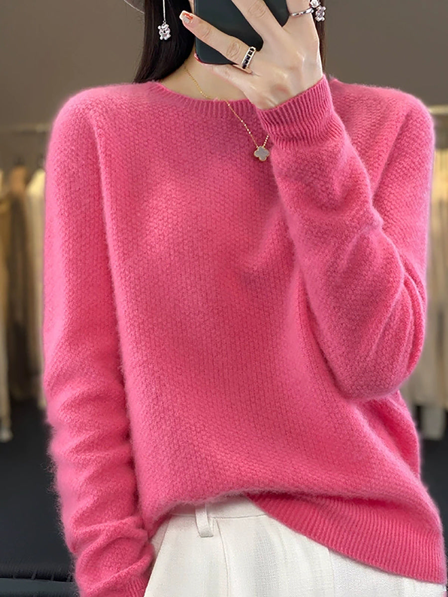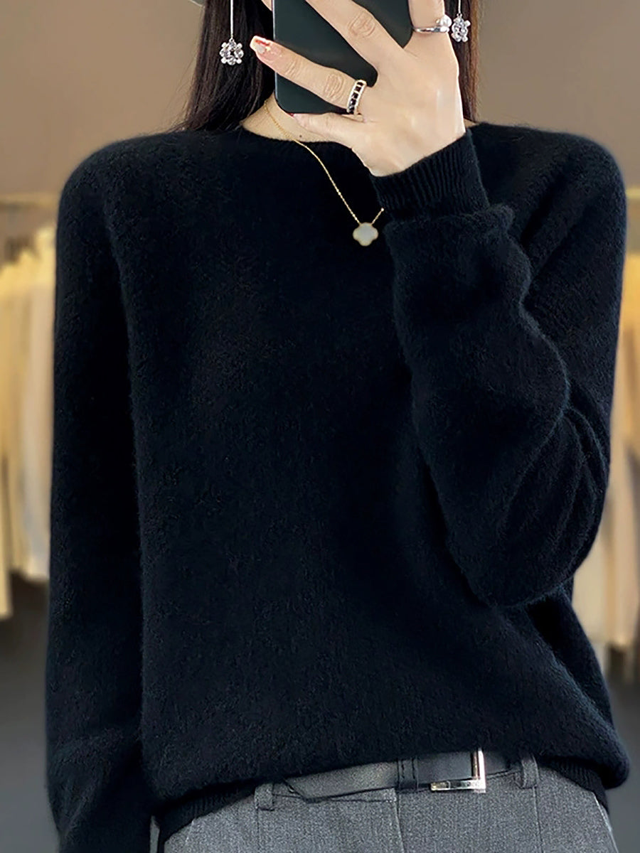 كنزة نسائية ربيعية كاجوال بلون موحد برقبة دائرية