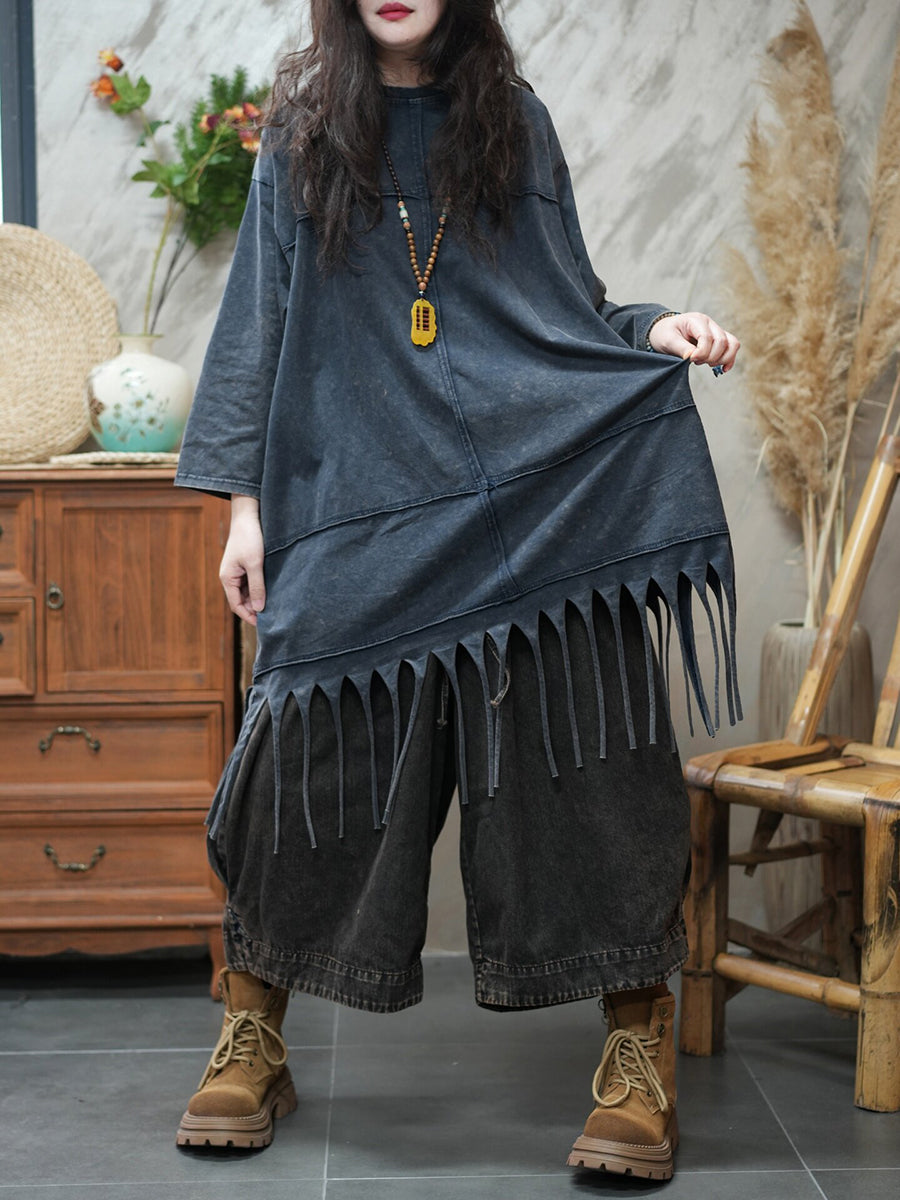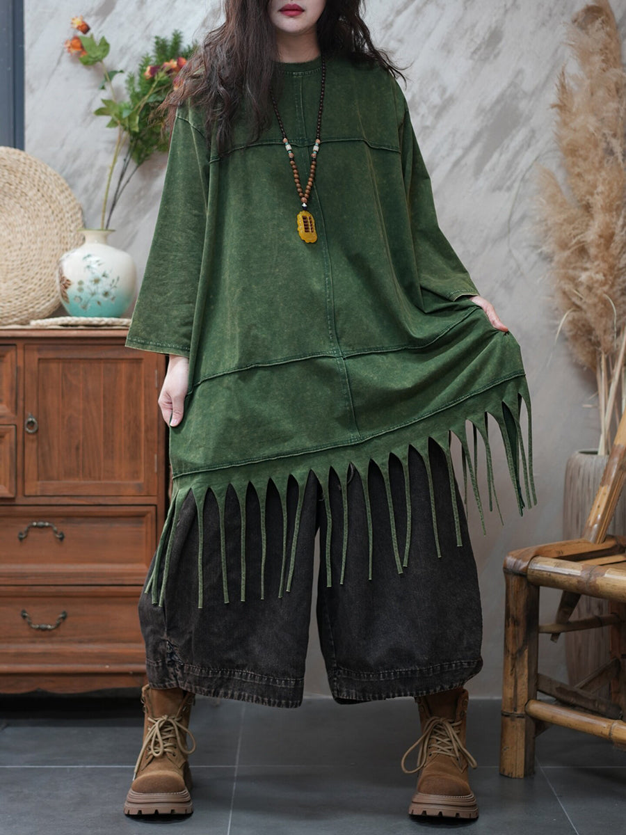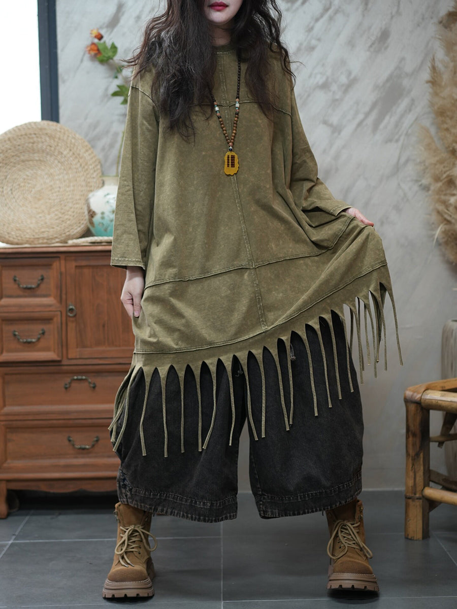 بلوزة نسائية ربيعية كاجوال بلون نقي مزينة بشرابات