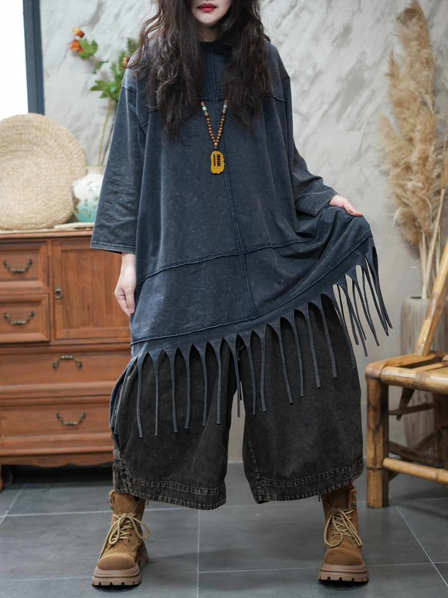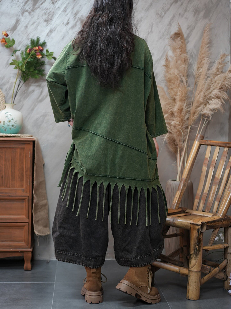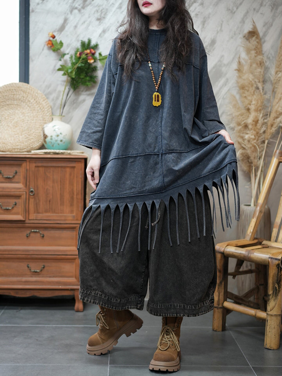 بلوزة نسائية ربيعية كاجوال بلون نقي مزينة بشرابات