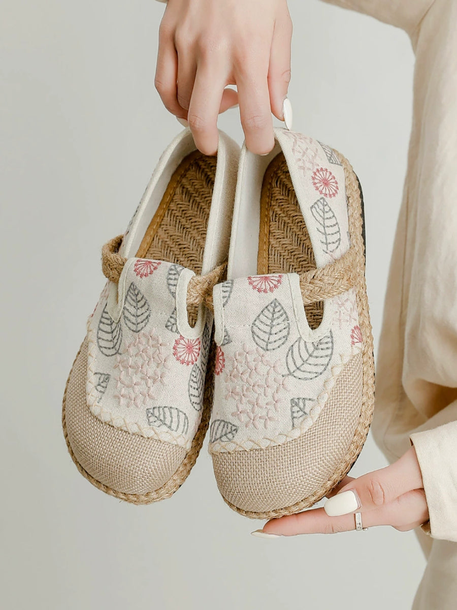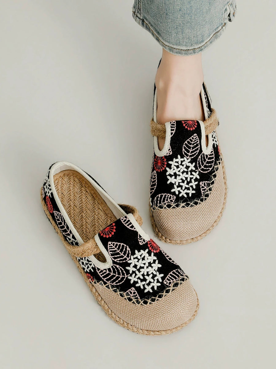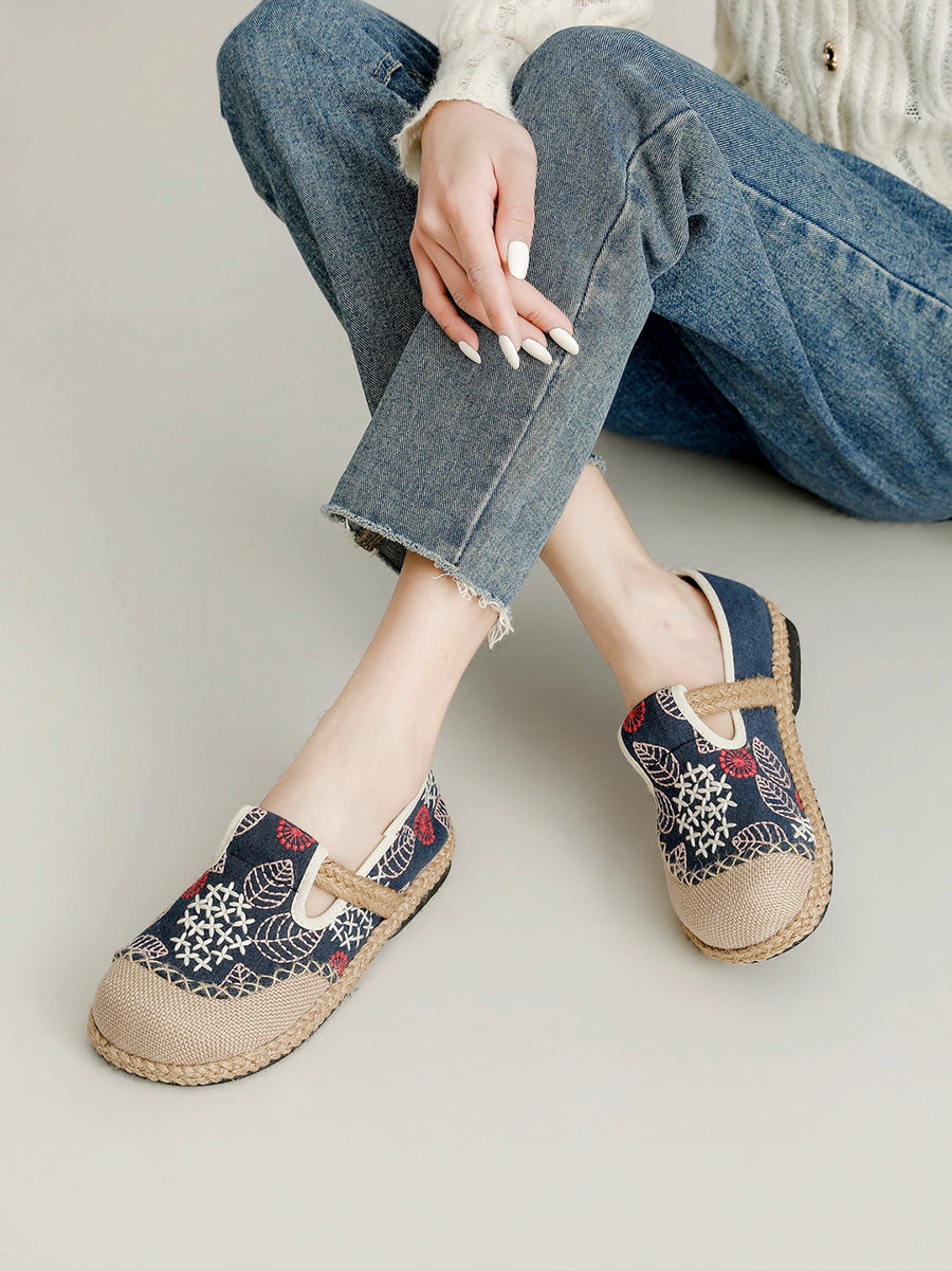 أحذية نسائية ربيعية مسطحة من قماش الكتان المطرز بالقماش والكتان
