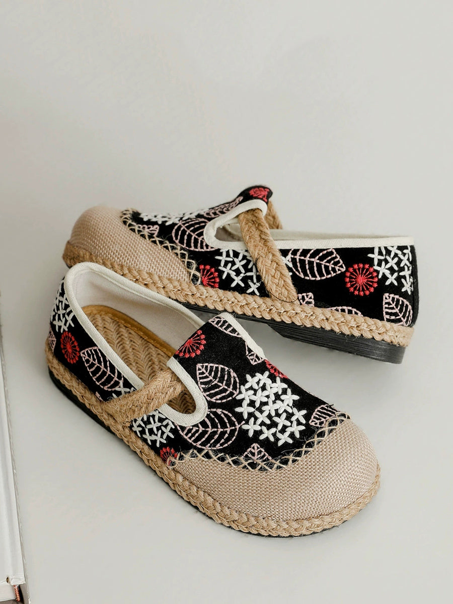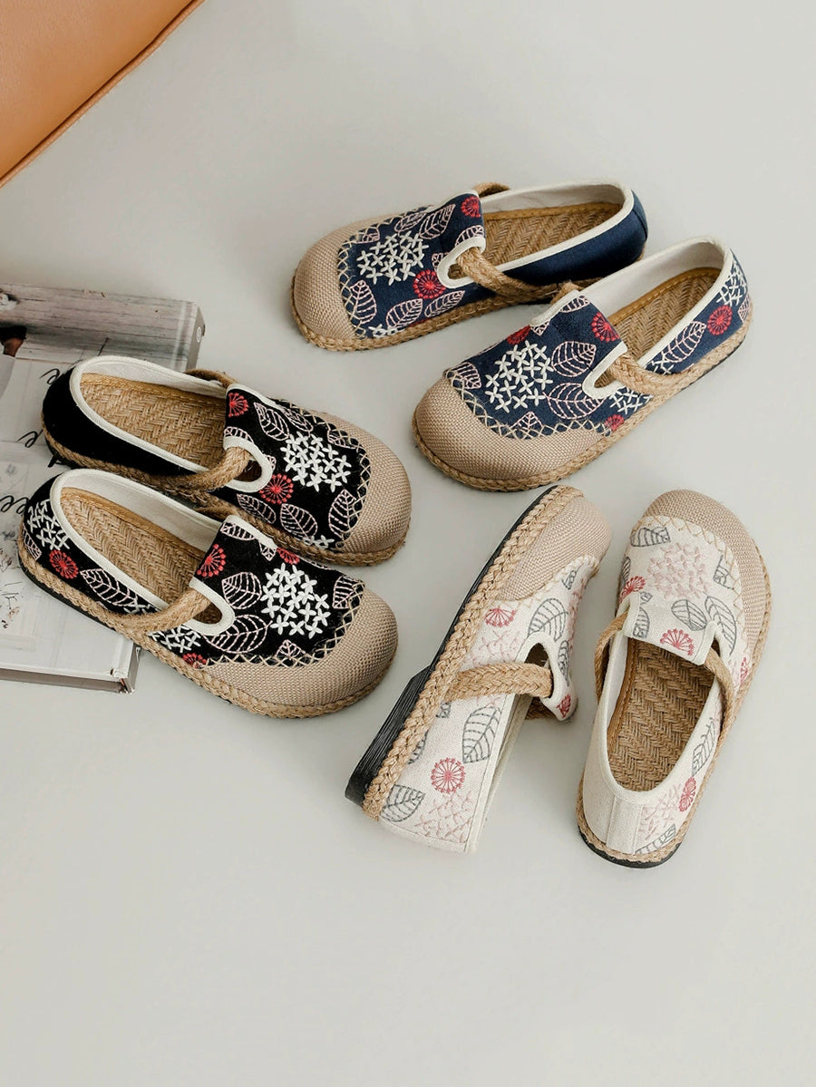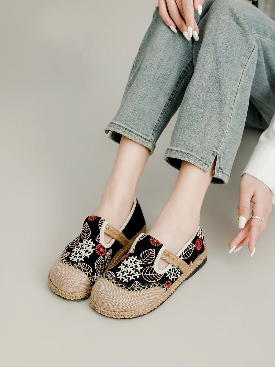 أحذية نسائية ربيعية مسطحة من قماش الكتان المطرز بالقماش والكتان