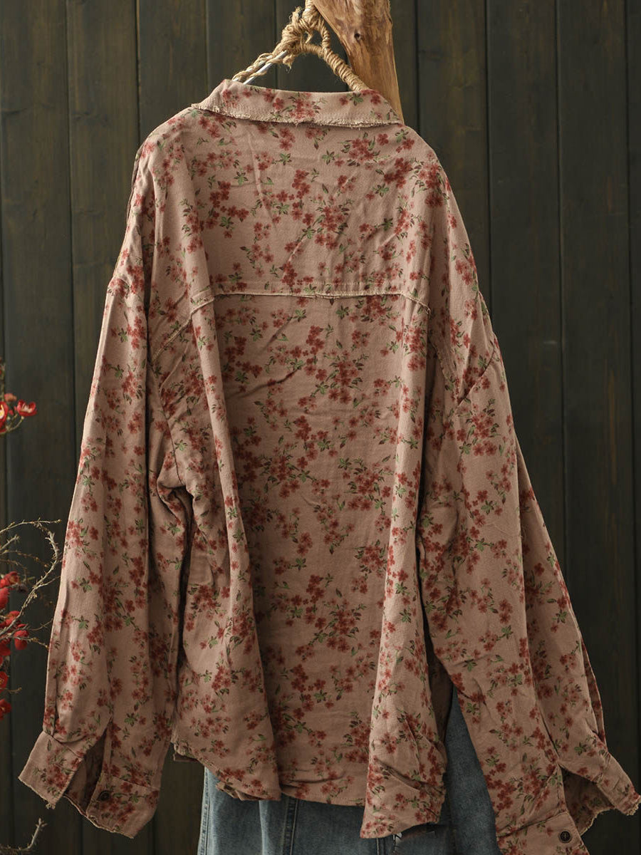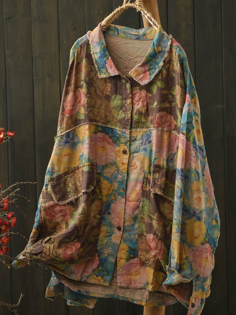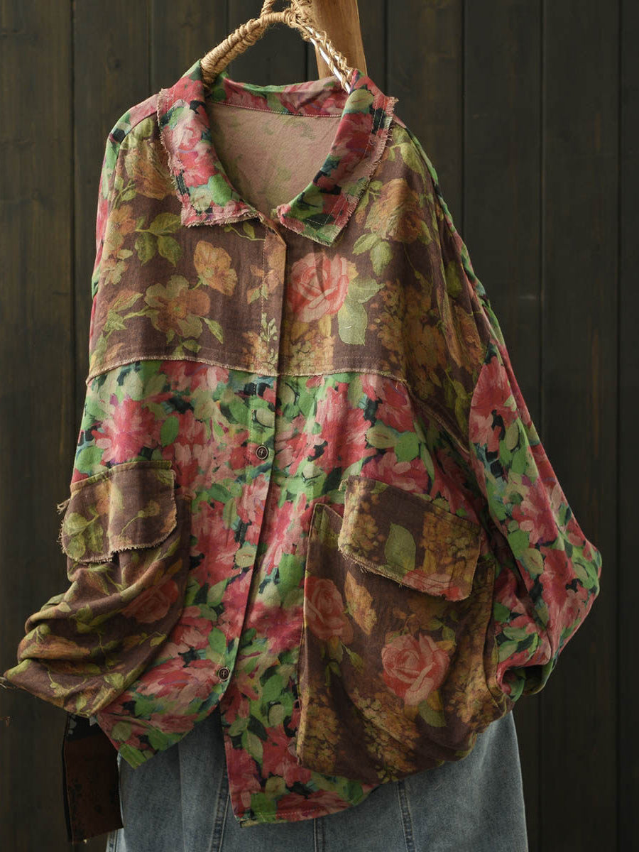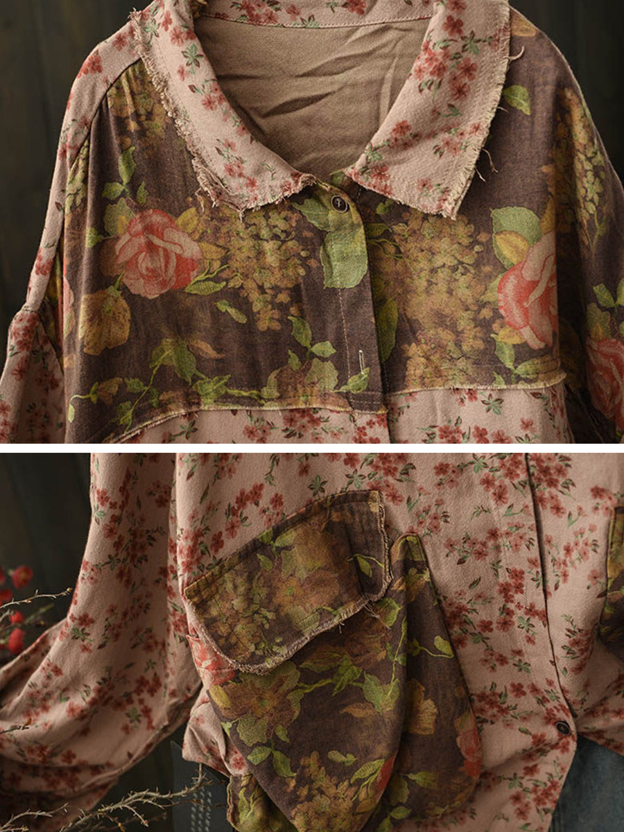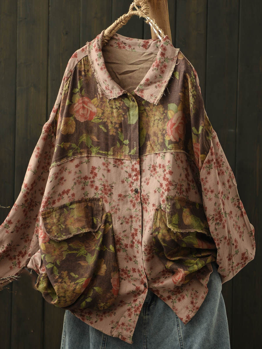 بلوزة قطنية نسائية ربيعية مزينة بنقوش زهور وياقة مطوية