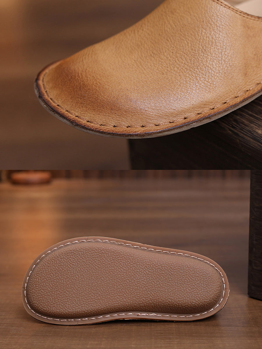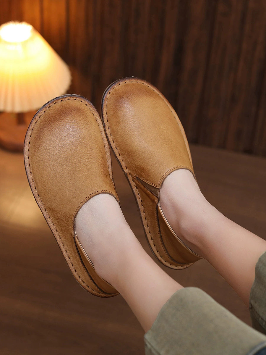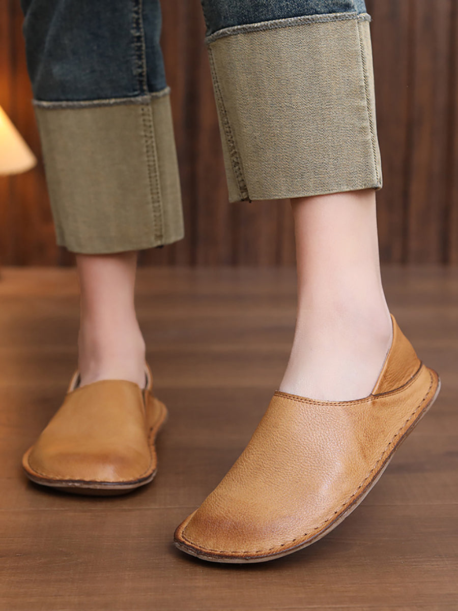 أحذية نسائية ربيعية مسطحة من الجلد الطبيعي