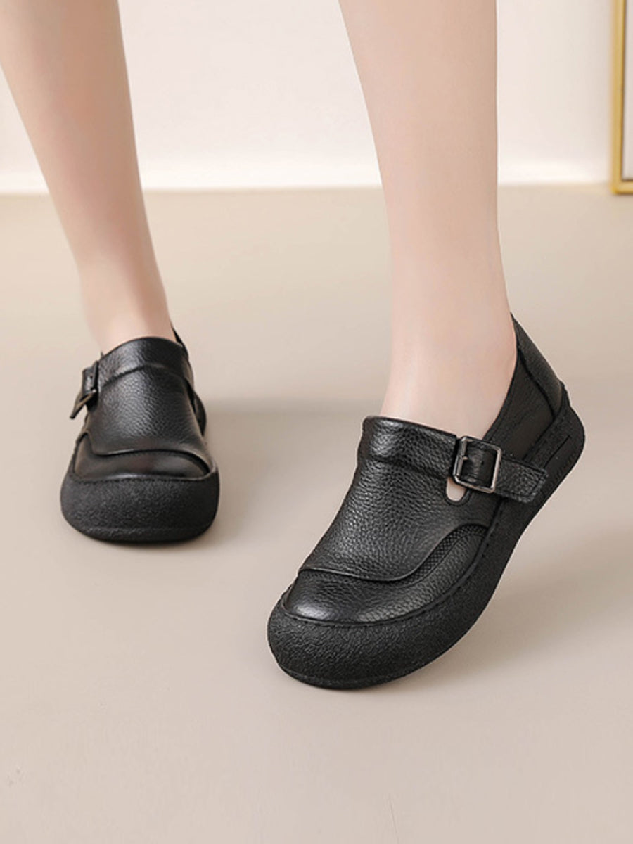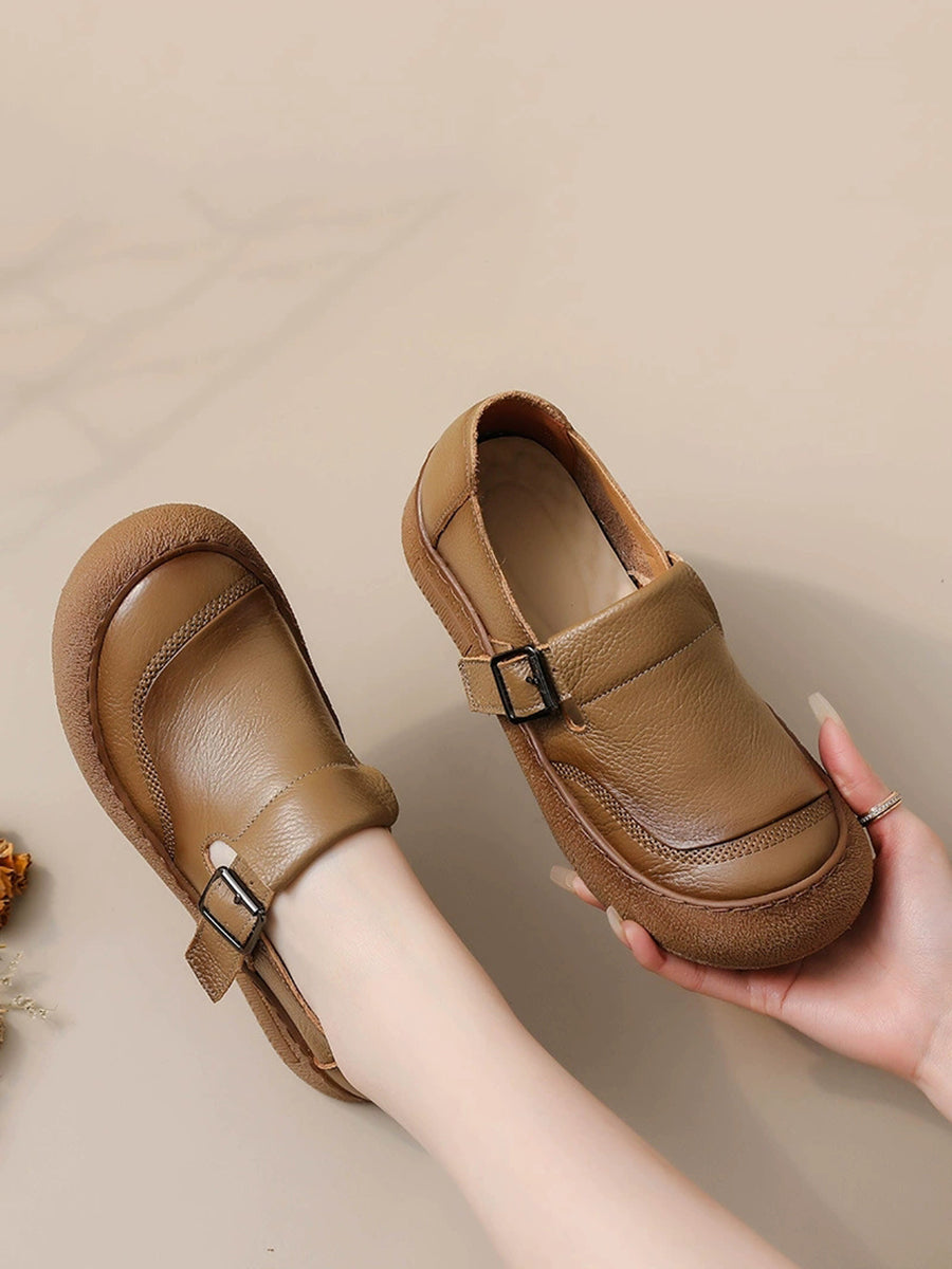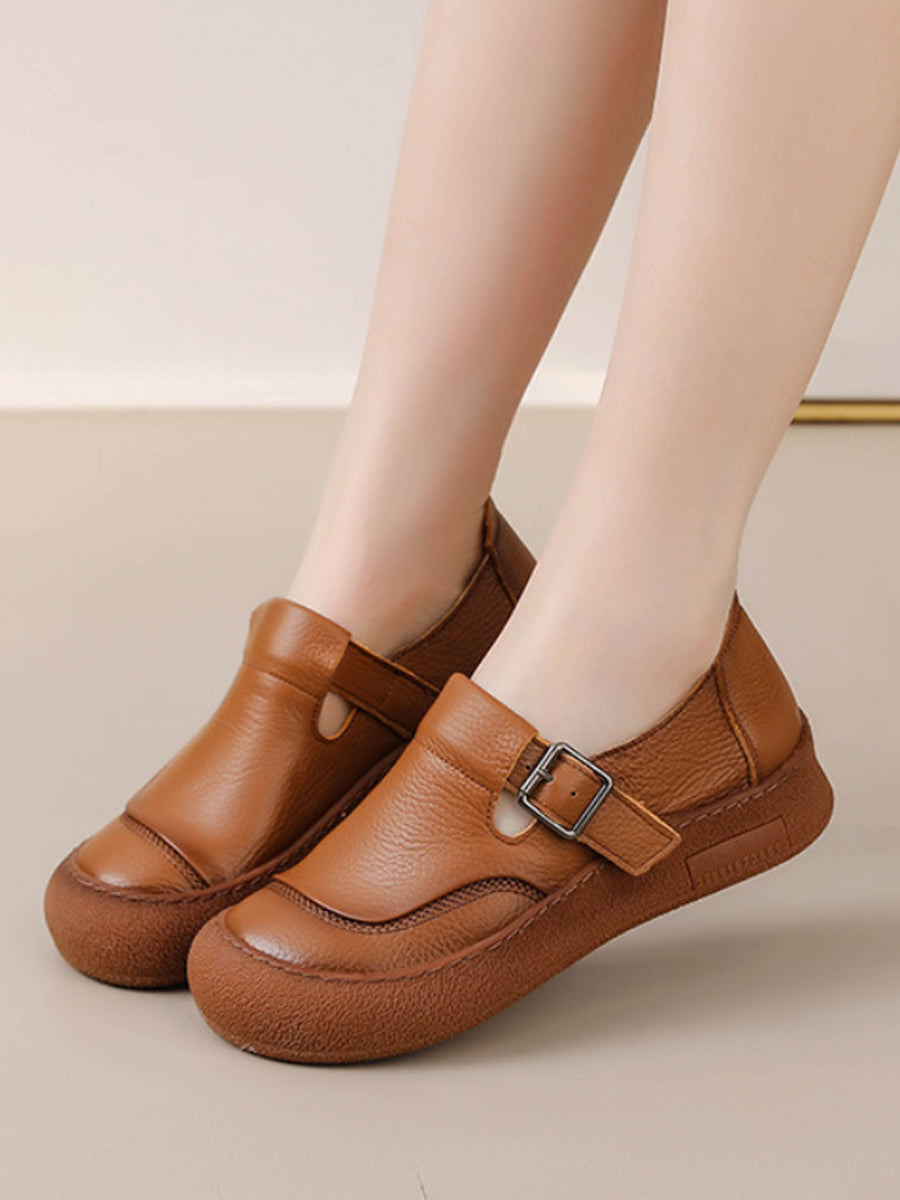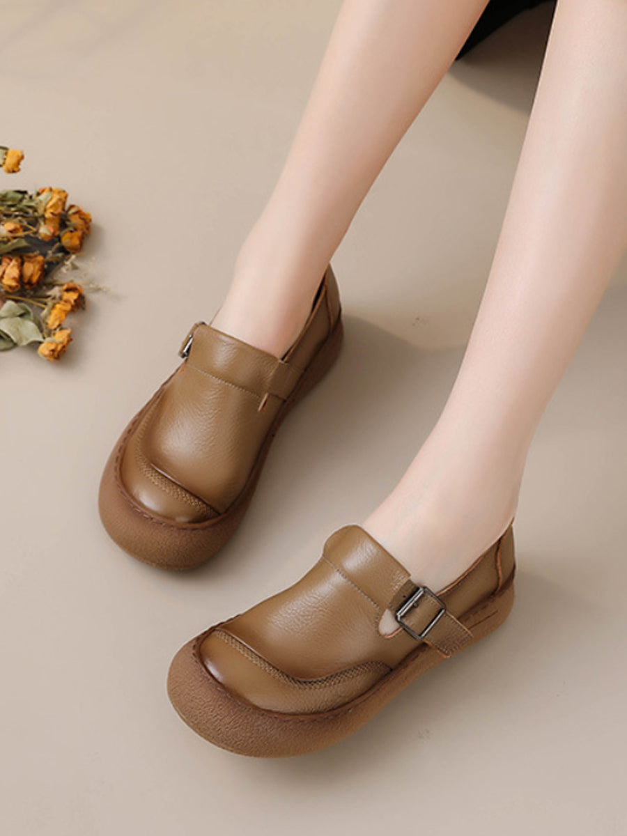 أحذية نسائية ربيعية مسطحة من الجلد الطبيعي بتصميم متداخل