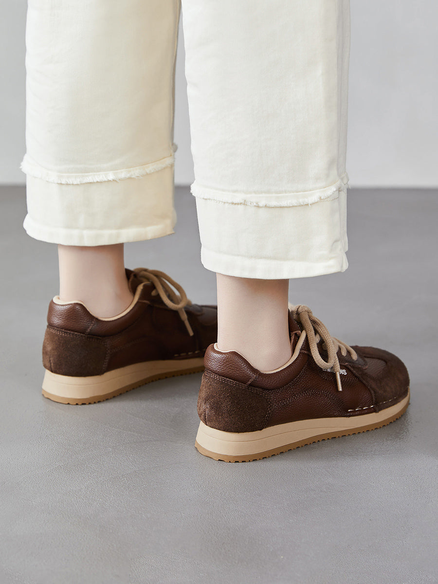 أحذية رياضية نسائية ربيعية من الجلد الطبيعي بتصميم مقسم