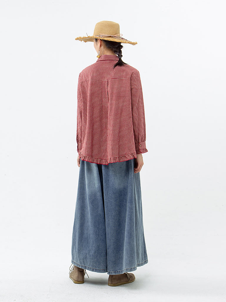 قميص نسائي فضفاض من الكتان والقطن مصنوع يدويًا بمقاسات كبيرة